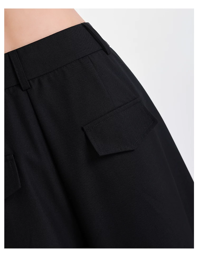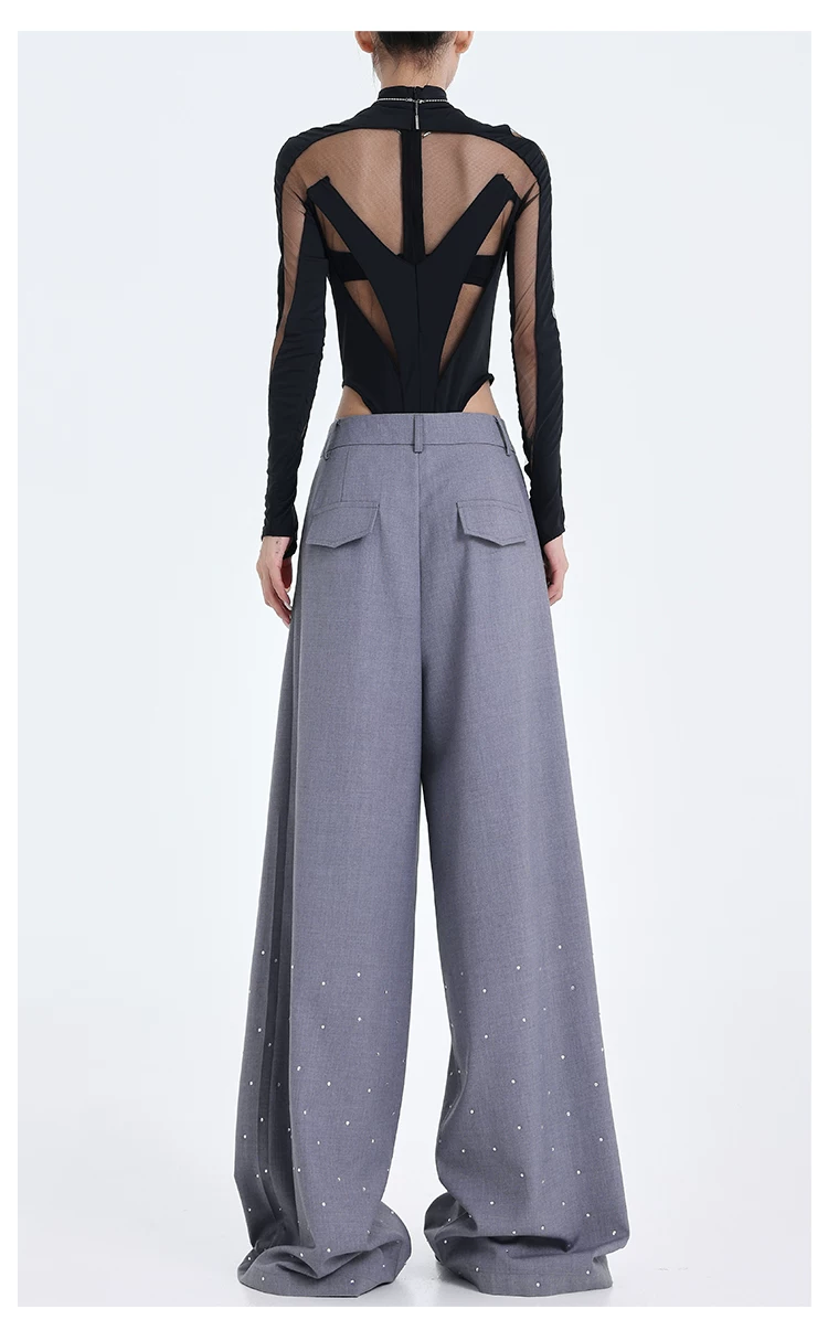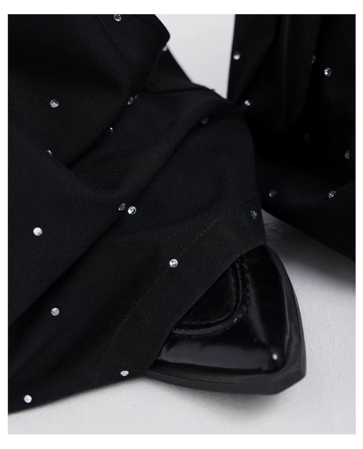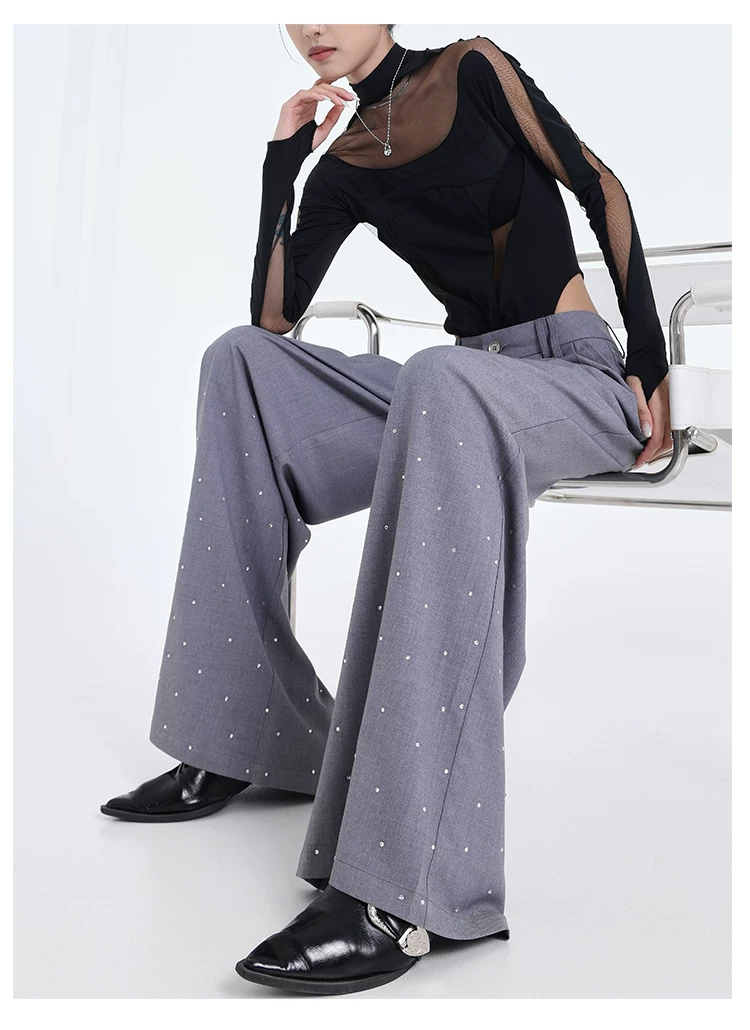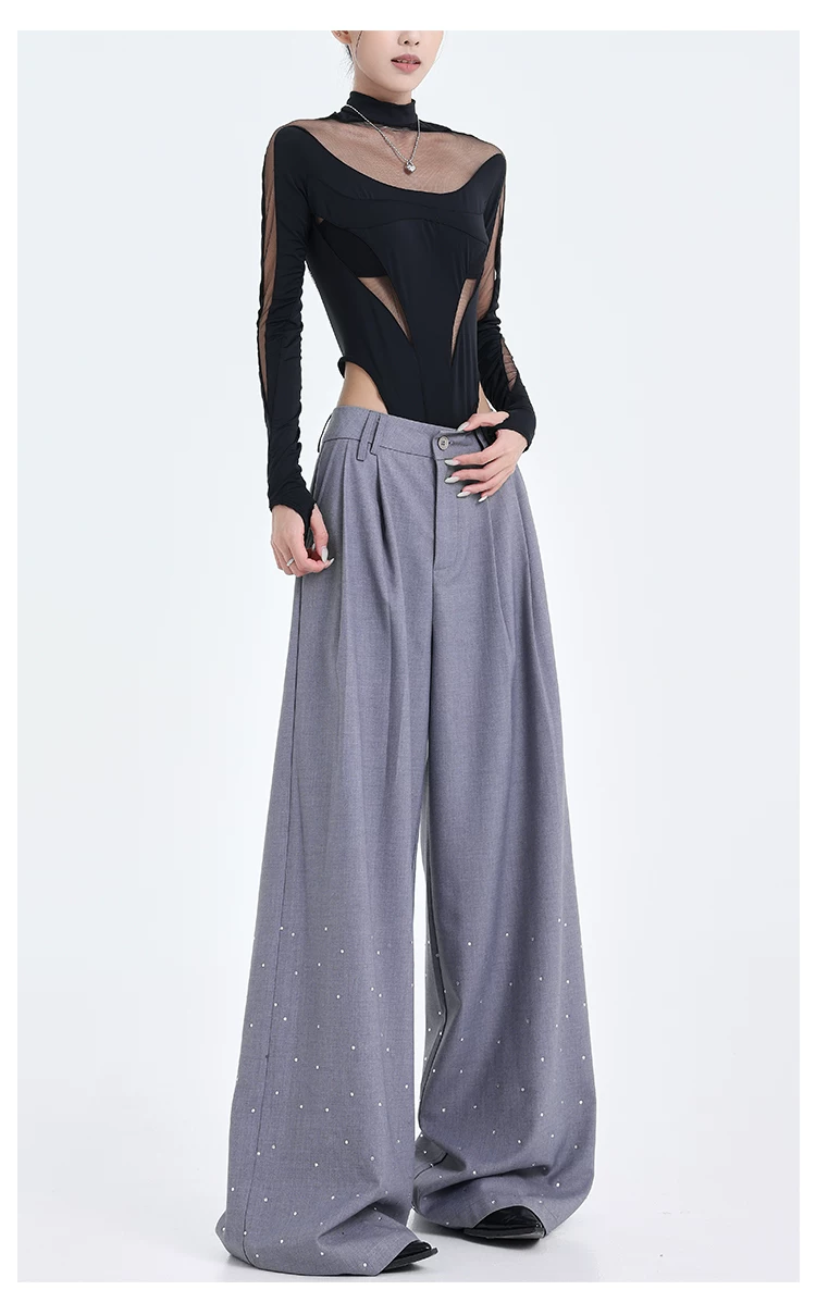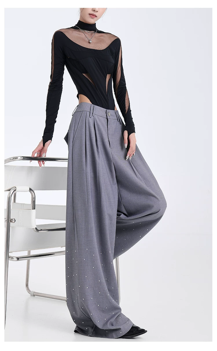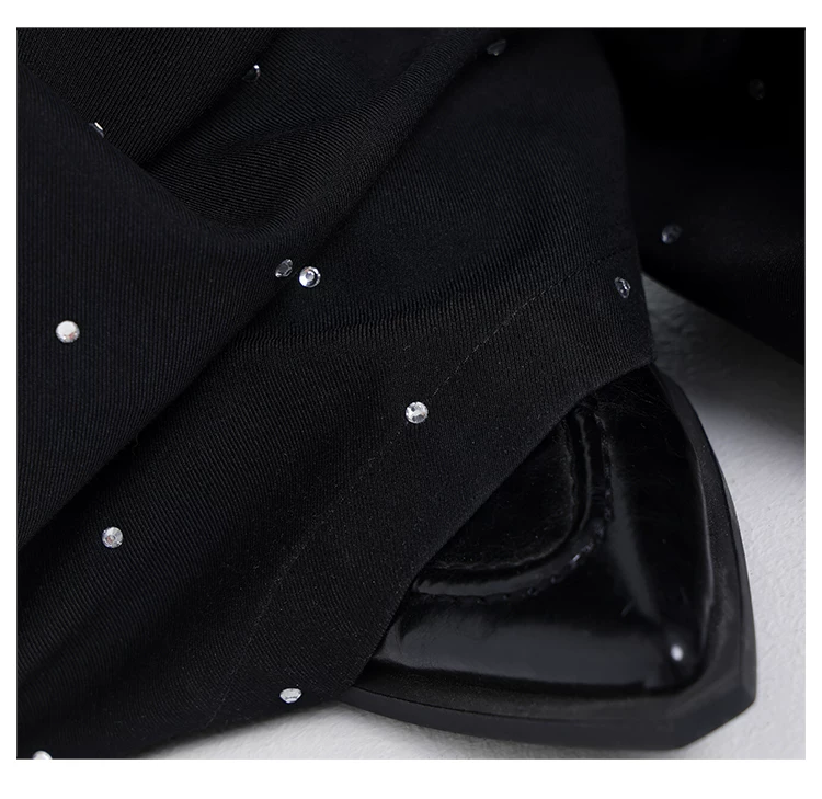 - KEN STUDIO nguyên bản mùa hè và mùa thu mới thiết kế đính đá màu đen phù hợp với quần đa năng quần ống rộng dáng rộng giảm béo