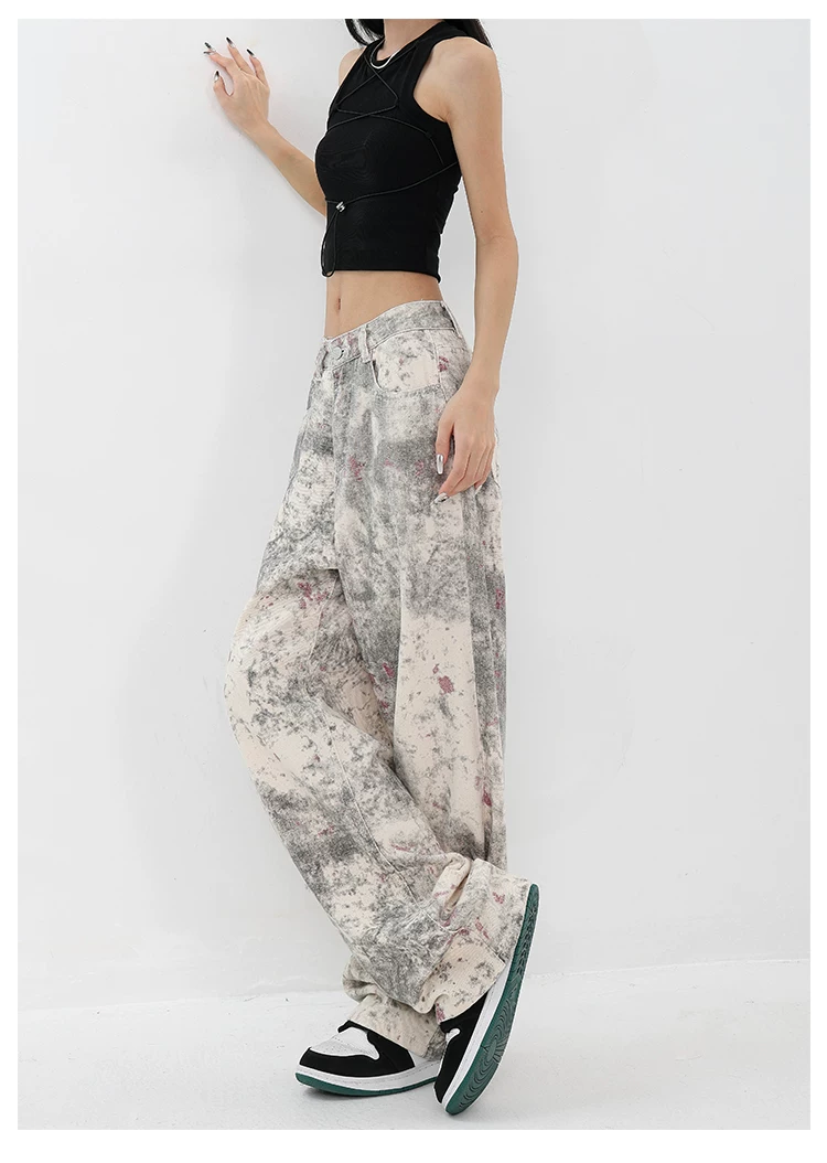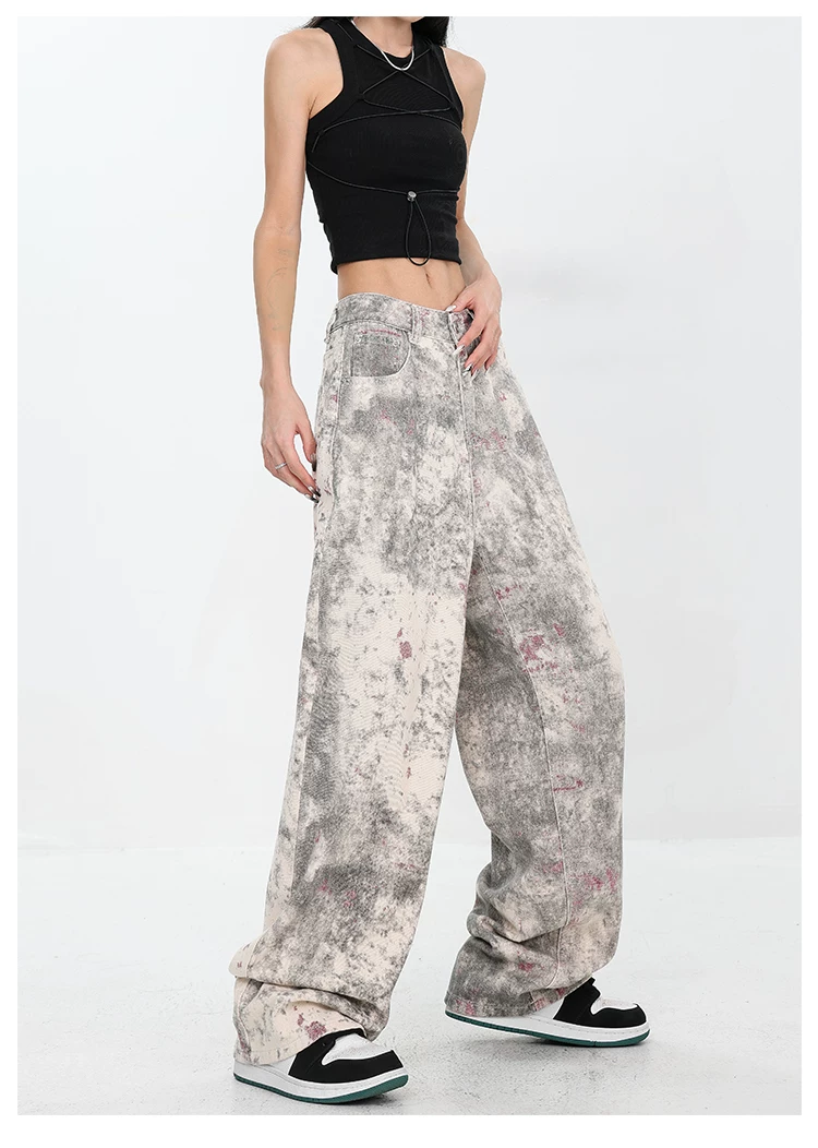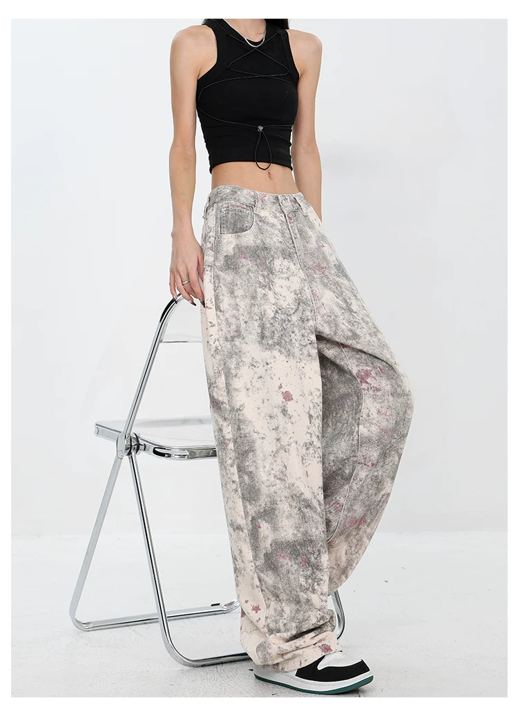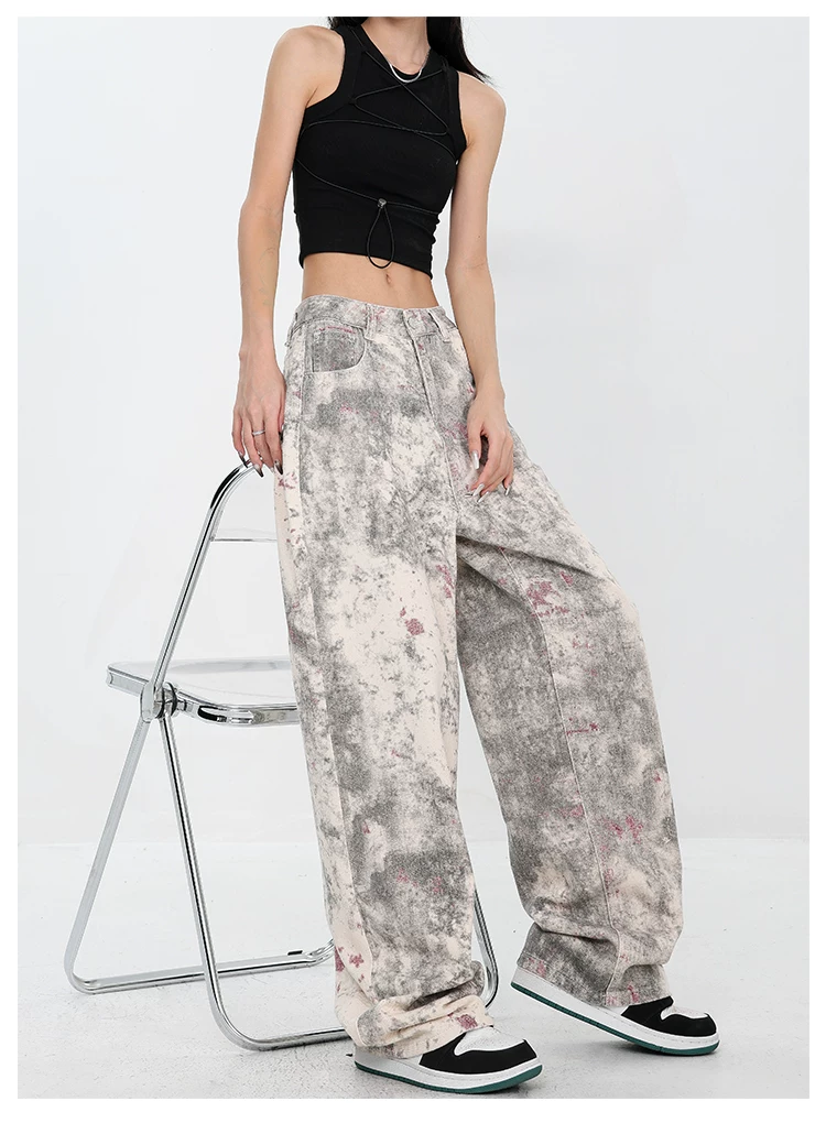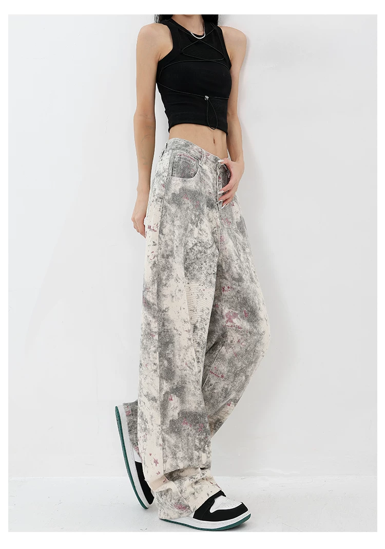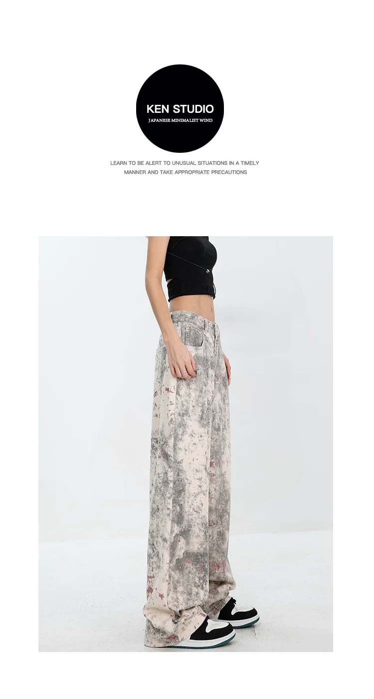 - KEN STUDIO phong cách mới mùa hè nguyên bản của Mỹ quần jean ống rộng dáng rộng kiểu dáng rộng thùng thình kiểu dáng rộng thùng thình