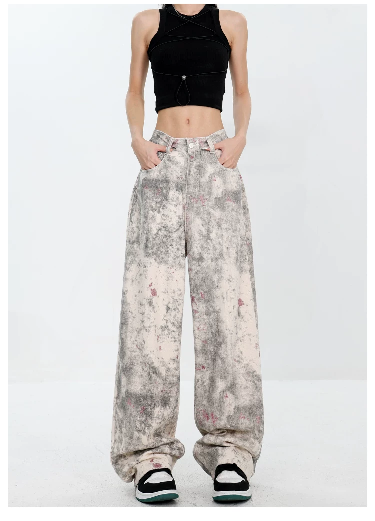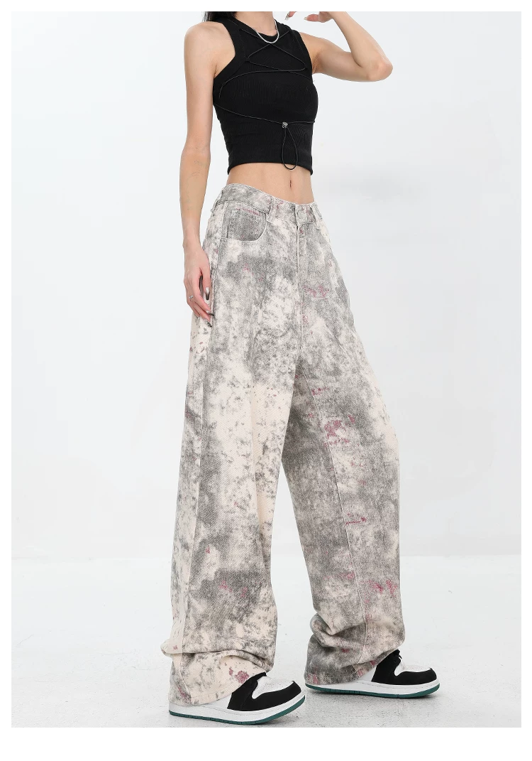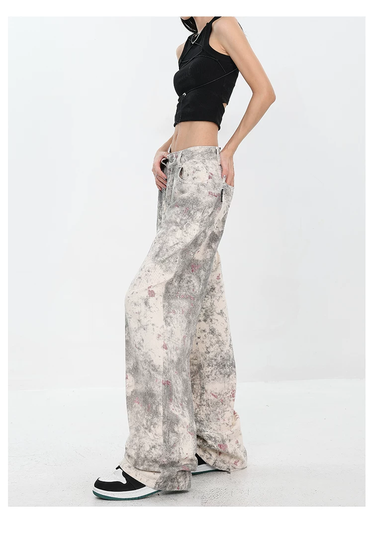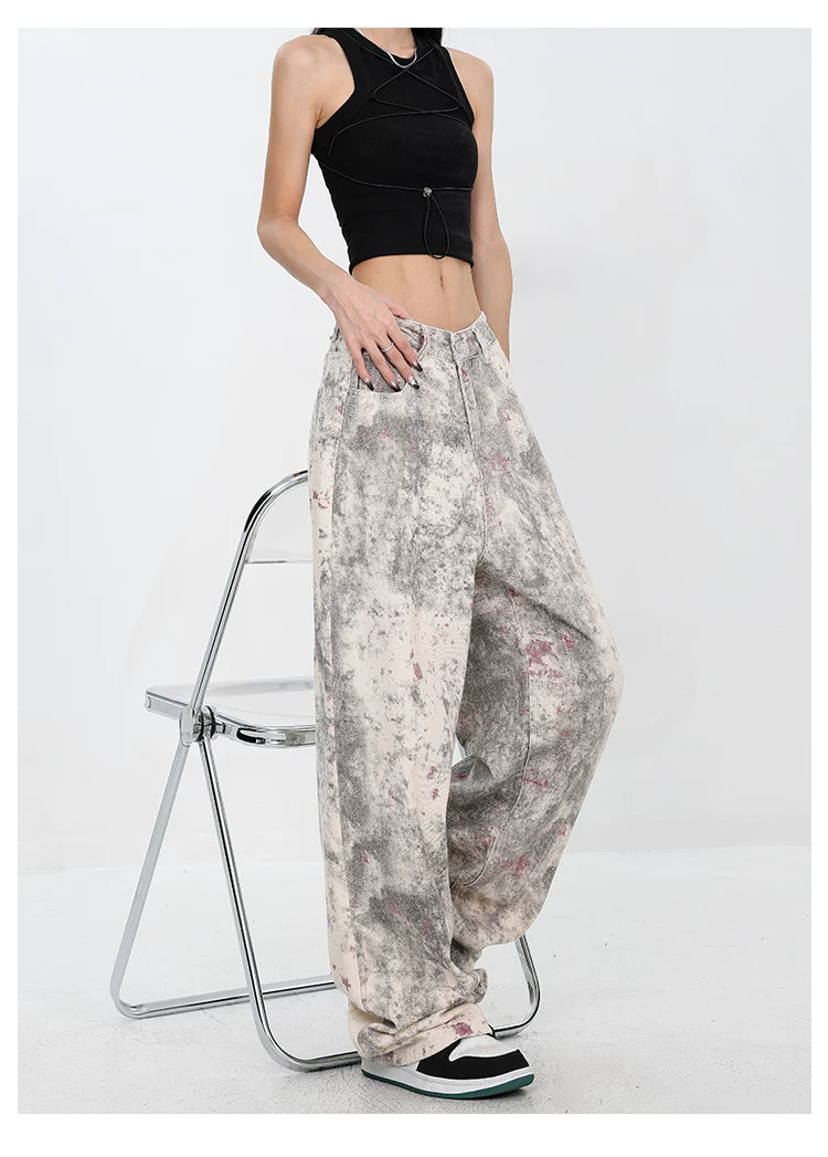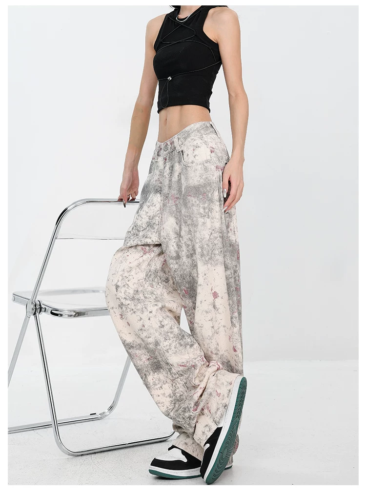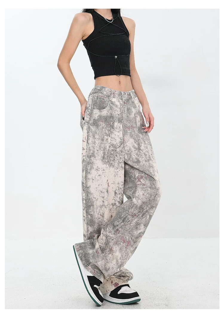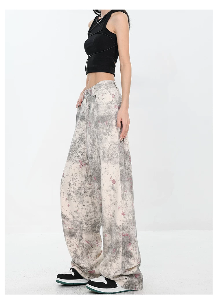 - KEN STUDIO phong cách mới mùa hè nguyên bản của Mỹ quần jean ống rộng dáng rộng kiểu dáng rộng thùng thình kiểu dáng rộng thùng thình