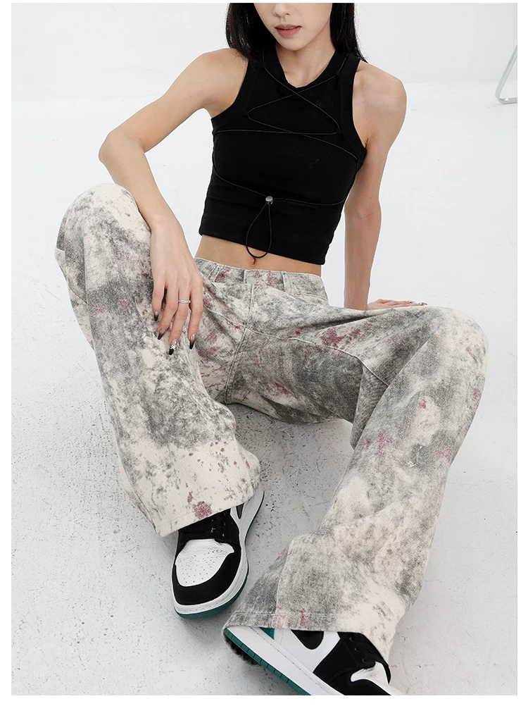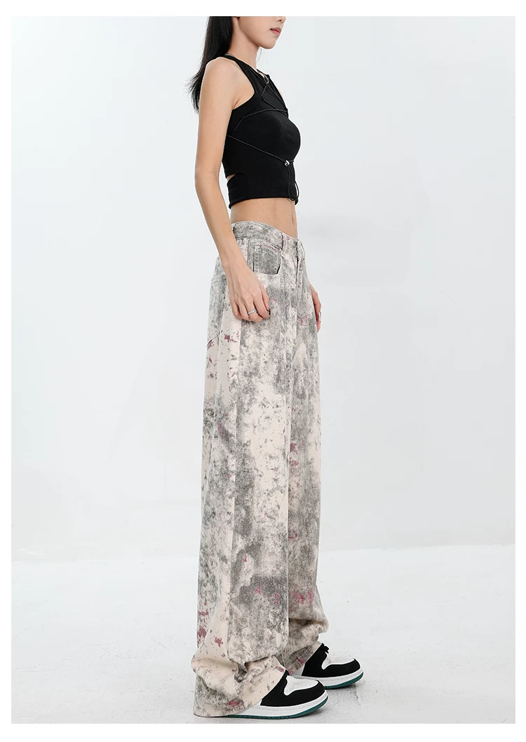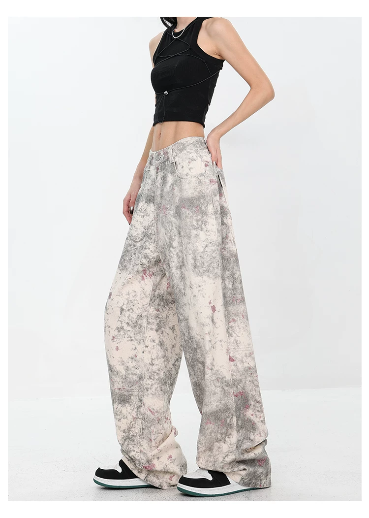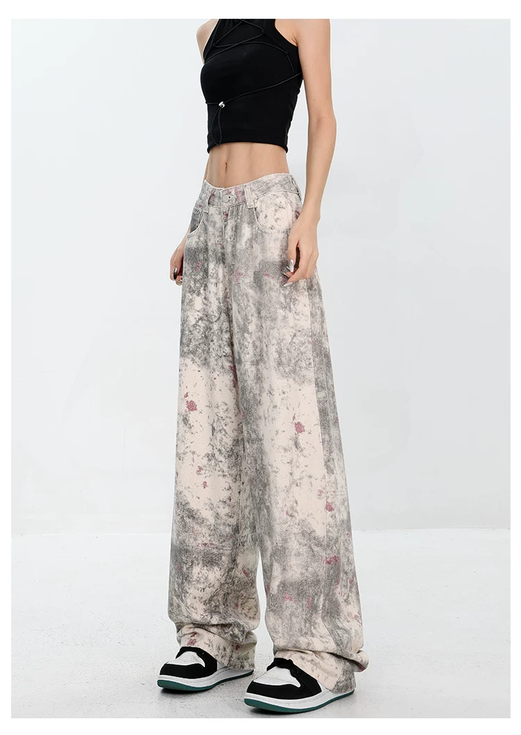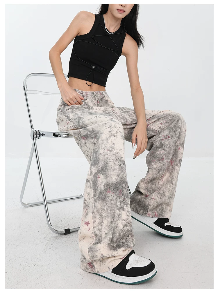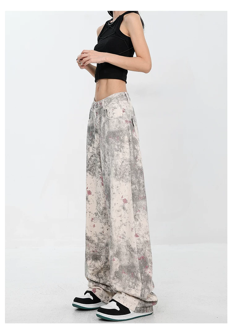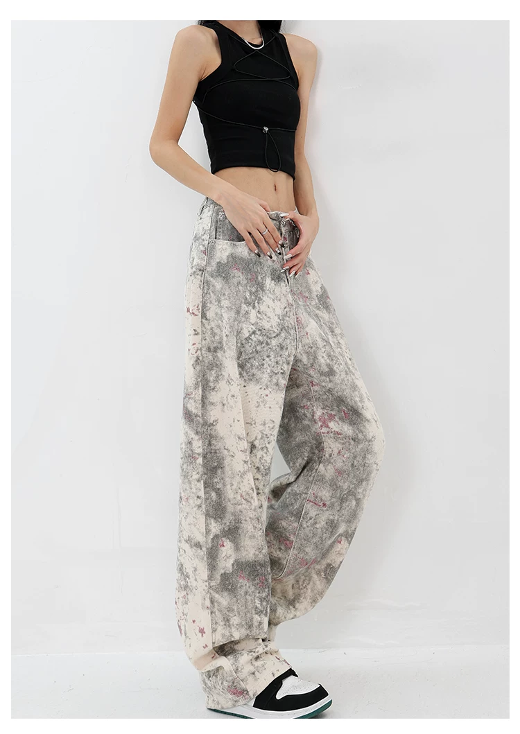 - KEN STUDIO phong cách mới mùa hè nguyên bản của Mỹ quần jean ống rộng dáng rộng kiểu dáng rộng thùng thình kiểu dáng rộng thùng thình