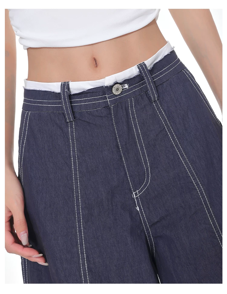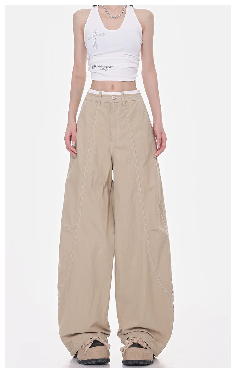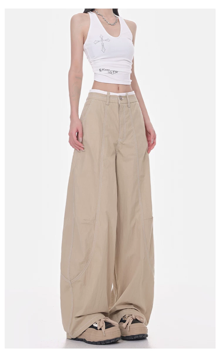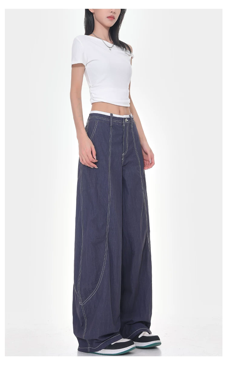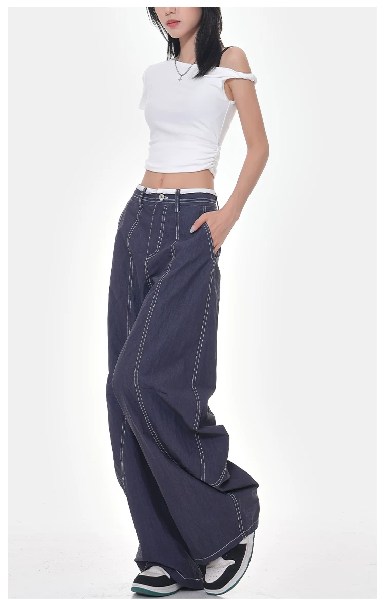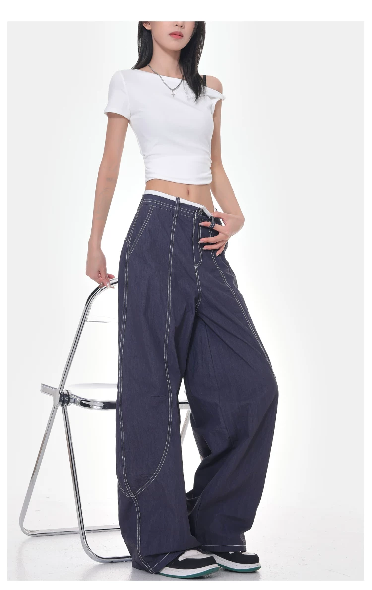 - KEN STUDIO phong cách mới mùa hè quần kiểu dáng thanh lịch kiểu Mỹ dành cho nữ quần lưng cao dáng rộng quần ống rộng kiểu chuối