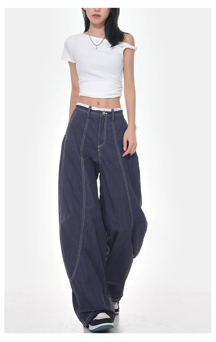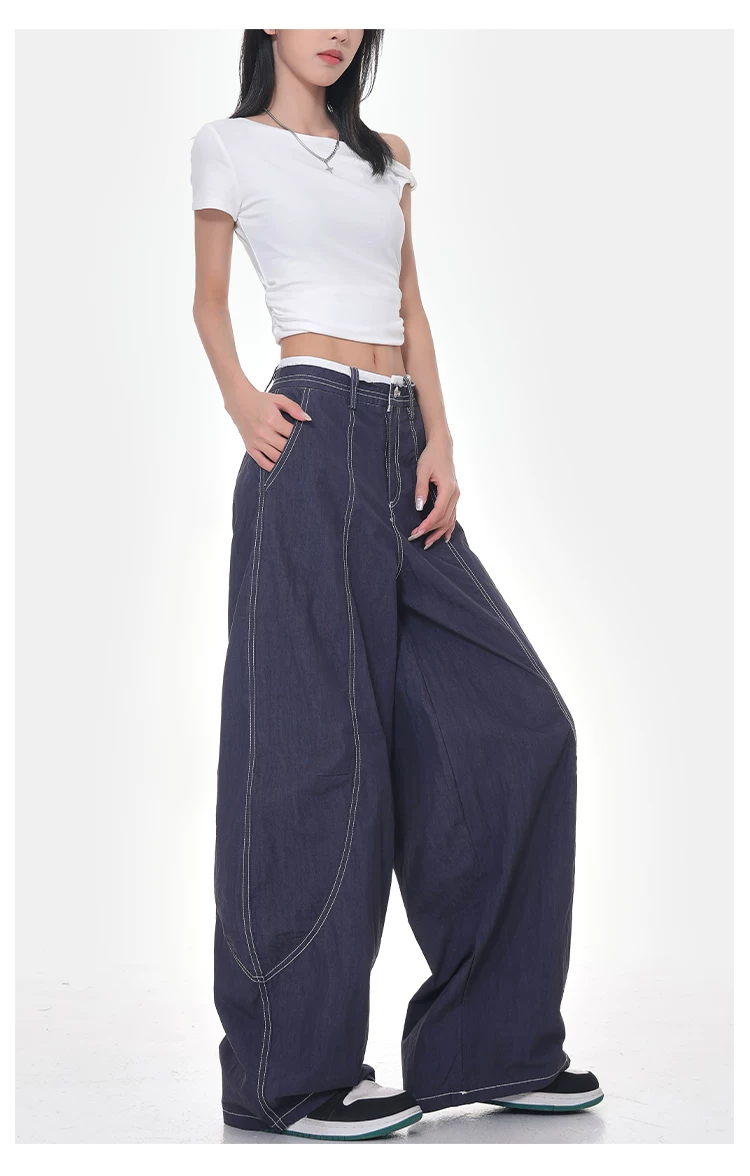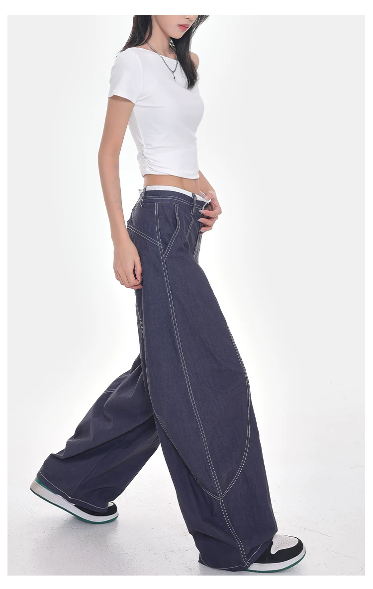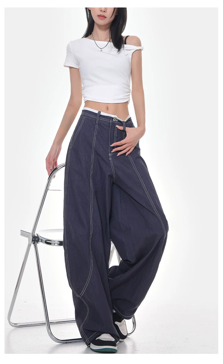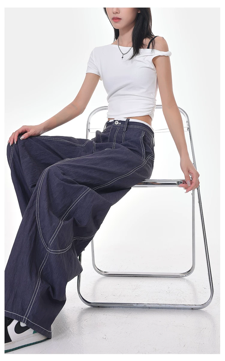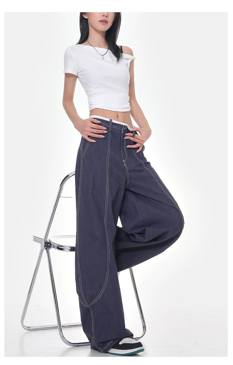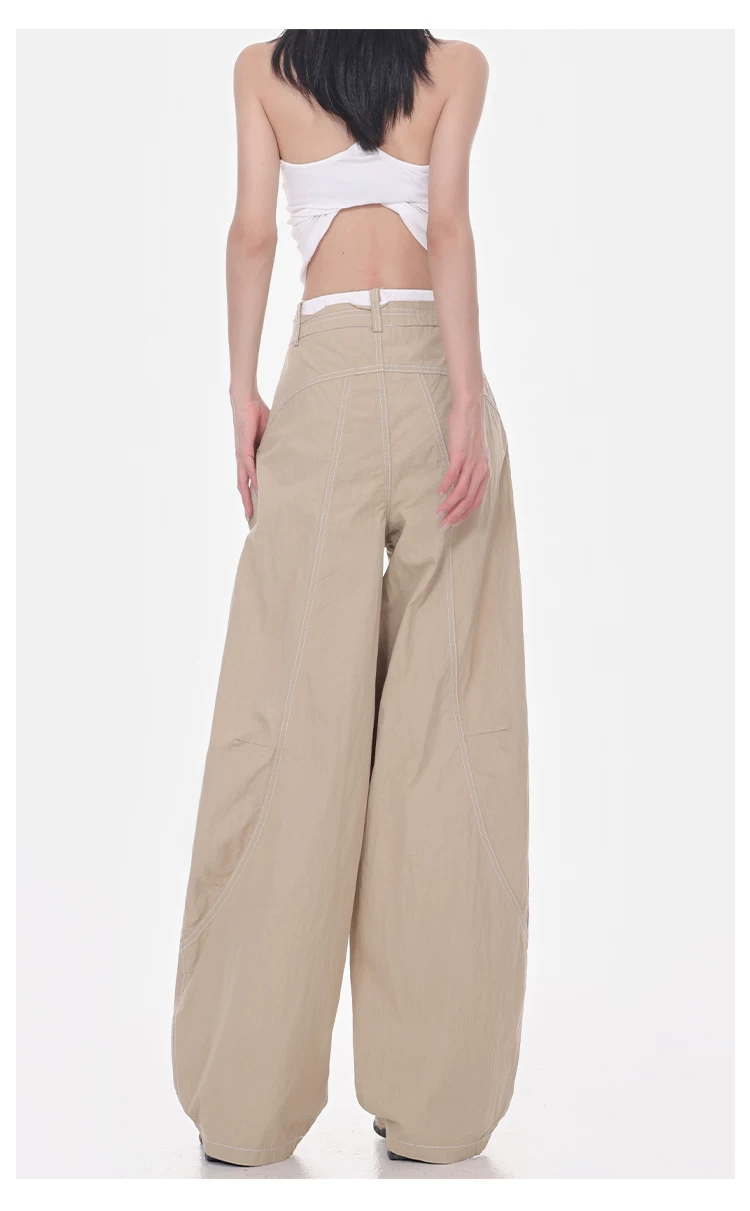 - KEN STUDIO phong cách mới mùa hè quần kiểu dáng thanh lịch kiểu Mỹ dành cho nữ quần lưng cao dáng rộng quần ống rộng kiểu chuối