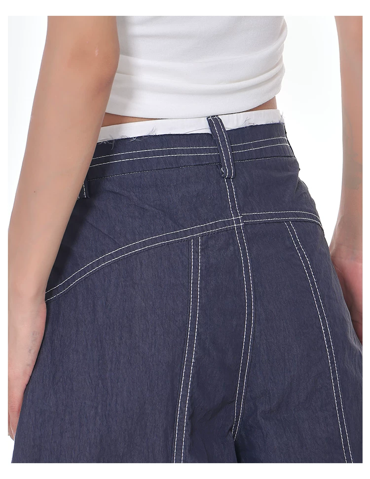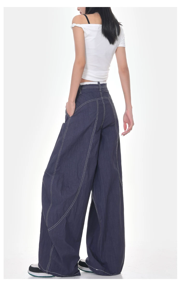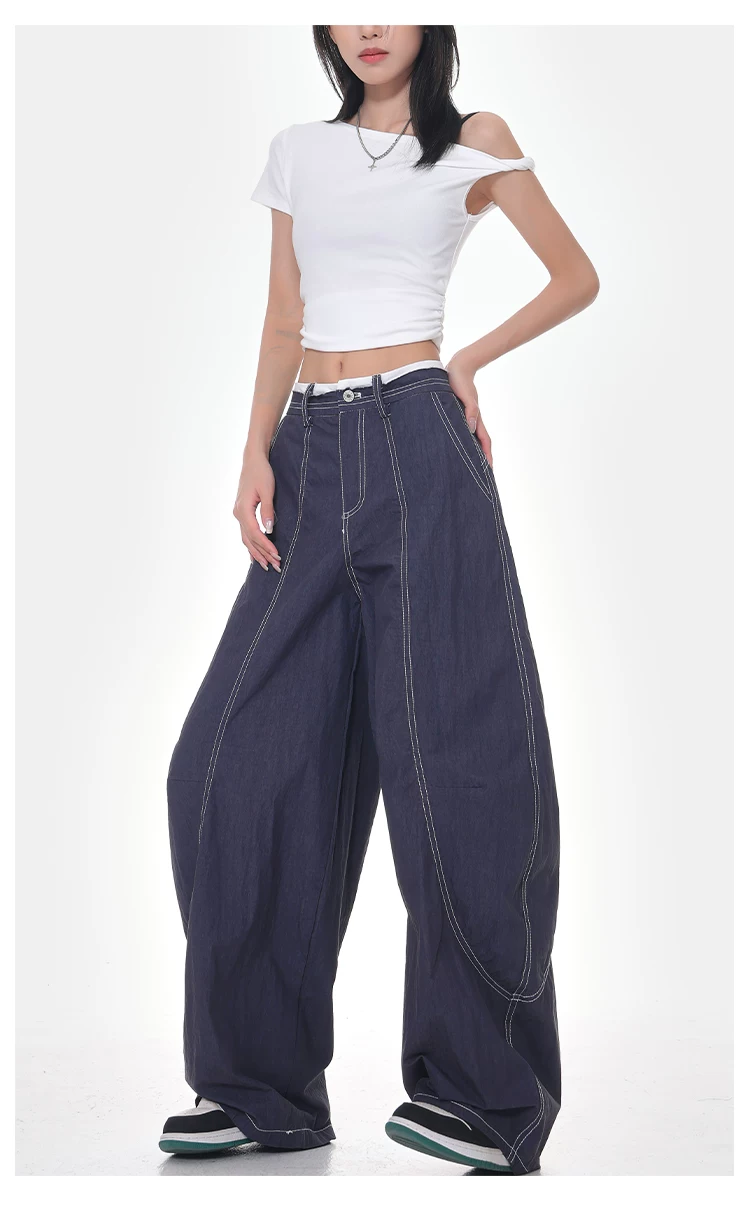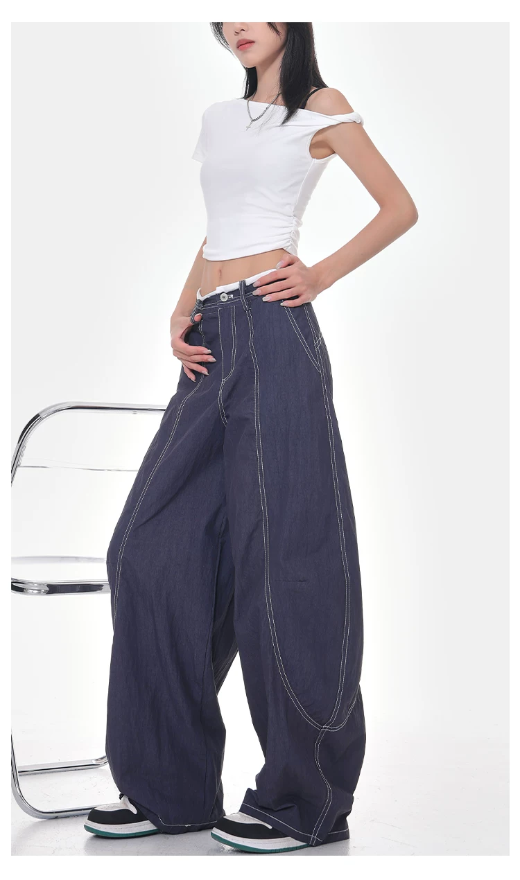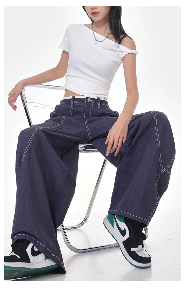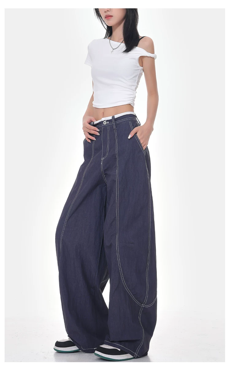 - KEN STUDIO phong cách mới mùa hè quần kiểu dáng thanh lịch kiểu Mỹ dành cho nữ quần lưng cao dáng rộng quần ống rộng kiểu chuối