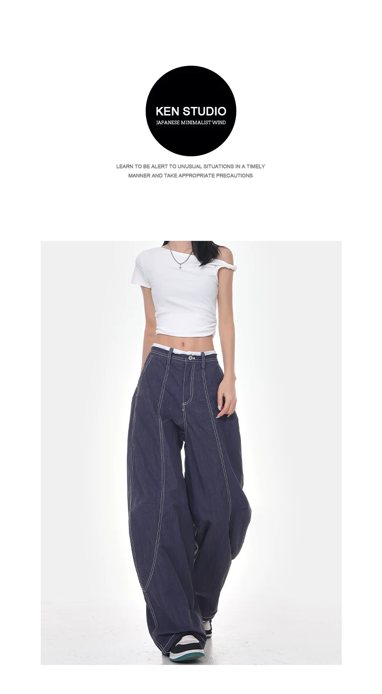 KEN STUDIO phong cách mới mùa hè quần kiểu dáng thanh lịch kiểu Mỹ dành cho nữ quần lưng cao dáng rộng quần ống rộng kiểu chuối