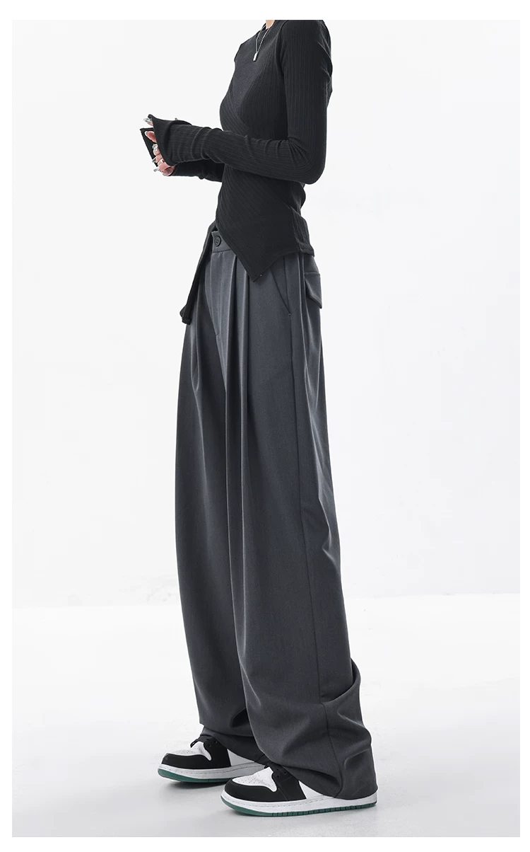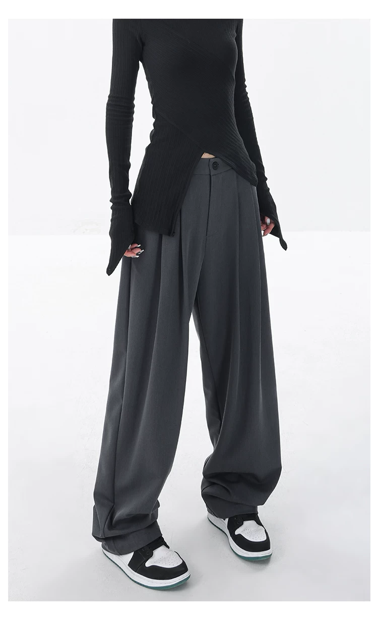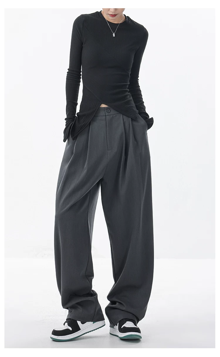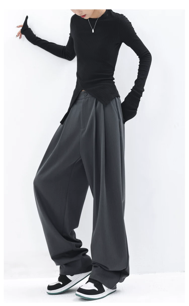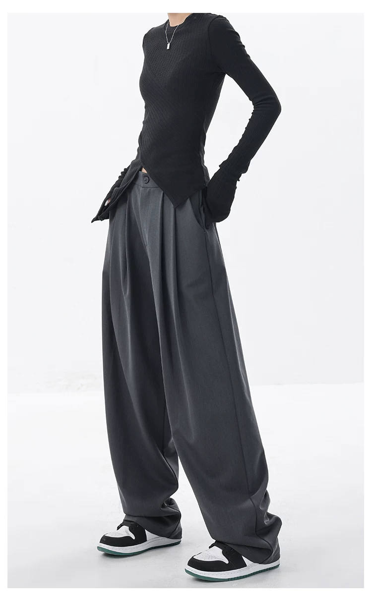 KEN STUDIO quần âu dáng rộng mới đầu thu dành cho nữ với thiết kế xếp ly quần ống rộng độc đáo