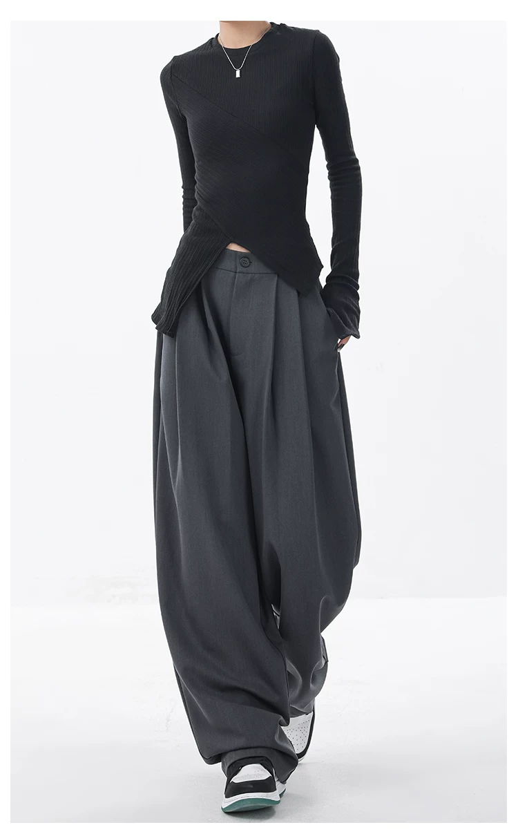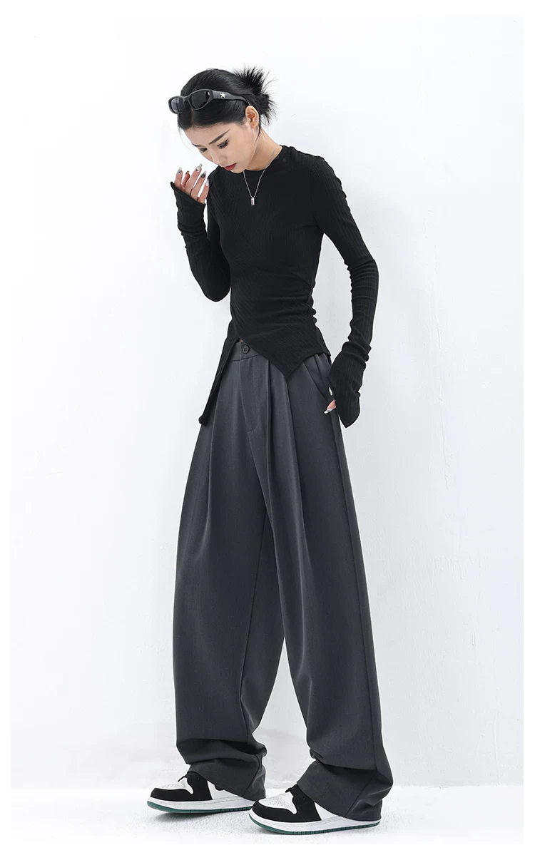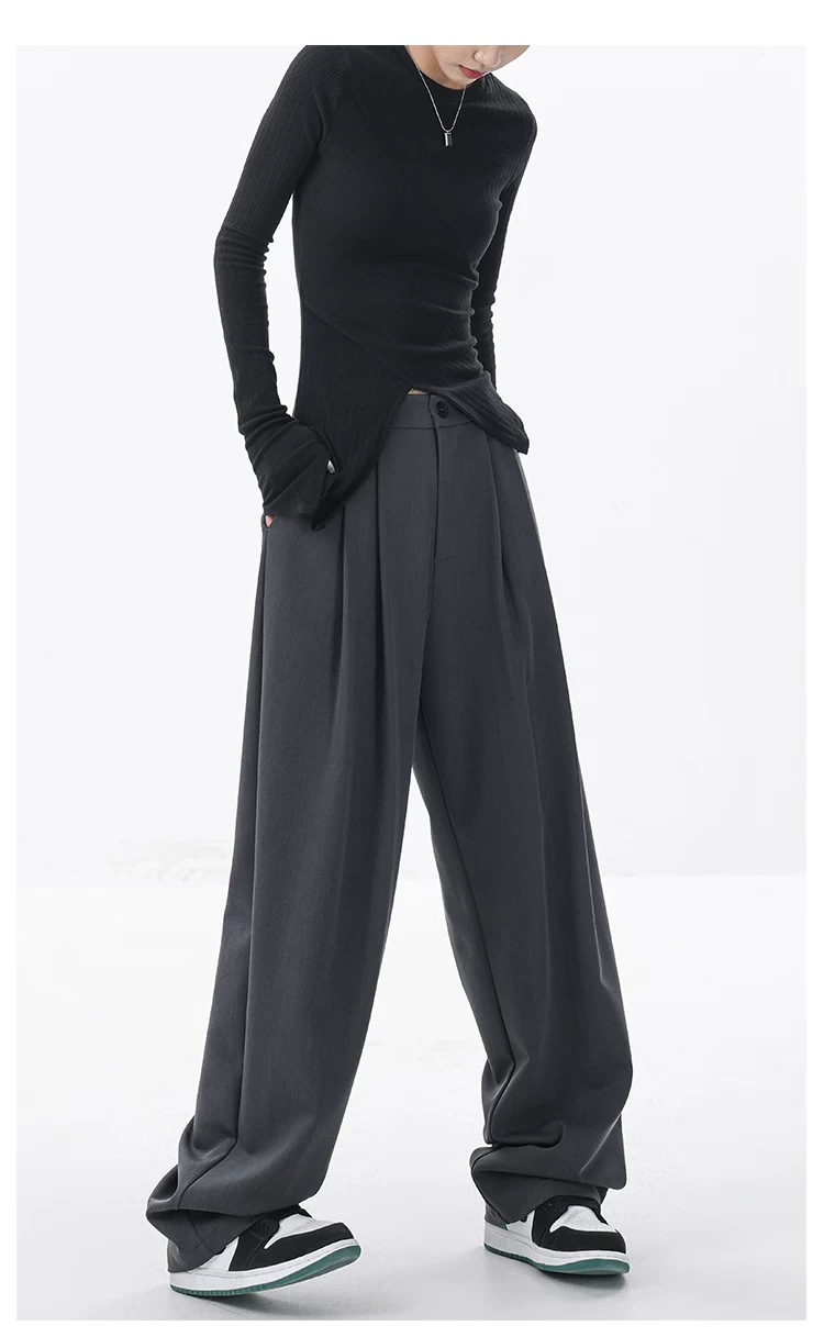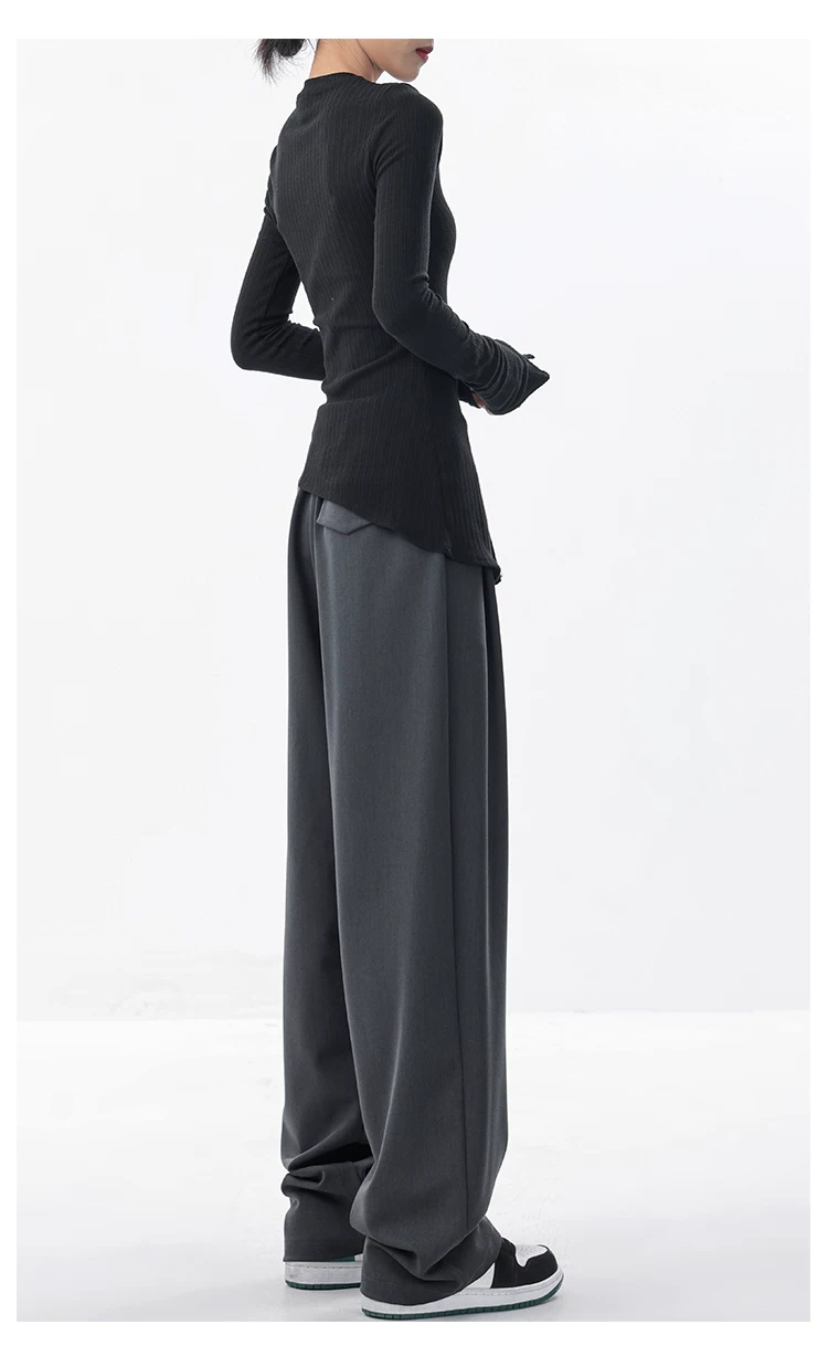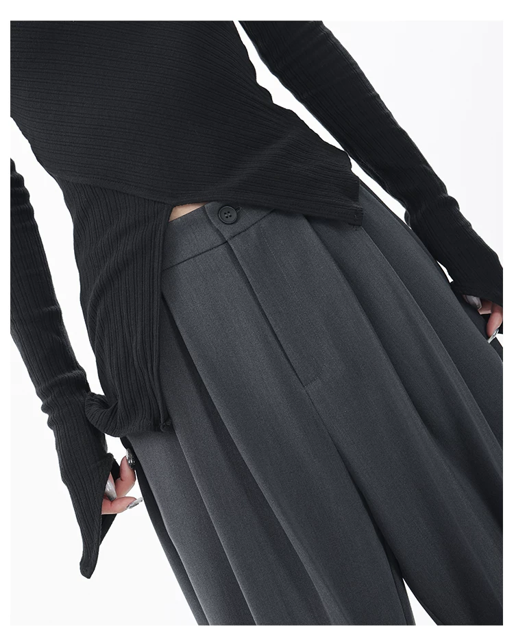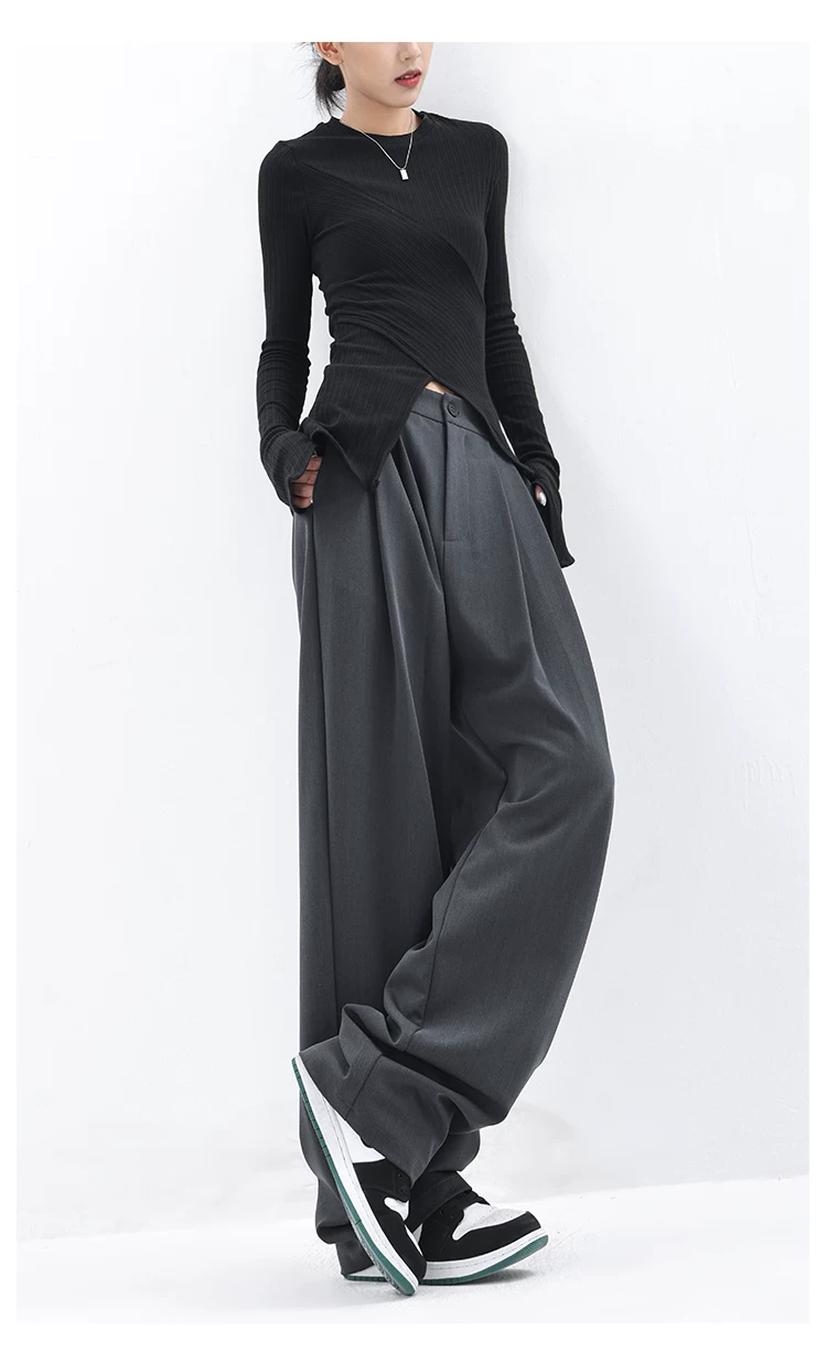 KEN STUDIO quần âu dáng rộng mới đầu thu dành cho nữ với thiết kế xếp ly quần ống rộng độc đáo