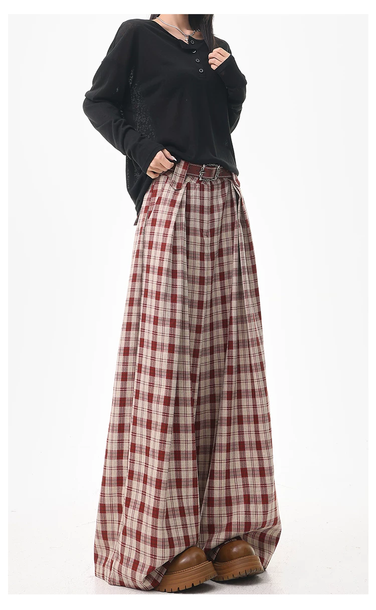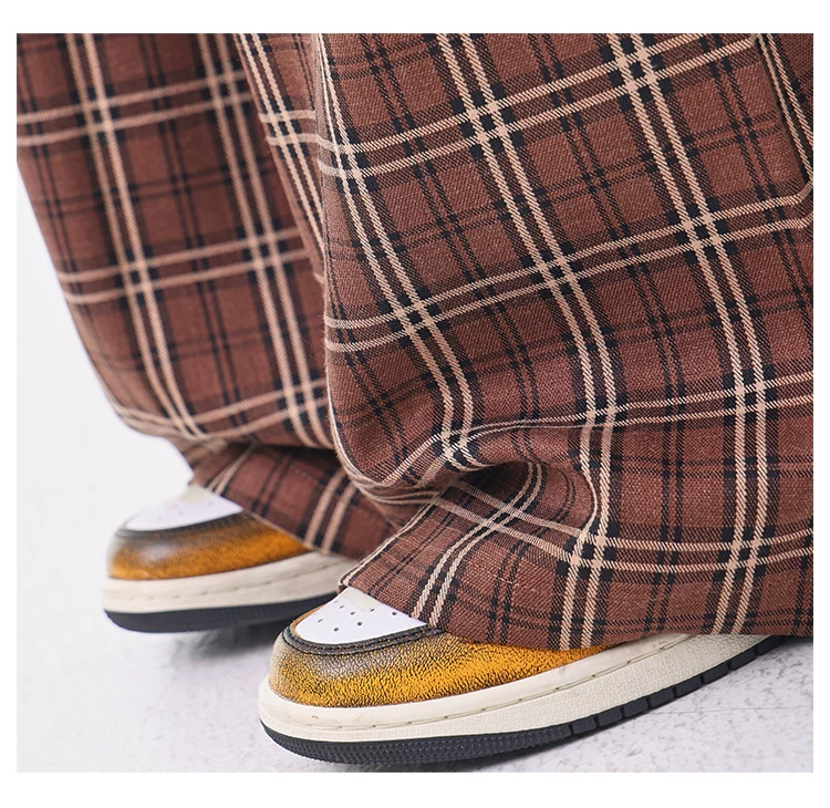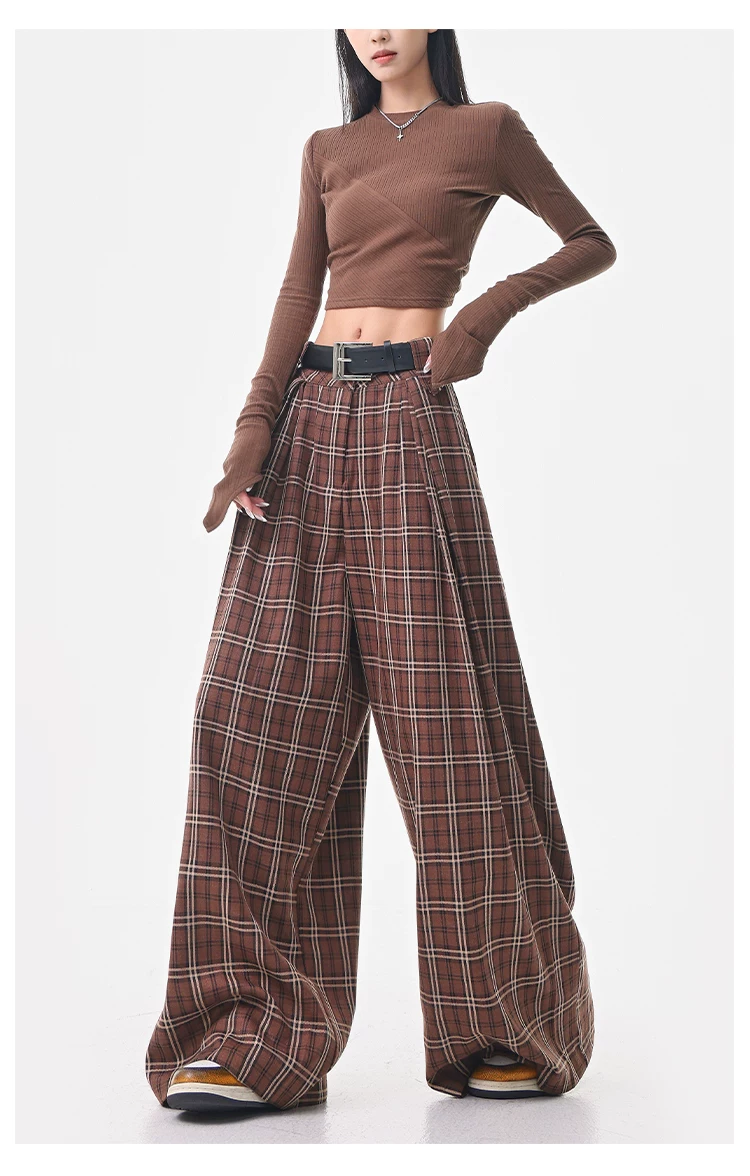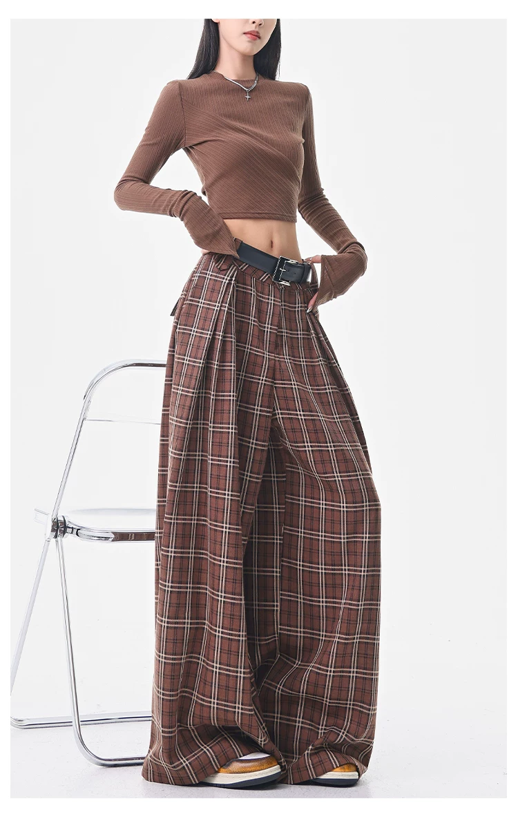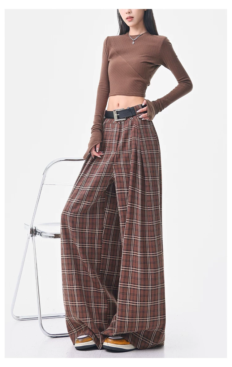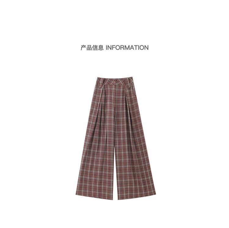 - KEN STUDIO quần âu kẻ sọc màu cà phê cổ điển mới mùa hè và mùa thu dành cho nữ, quần cạp cao, dáng rộng, quần kiểu dáng ôm dáng.