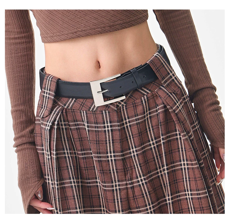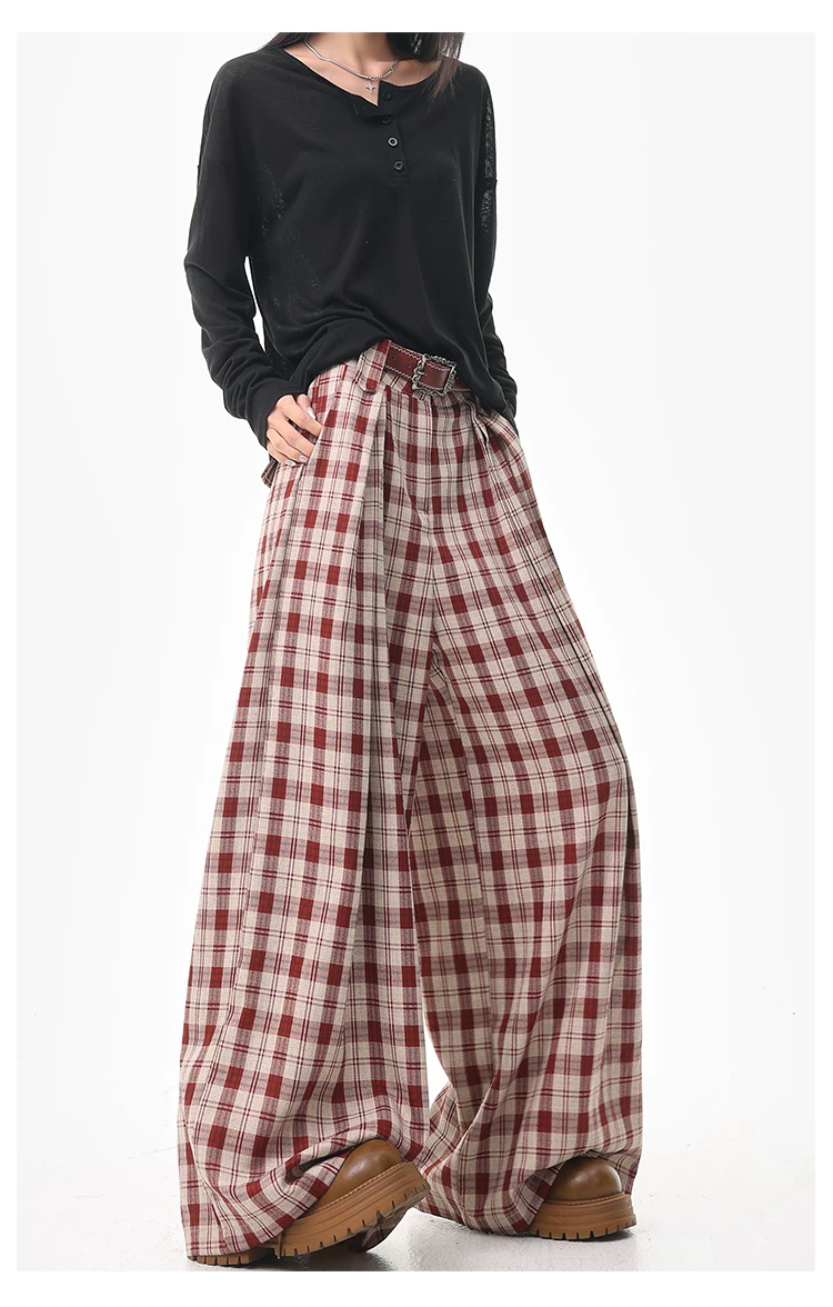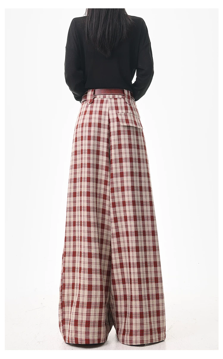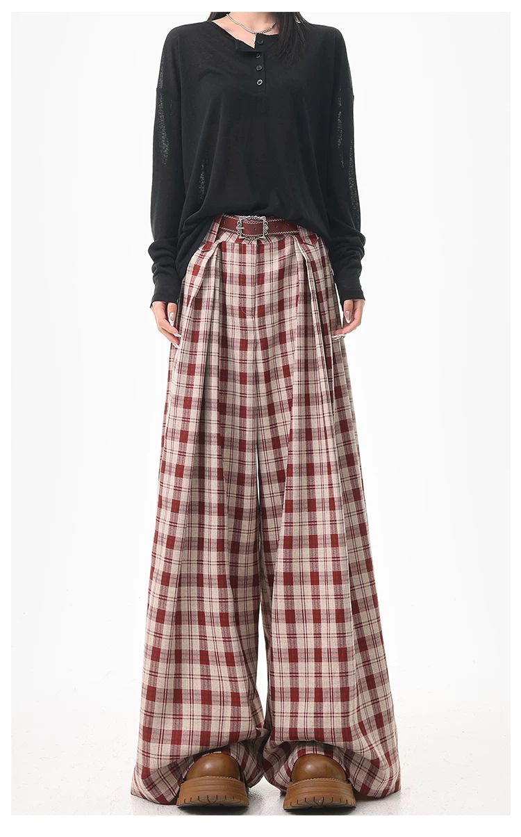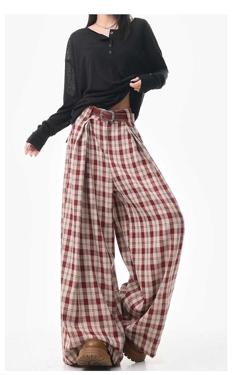 - KEN STUDIO quần âu kẻ sọc màu cà phê cổ điển mới mùa hè và mùa thu dành cho nữ, quần cạp cao, dáng rộng, quần kiểu dáng ôm dáng.