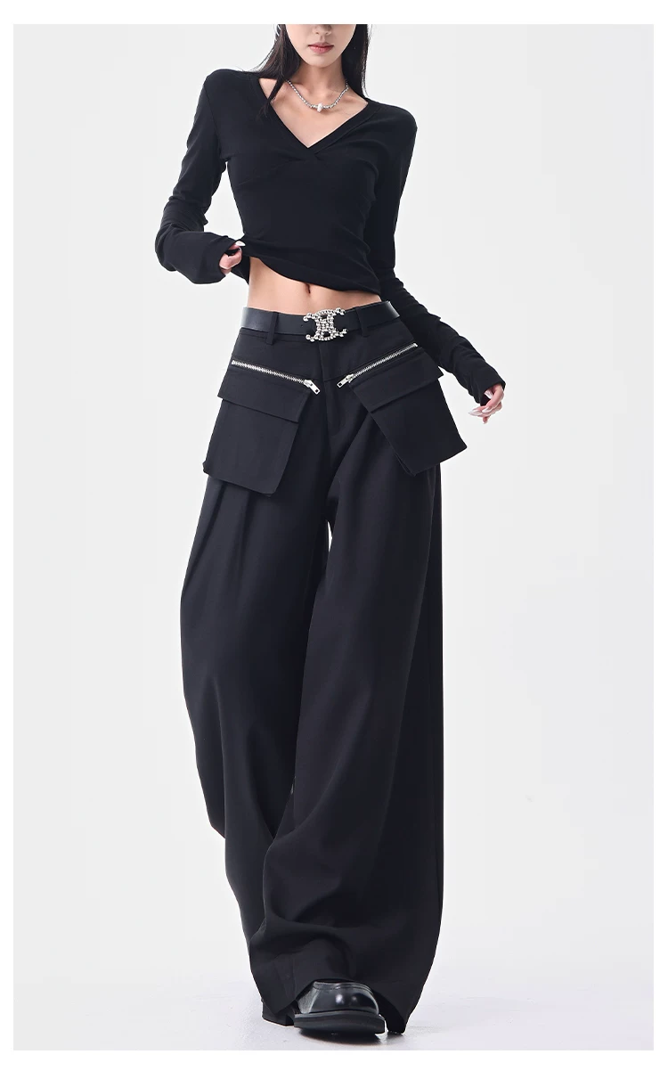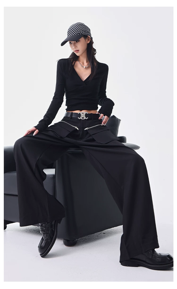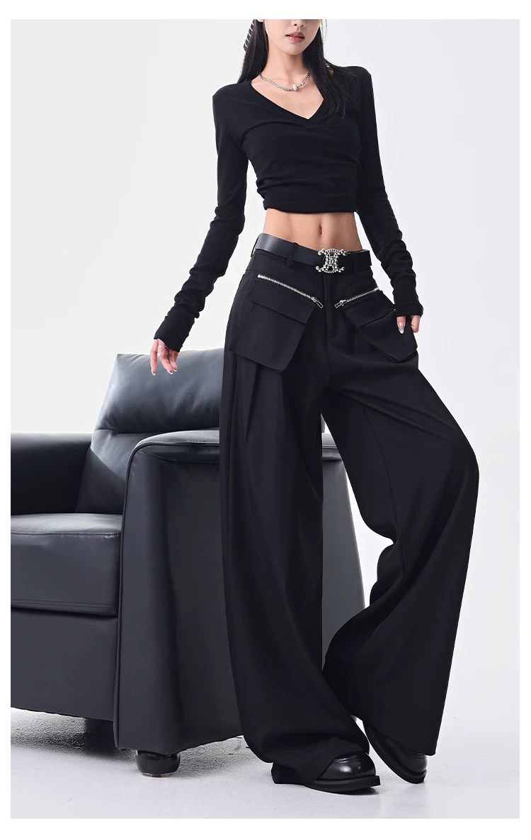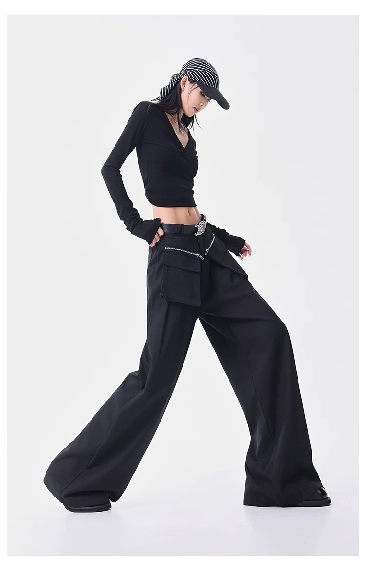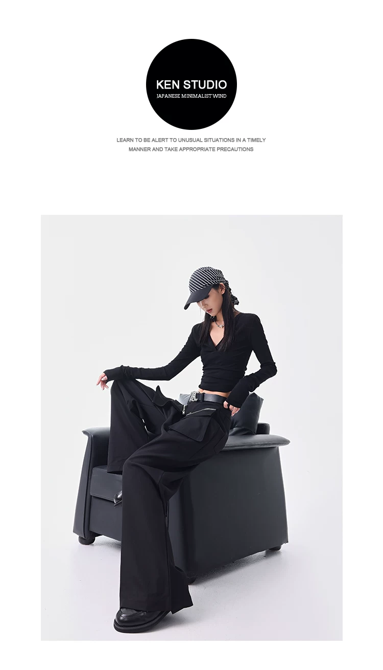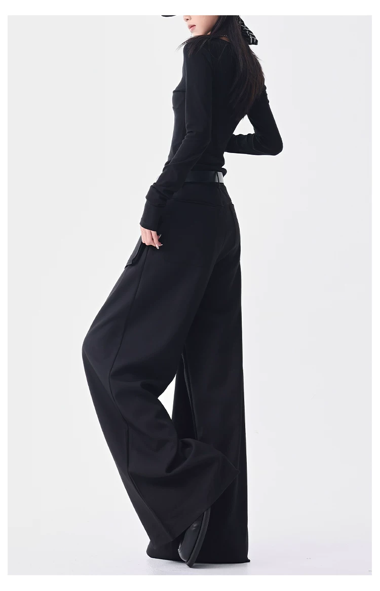 - KEN STUDIO quần âu ống đứng màu đen mới đầu thu dành cho nữ, quần ống rộng dáng rộng giản dị sành điệu