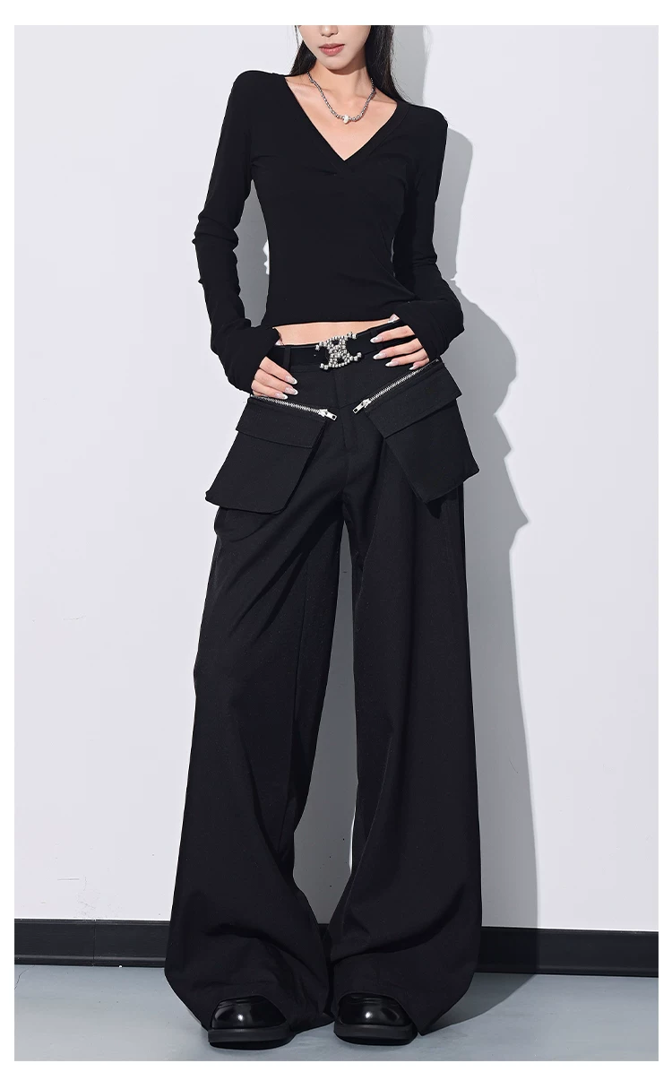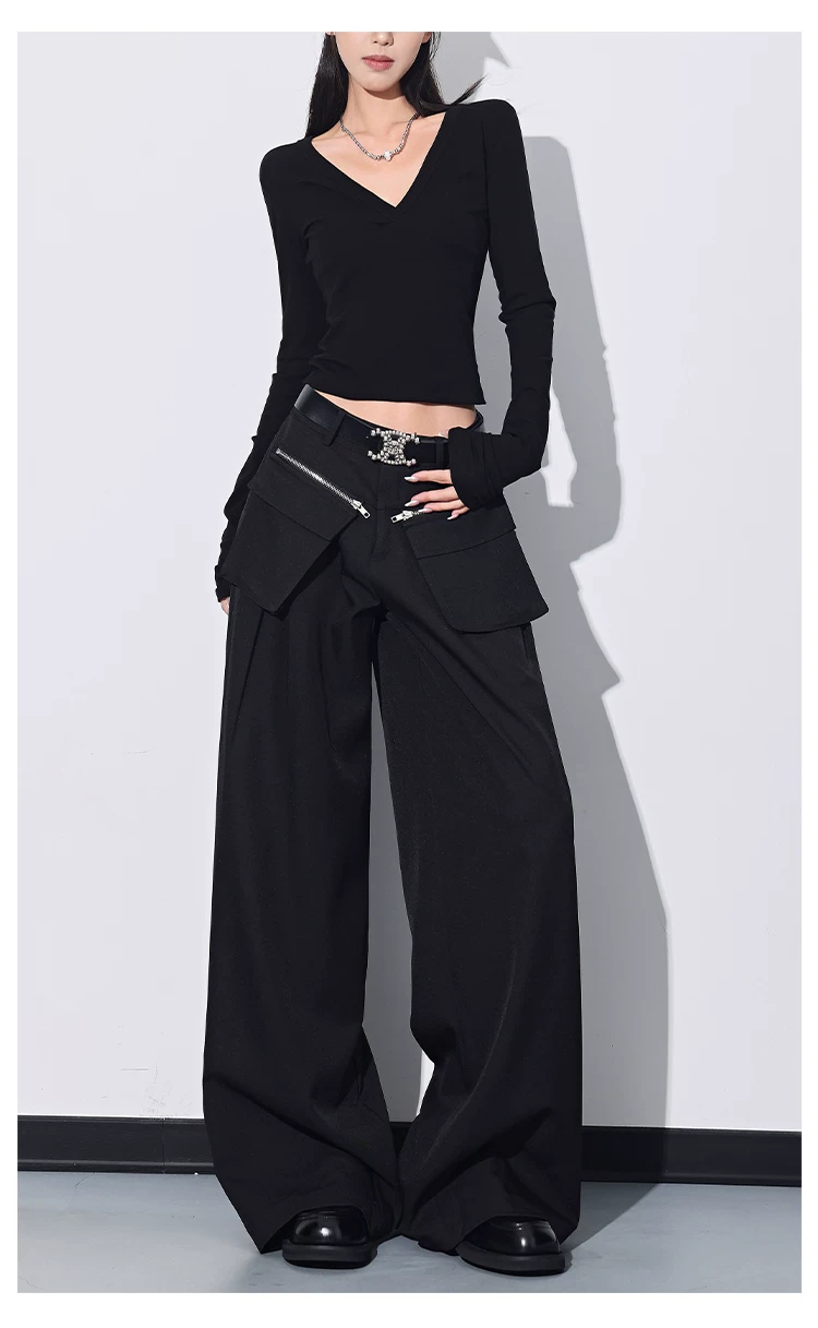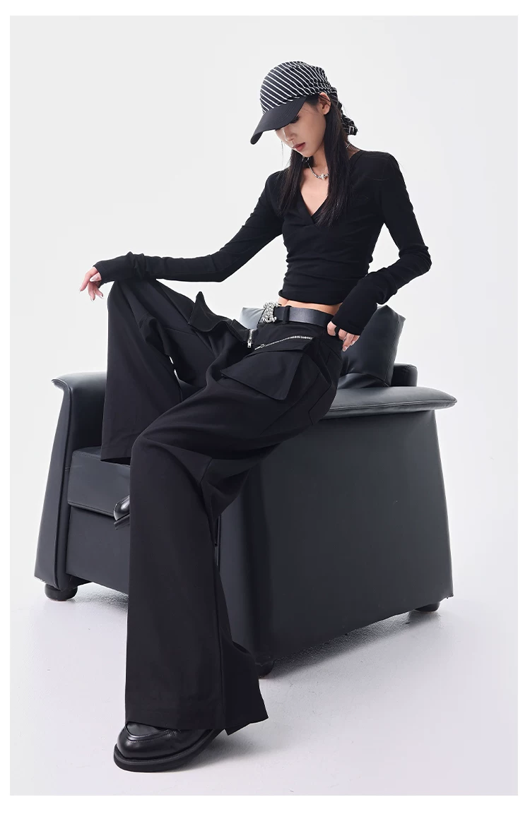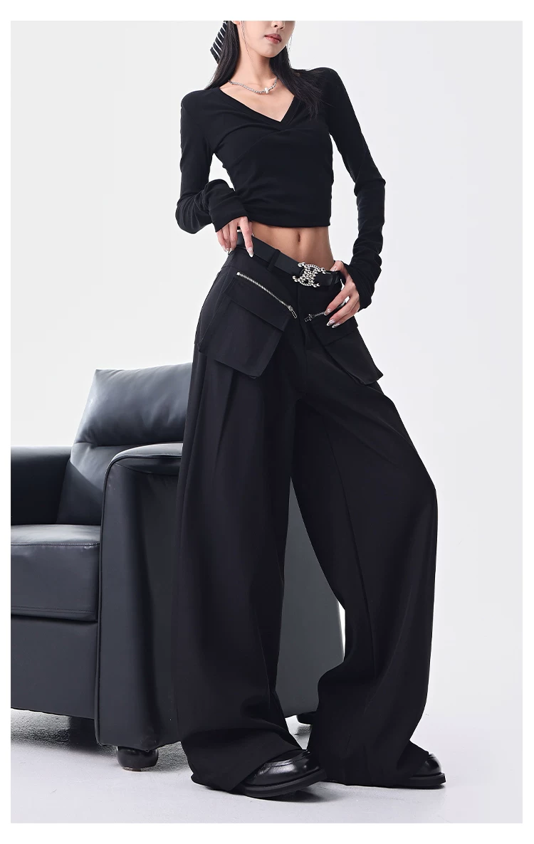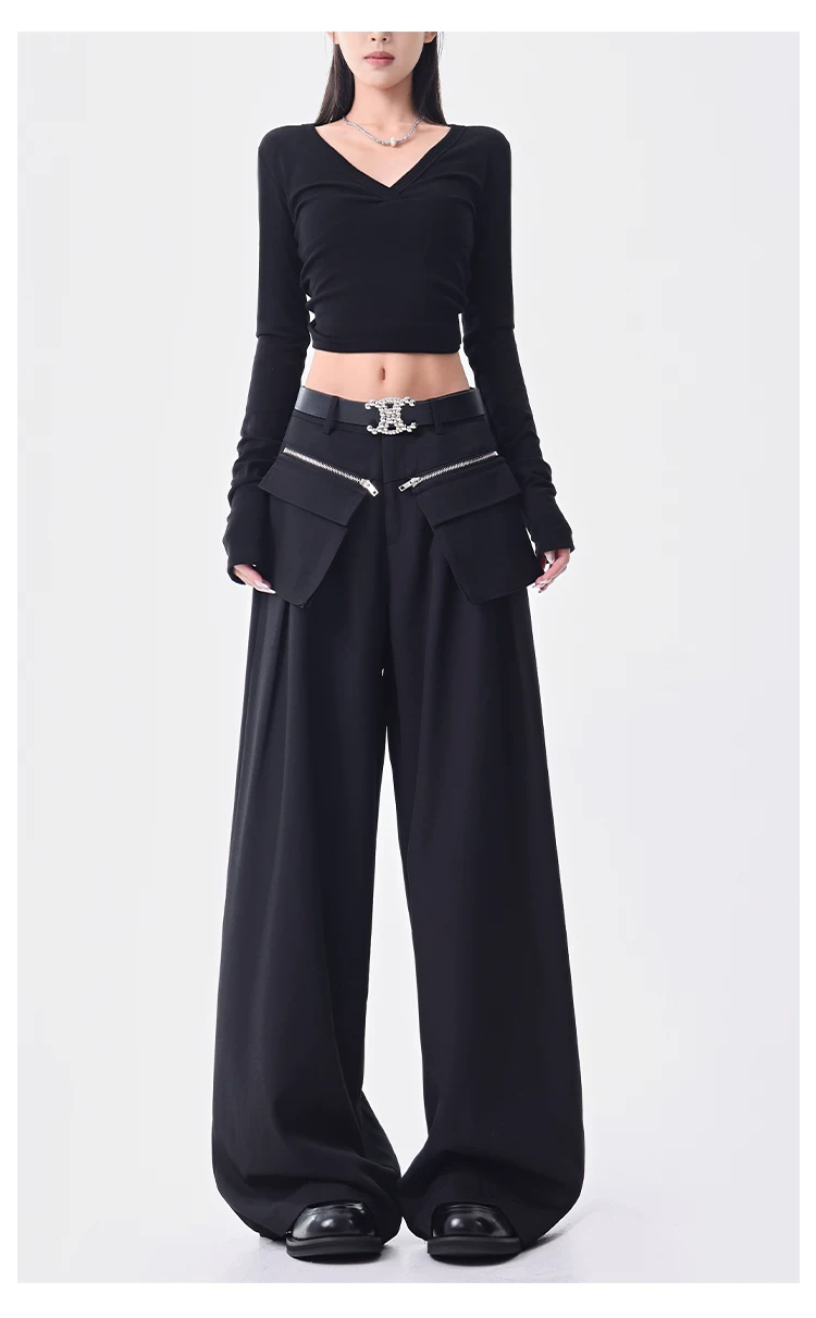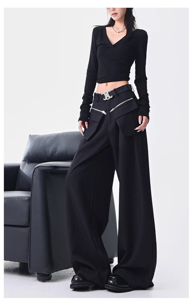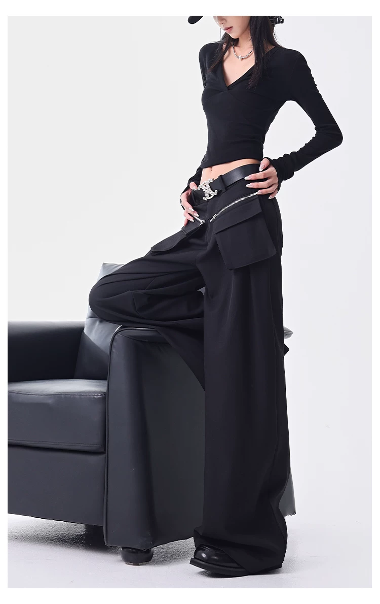 - KEN STUDIO quần âu ống đứng màu đen mới đầu thu dành cho nữ, quần ống rộng dáng rộng giản dị sành điệu