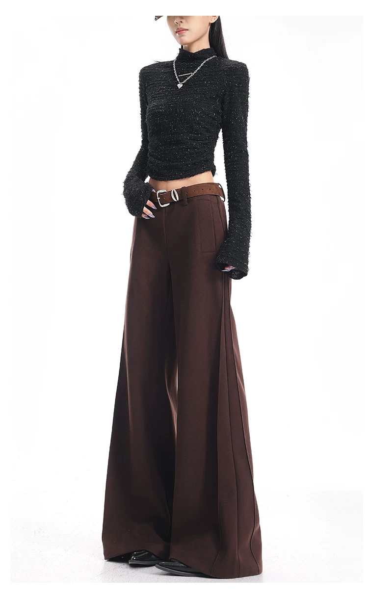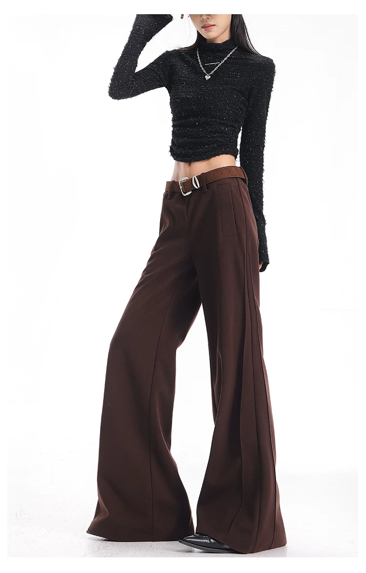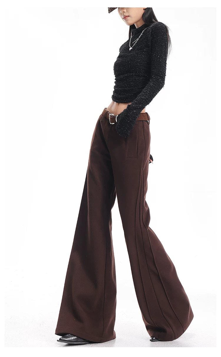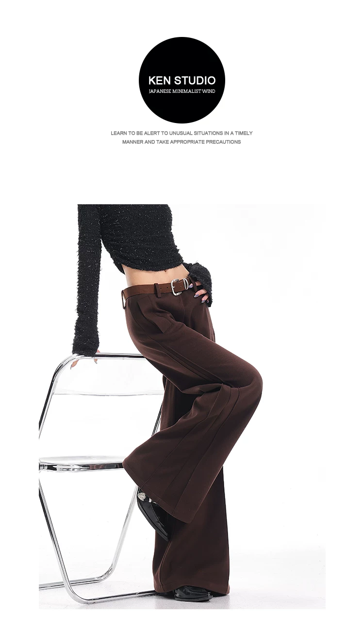 - KEN STUDIO Quần âu ống loe màu cà phê thu đông mới dành cho nữ, chất liệu len dày, ôm dáng, quần ống rộng.