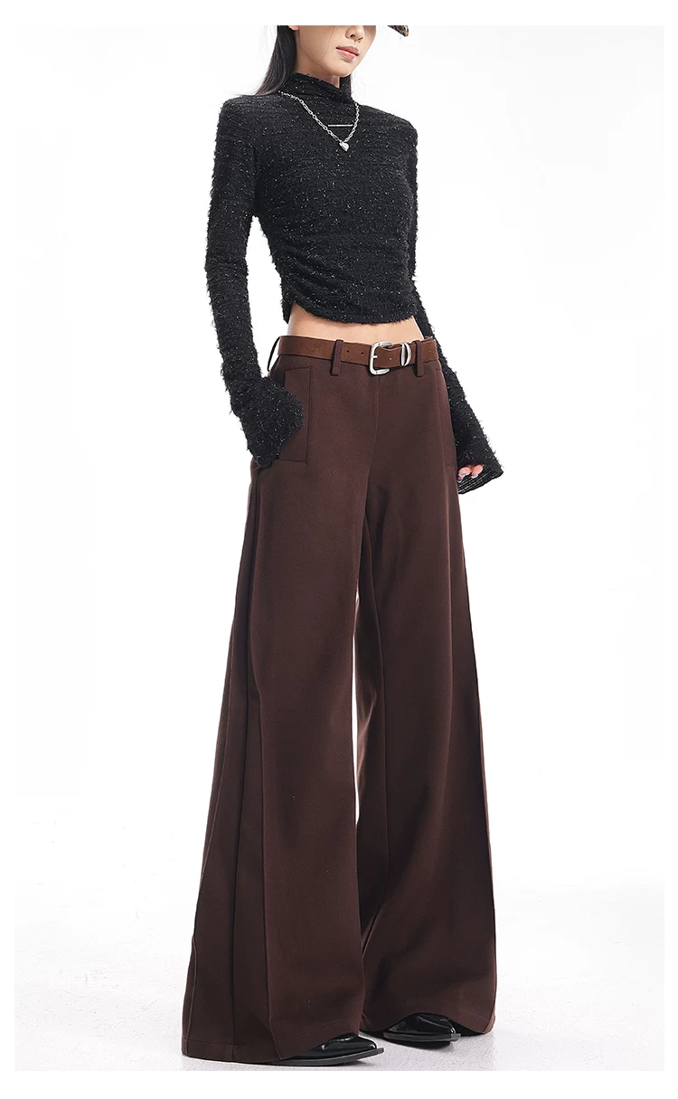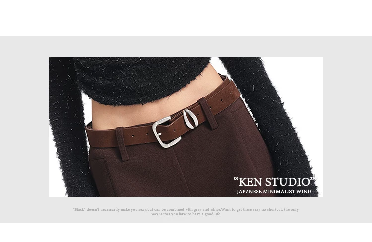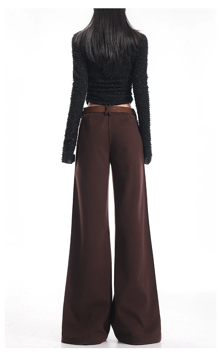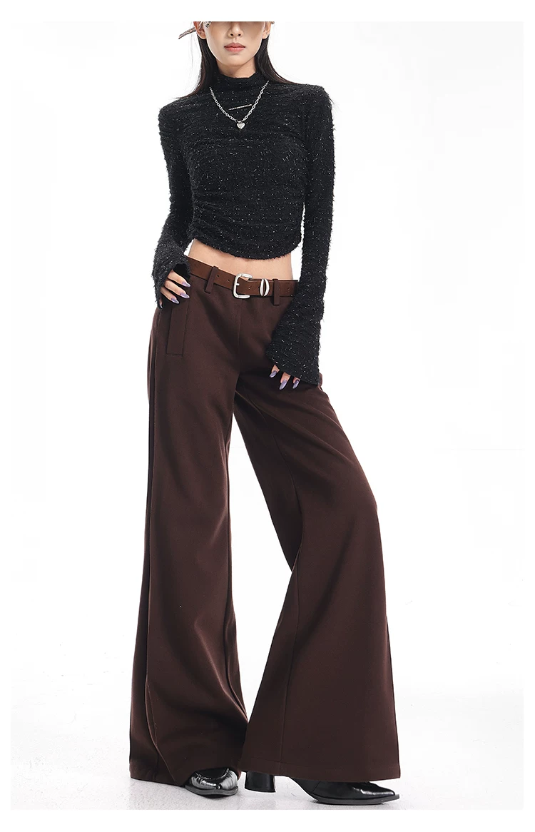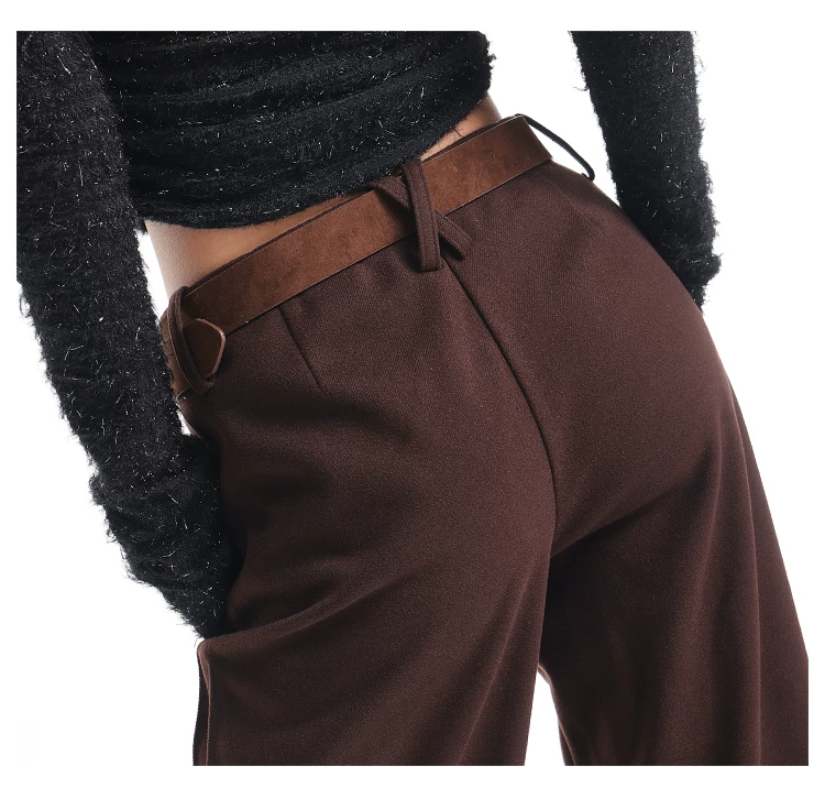 - KEN STUDIO Quần âu ống loe màu cà phê thu đông mới dành cho nữ, chất liệu len dày, ôm dáng, quần ống rộng.