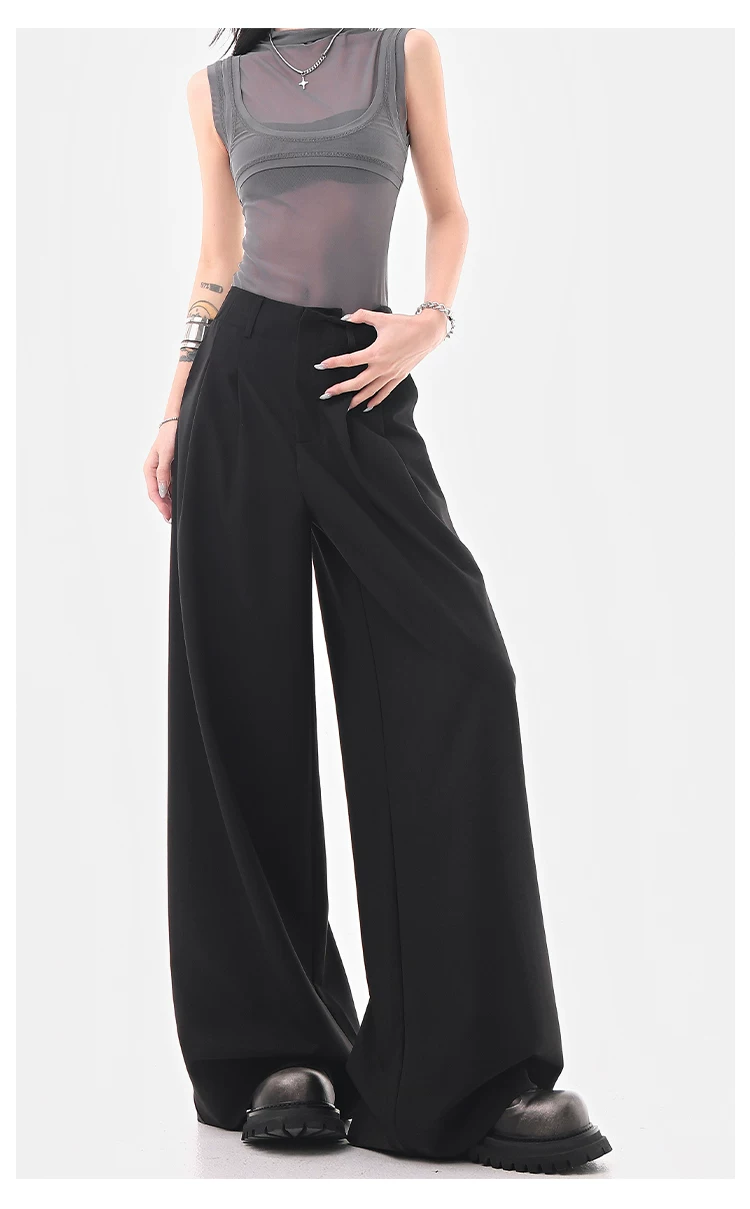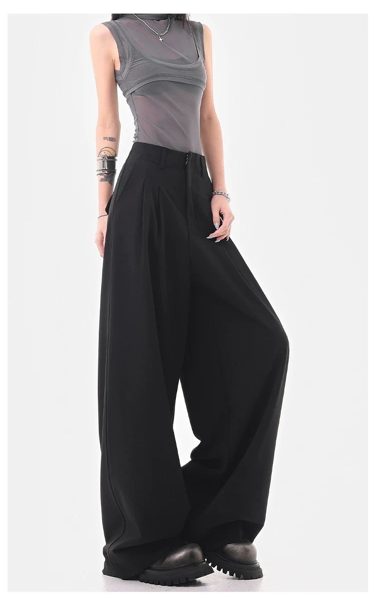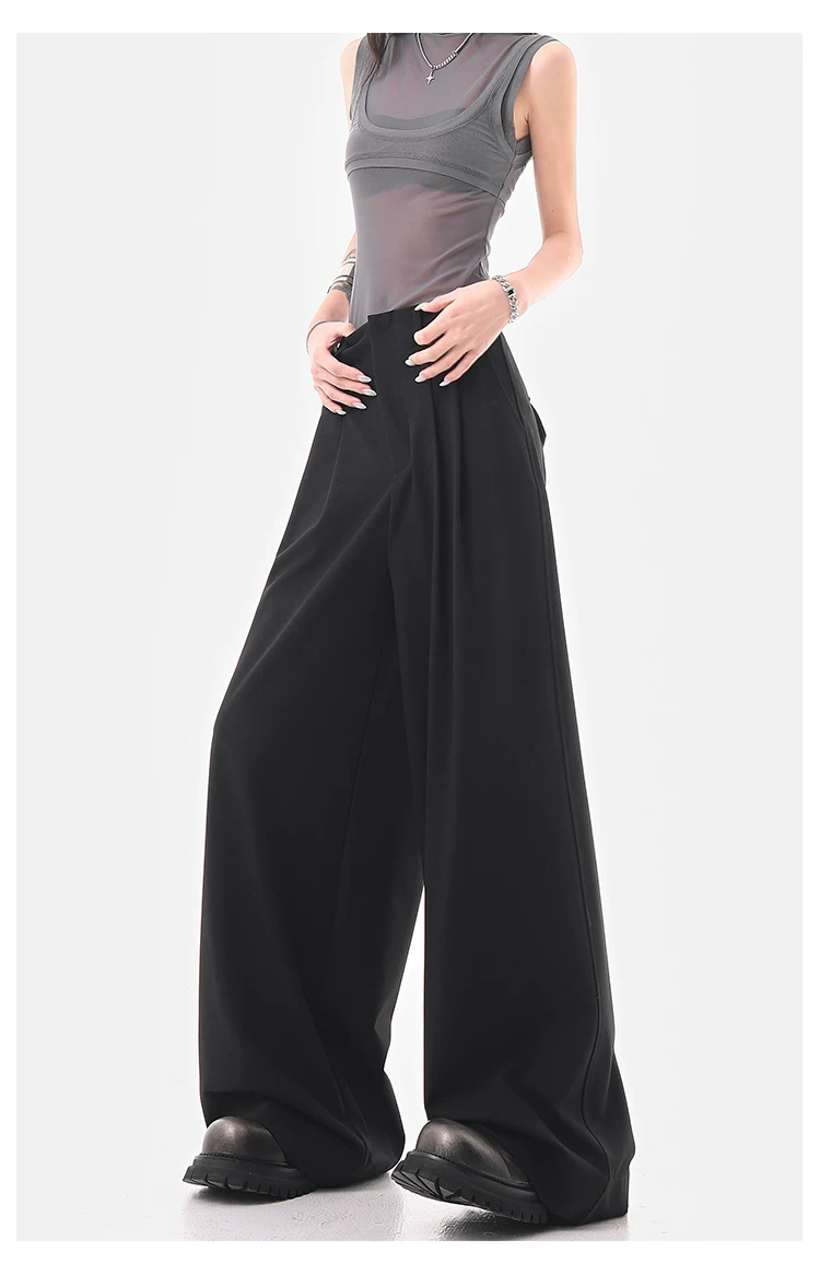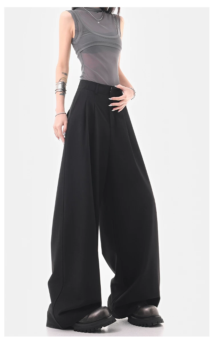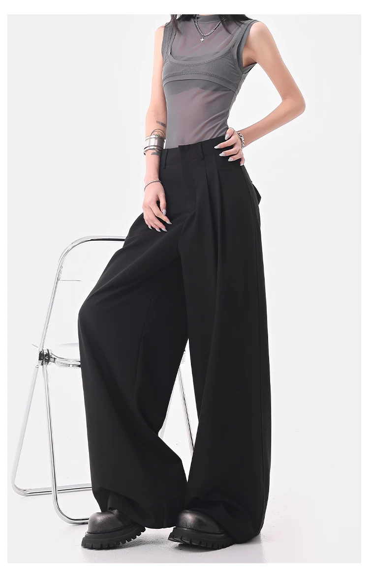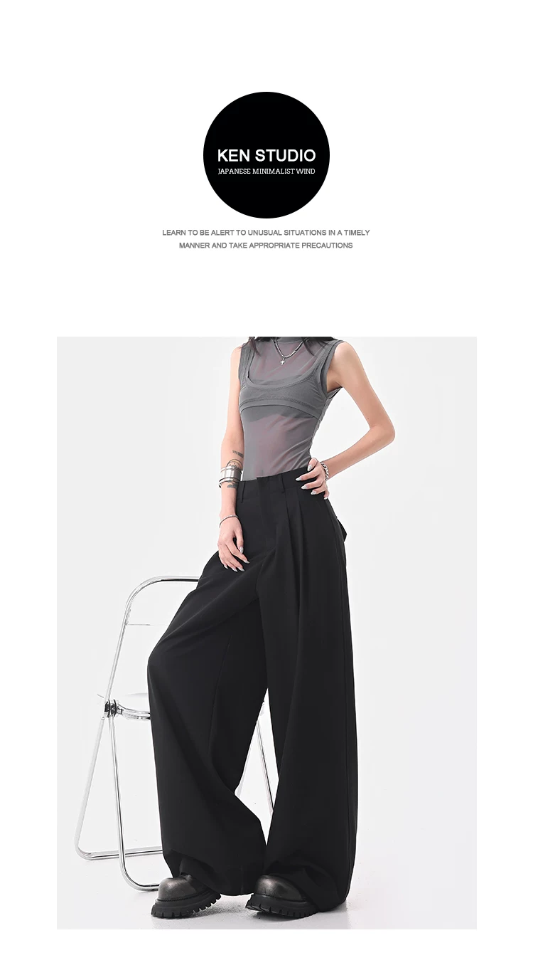 KEN STUDIO Quần âu ống rộng đa năng mùa hè mới dành cho nữ, quần dài xếp ly dáng rộng, quần dài dáng rộng, quần âu