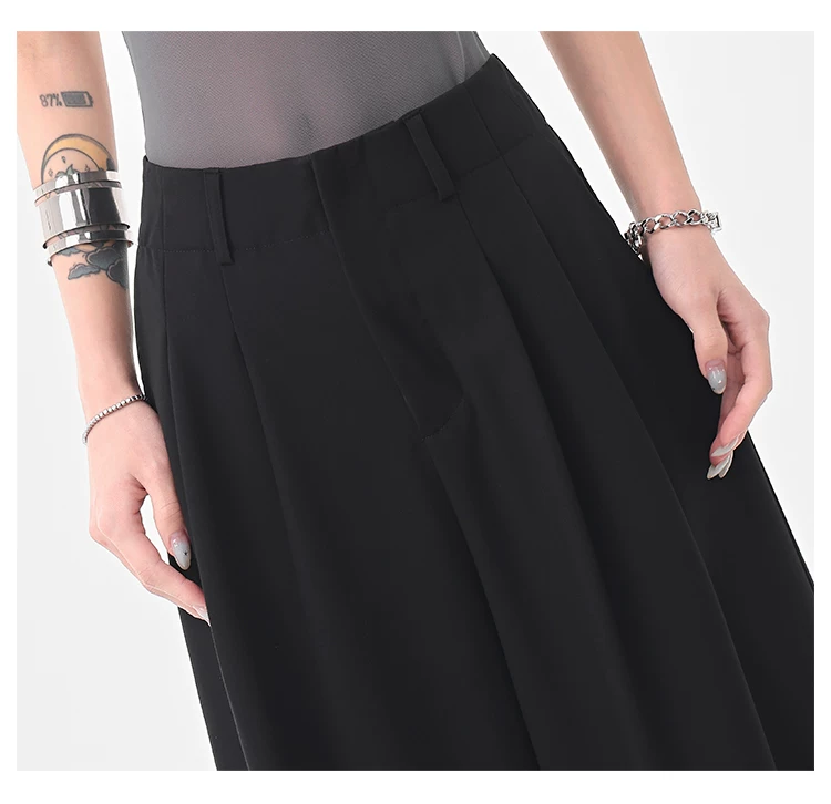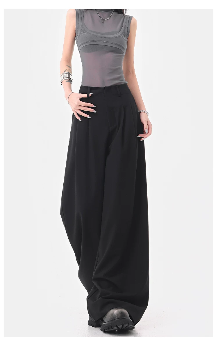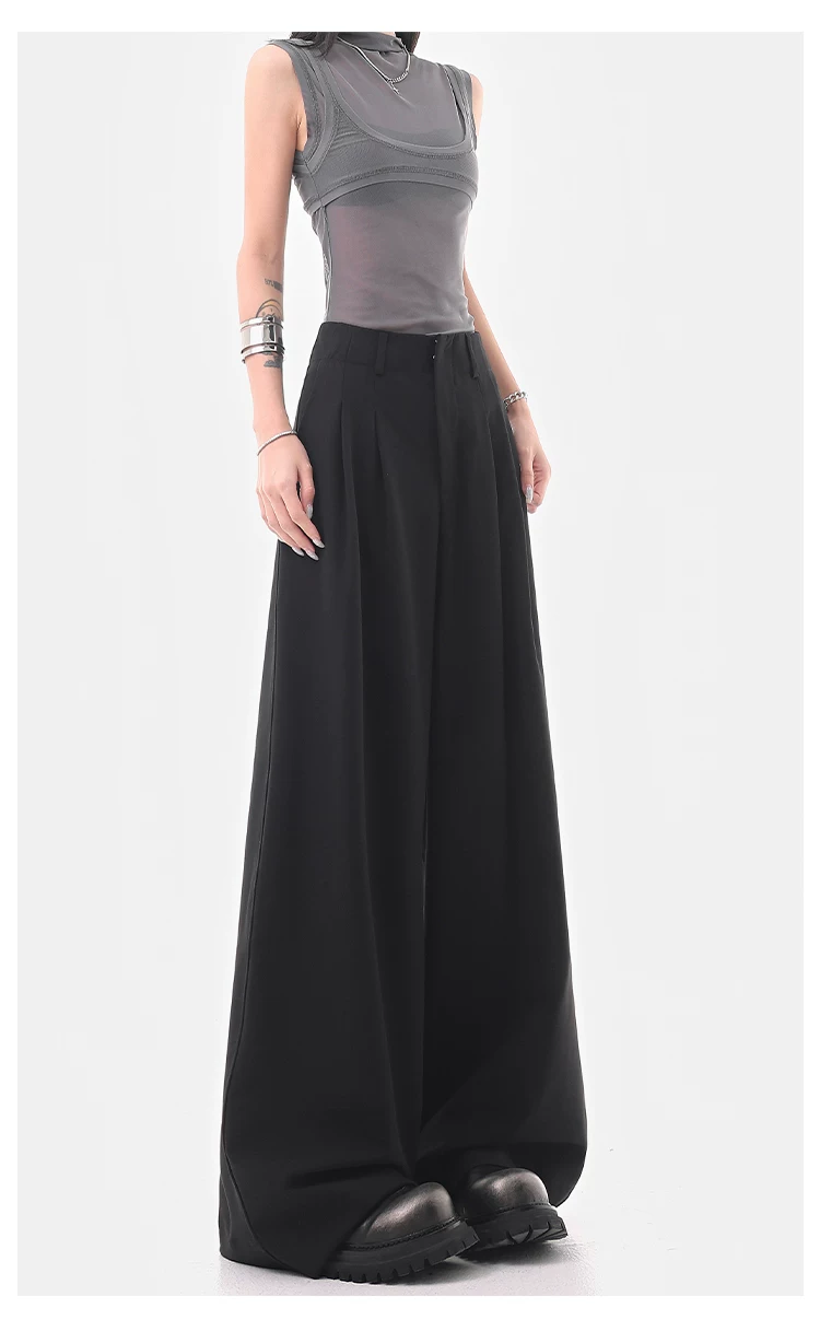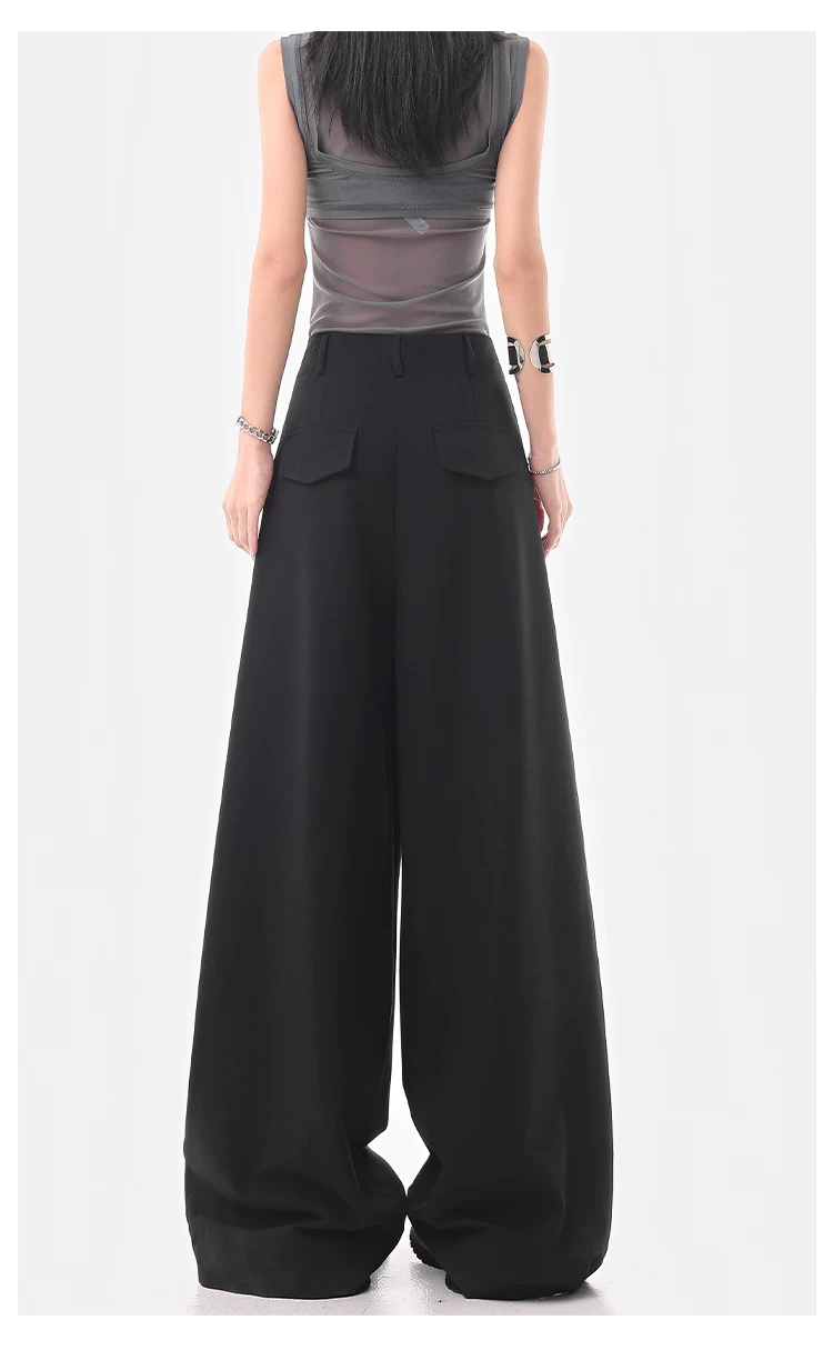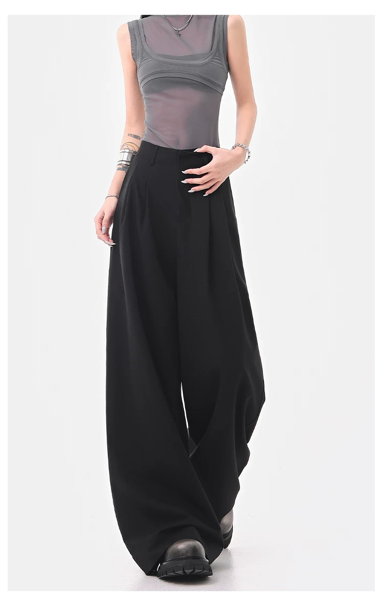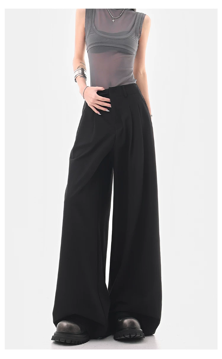 KEN STUDIO Quần âu ống rộng đa năng mùa hè mới dành cho nữ, quần dài xếp ly dáng rộng, quần dài dáng rộng, quần âu