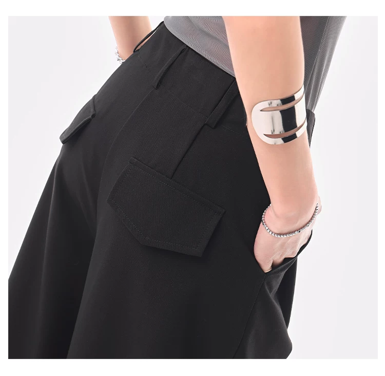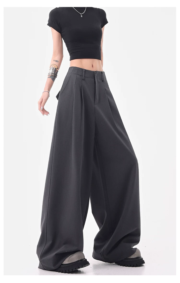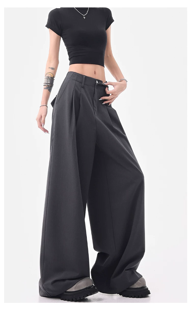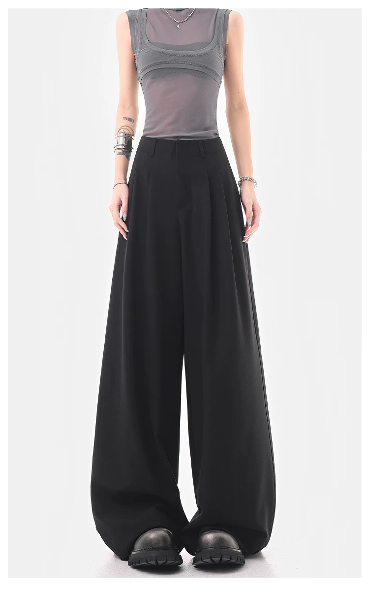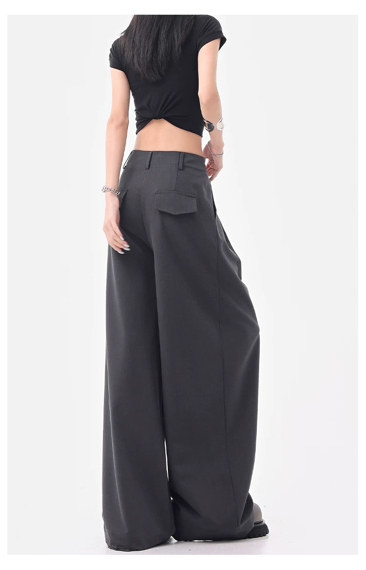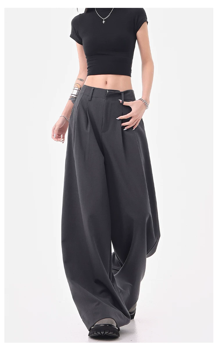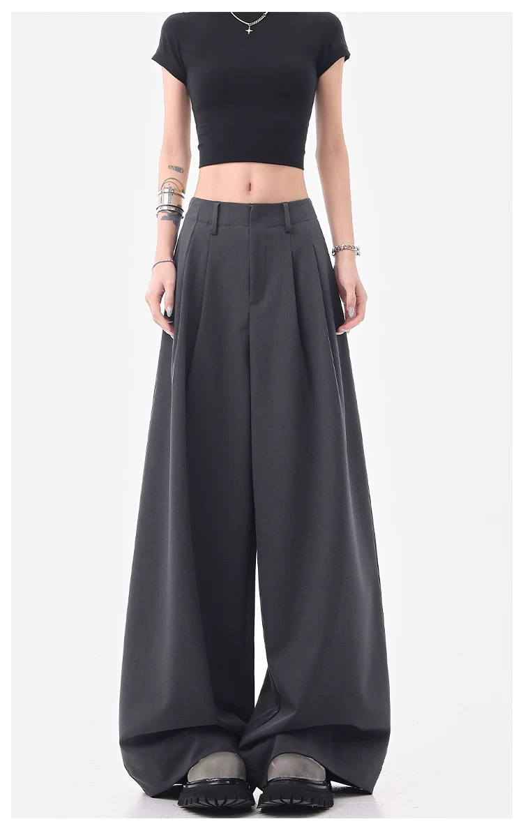 - KEN STUDIO Quần âu ống rộng đa năng mùa hè mới dành cho nữ, quần dài xếp ly dáng rộng, quần dài dáng rộng, quần âu