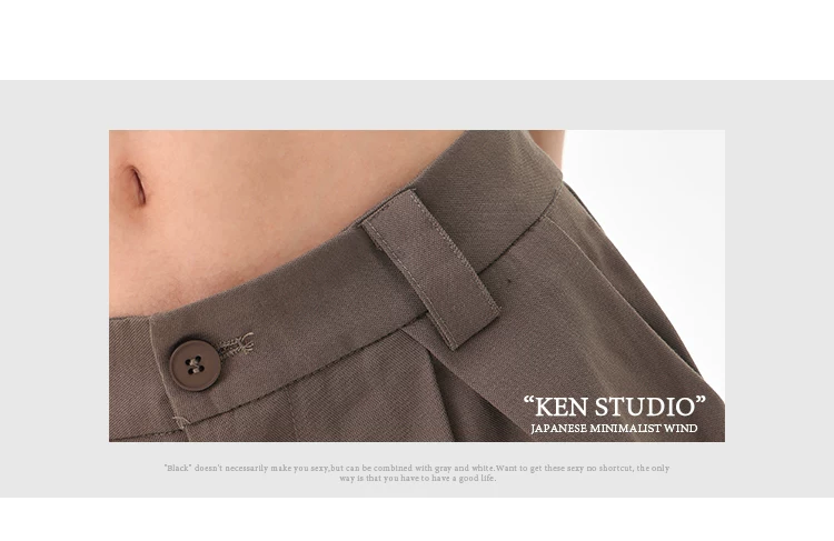 KEN STUDIO Quần âu ống rộng màu cà phê Melard dành cho nữ, phong cách mùa hè mới, quần xếp ly dáng rộng và xếp ly thông thường