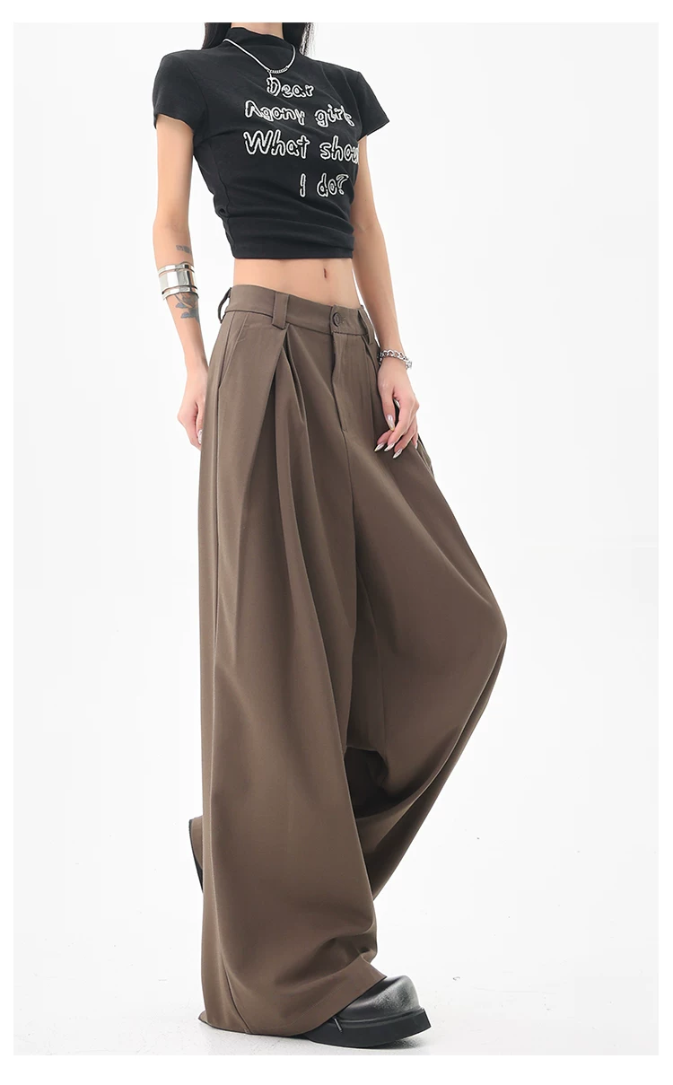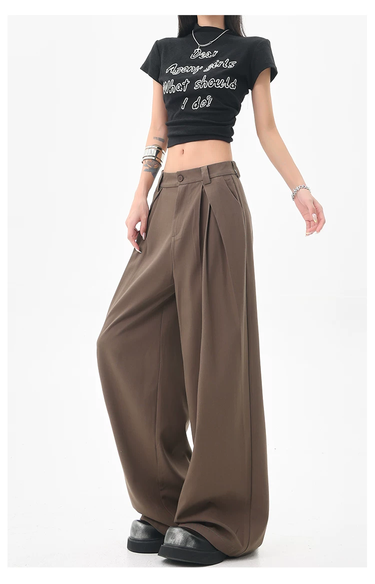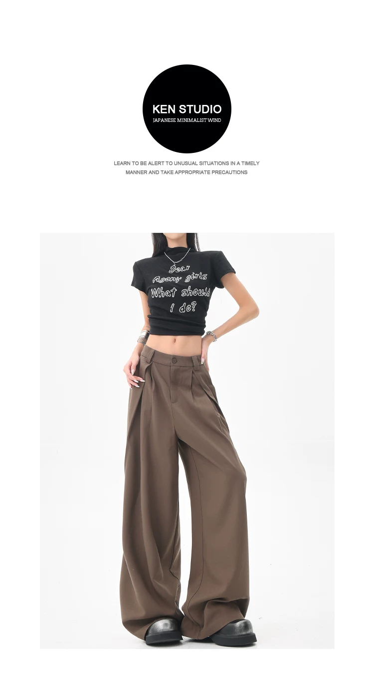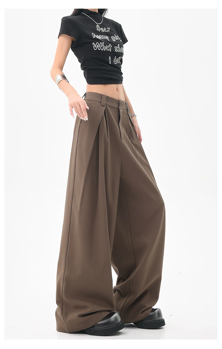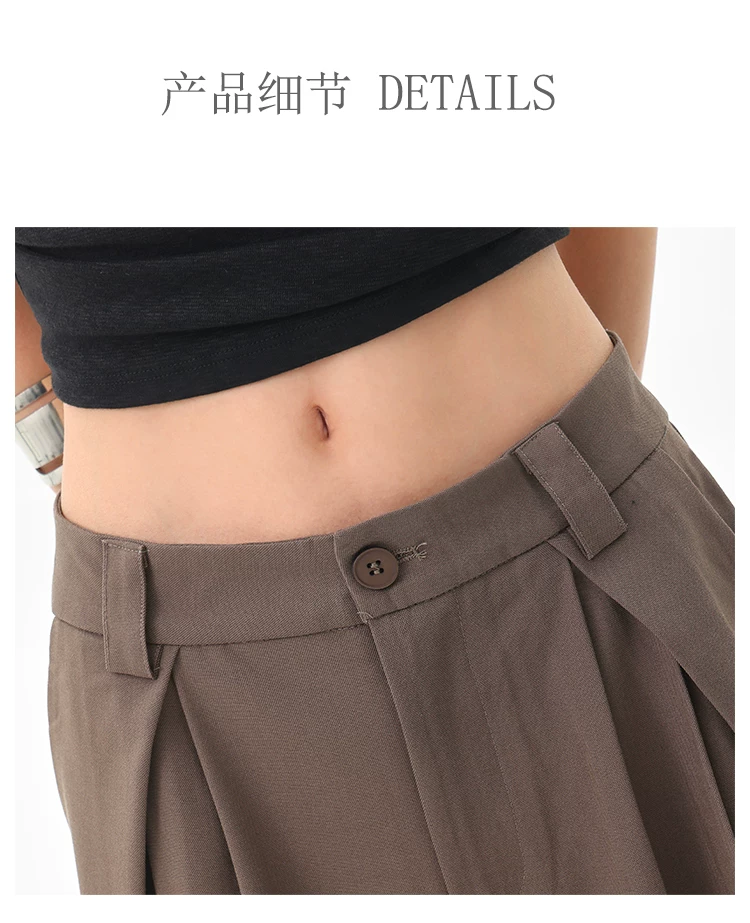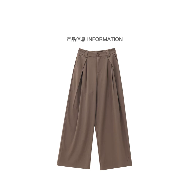 - KEN STUDIO Quần âu ống rộng màu cà phê Melard dành cho nữ, phong cách mùa hè mới, quần xếp ly dáng rộng và xếp ly thông thường