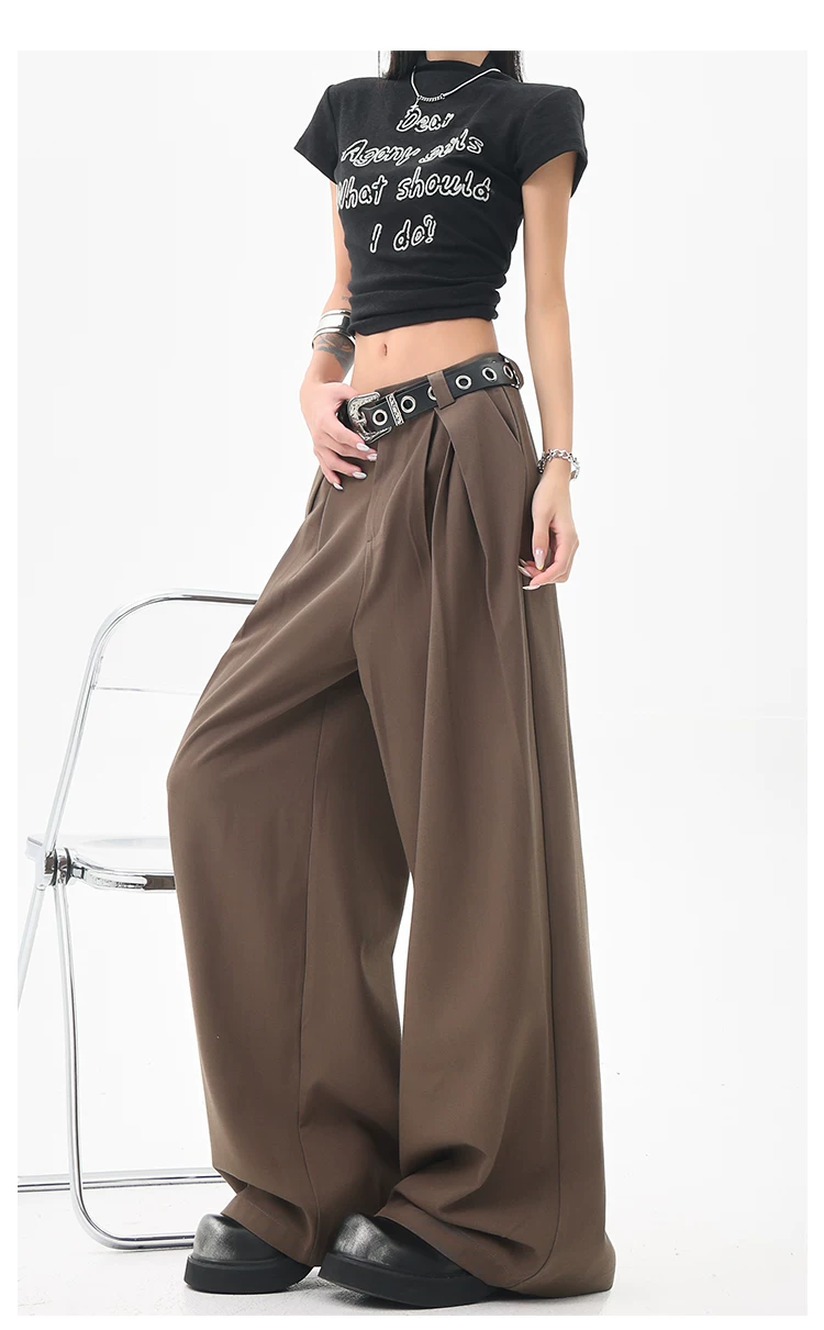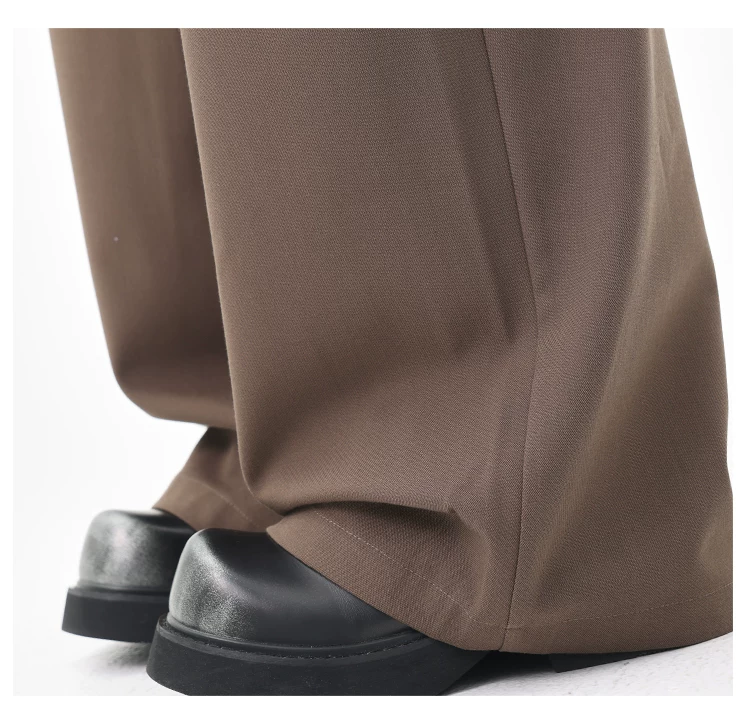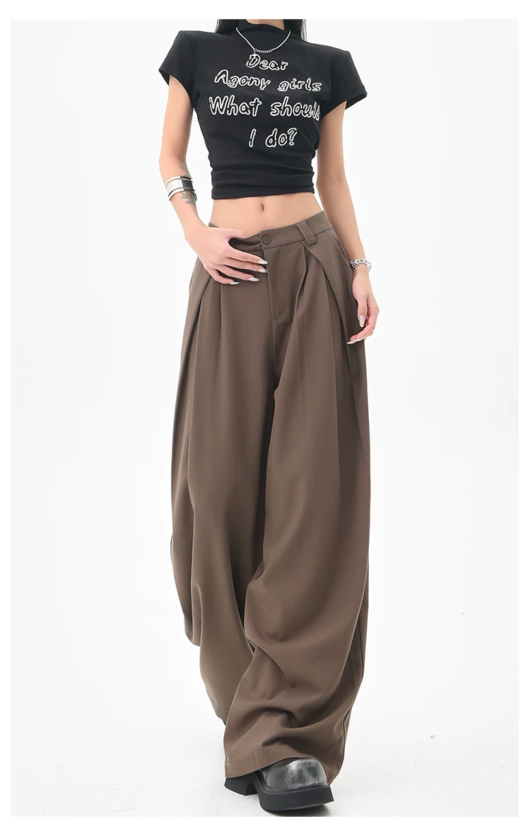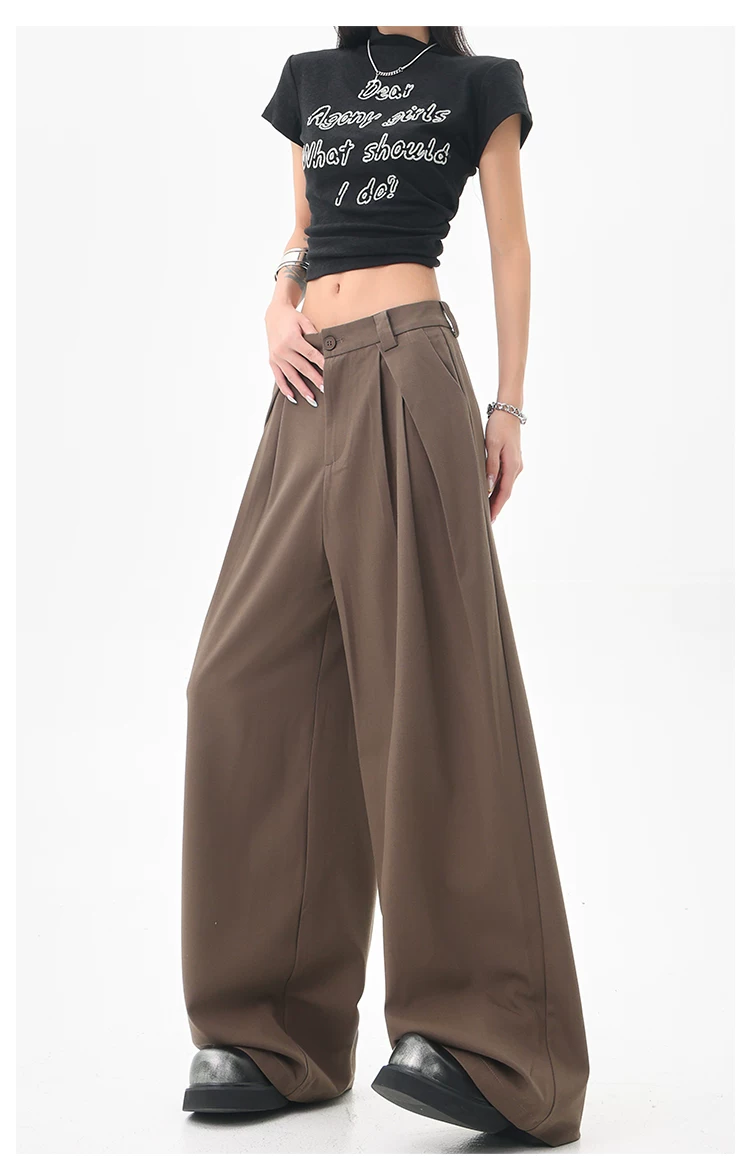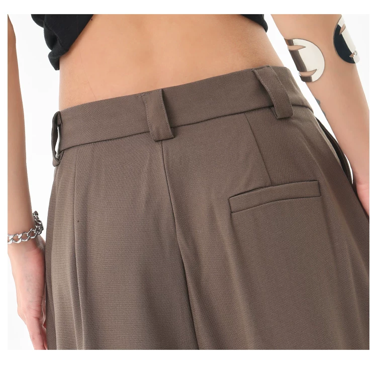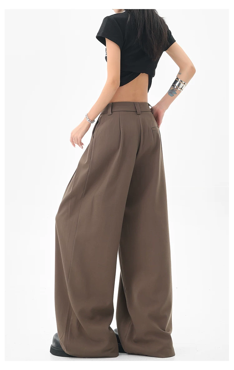 - KEN STUDIO Quần âu ống rộng màu cà phê Melard dành cho nữ, phong cách mùa hè mới, quần xếp ly dáng rộng và xếp ly thông thường