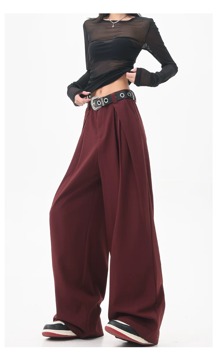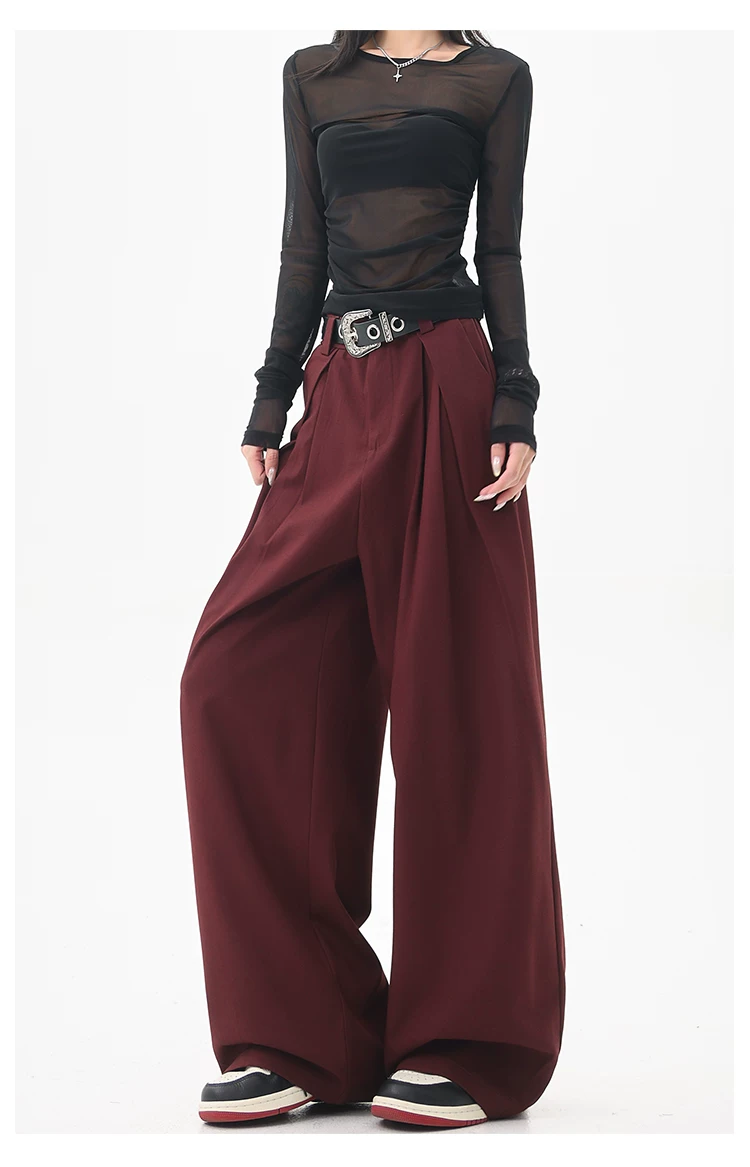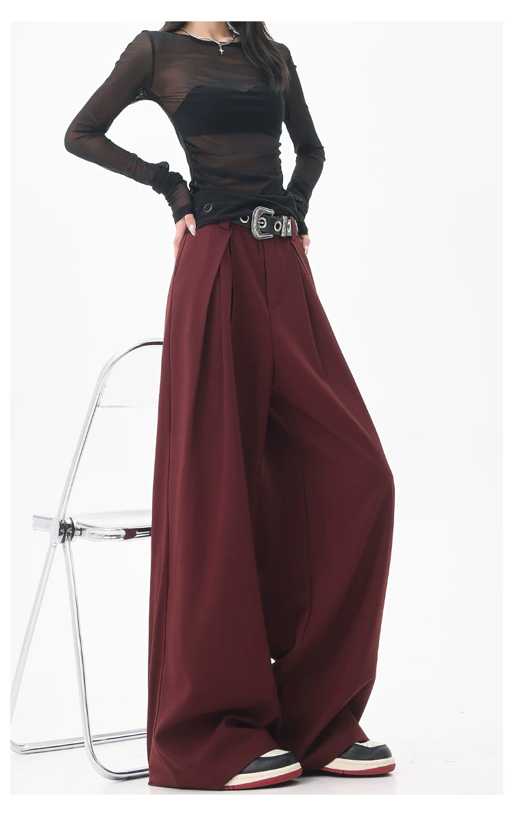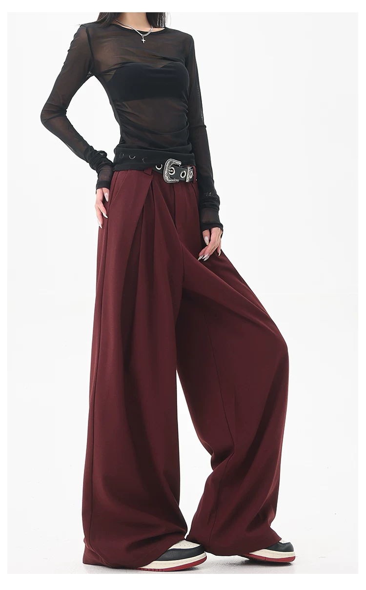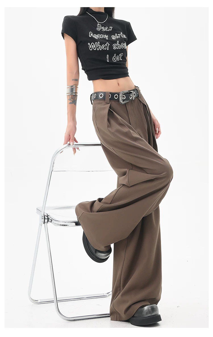 - KEN STUDIO Quần âu ống rộng màu cà phê Melard dành cho nữ, phong cách mùa hè mới, quần xếp ly dáng rộng và xếp ly thông thường