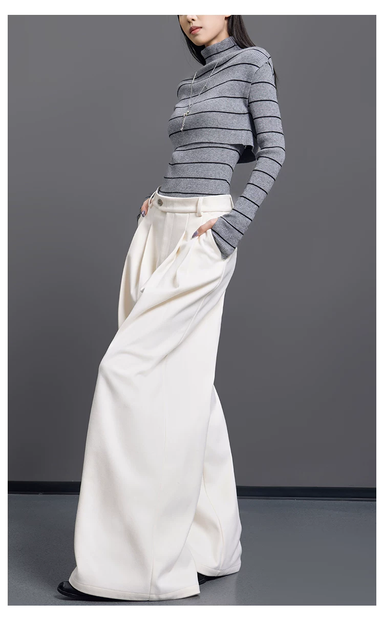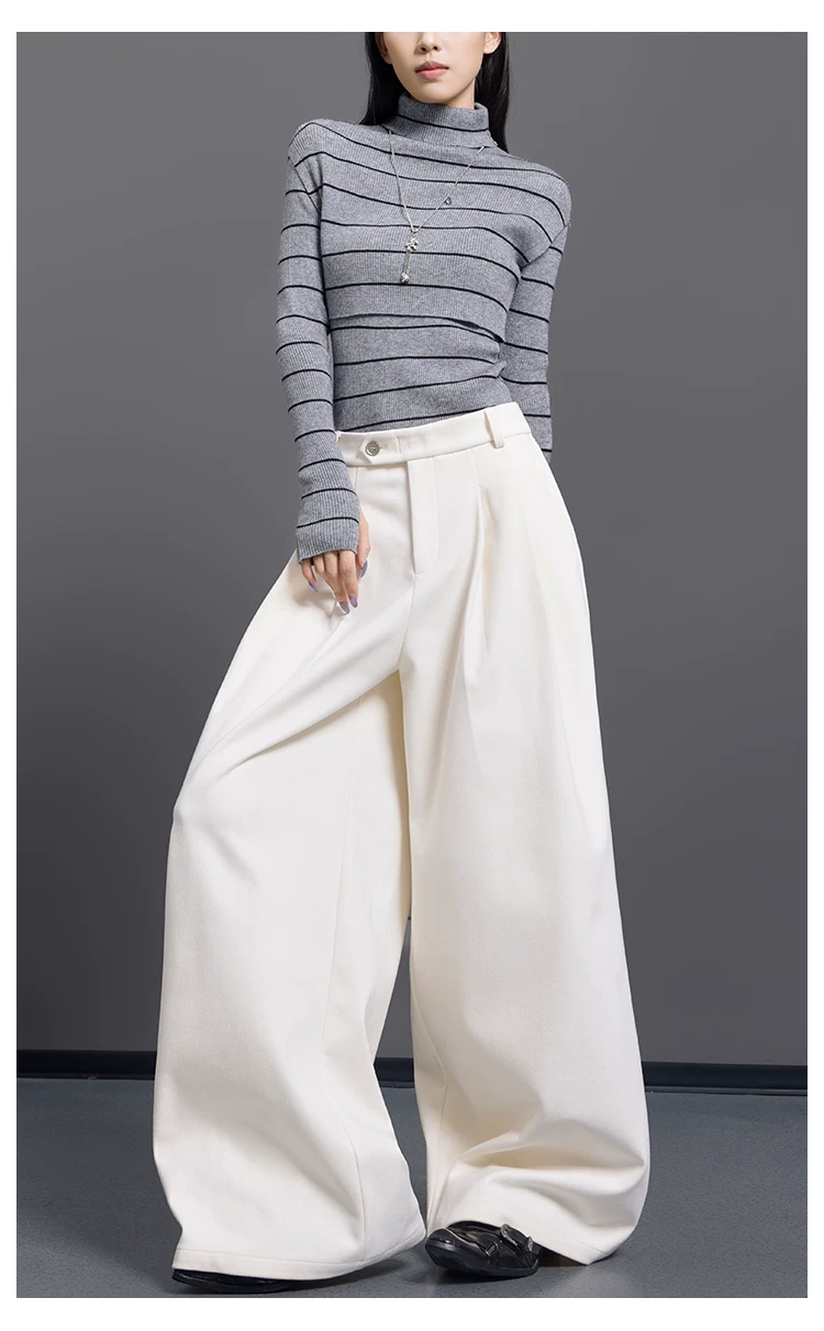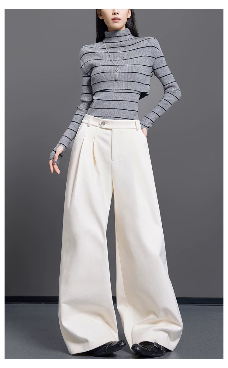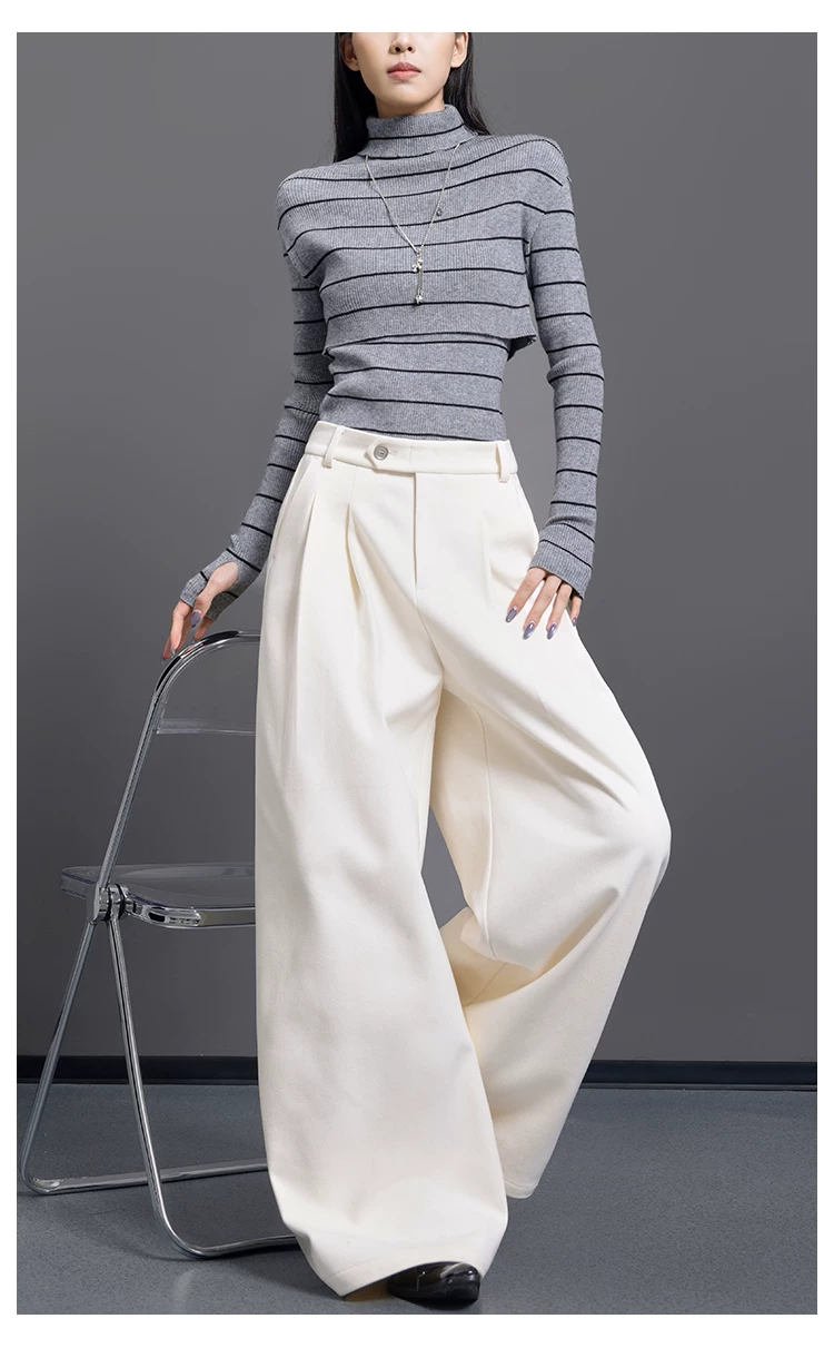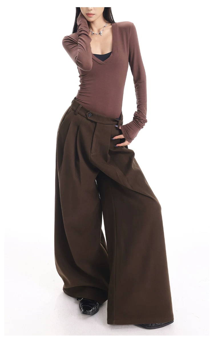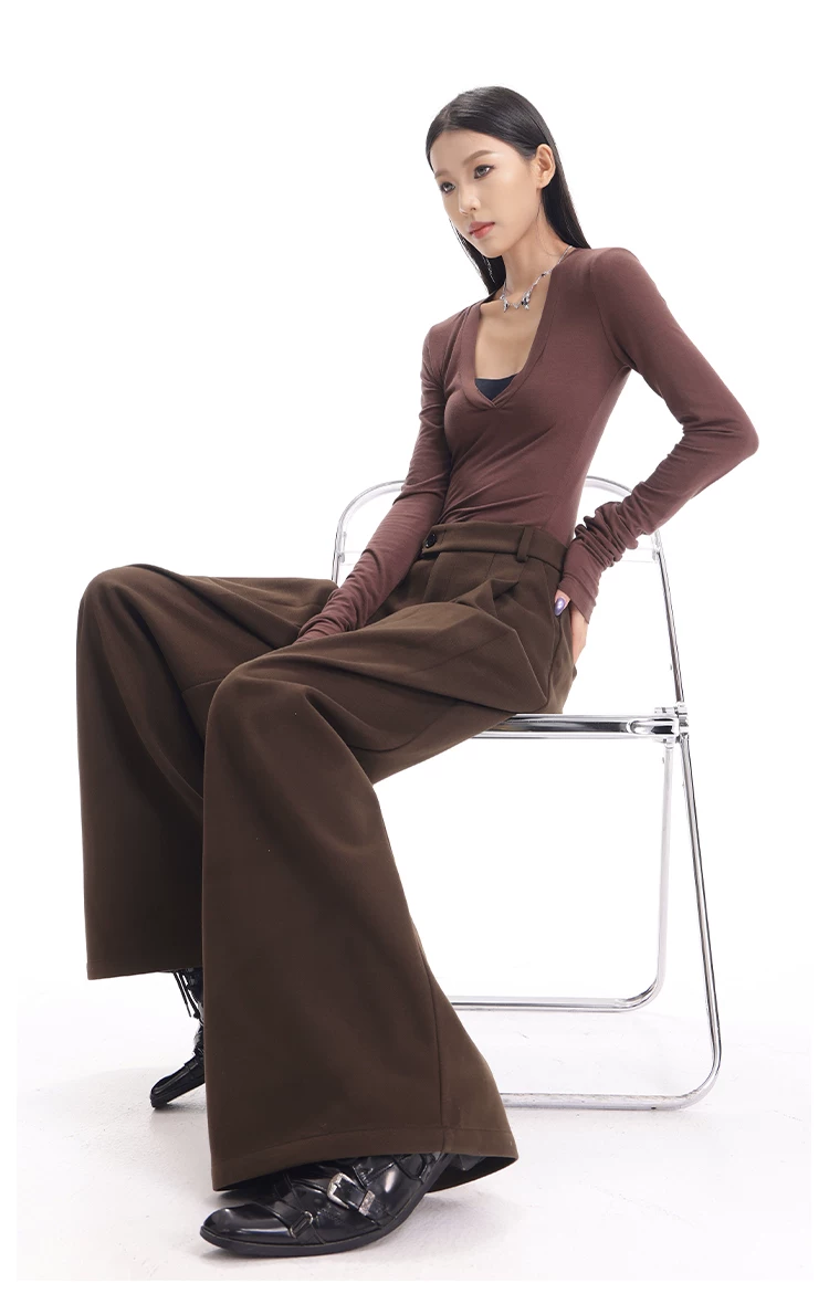 - KEN STUDIO Quần âu ống rộng màu cà phê mới dành cho nữ mùa thu đông, chất liệu len dày, xếp ly, quần dài đa năng.