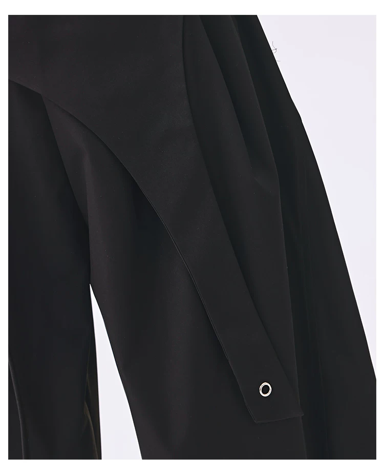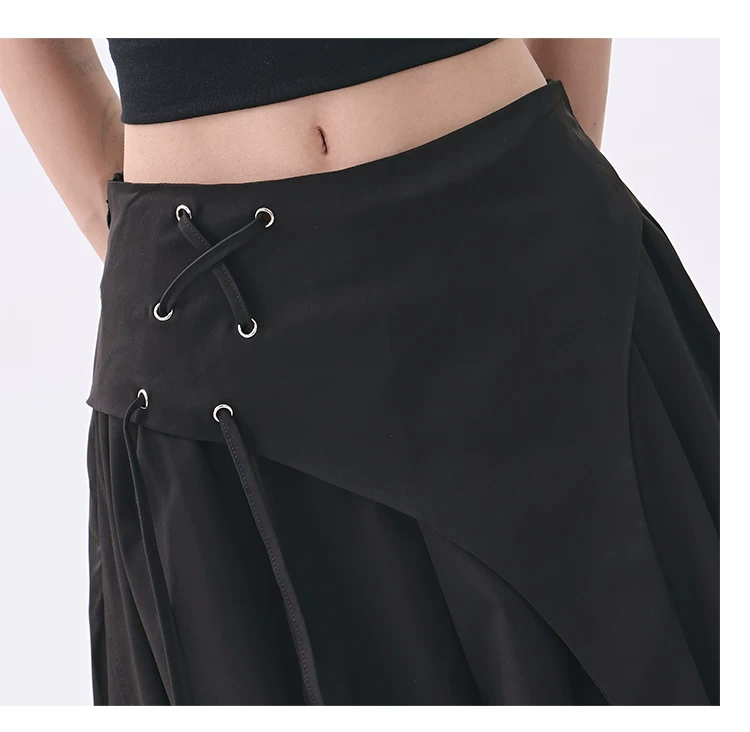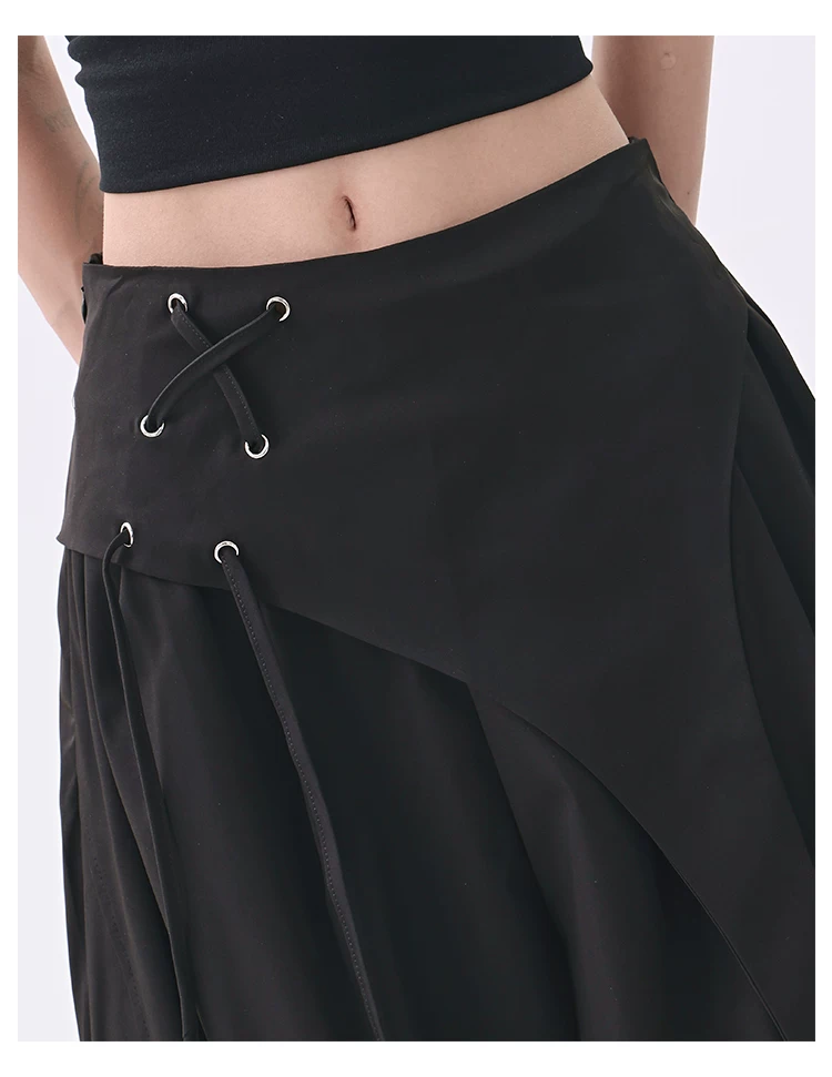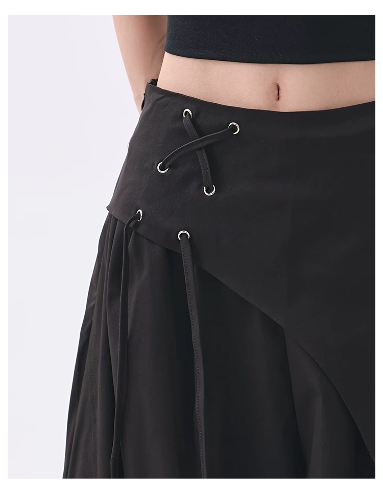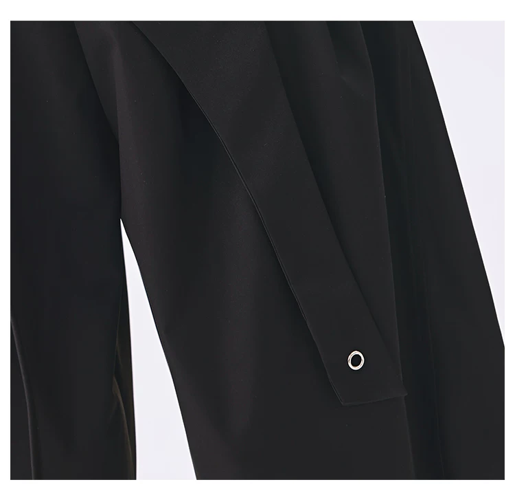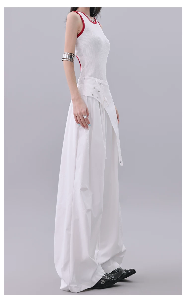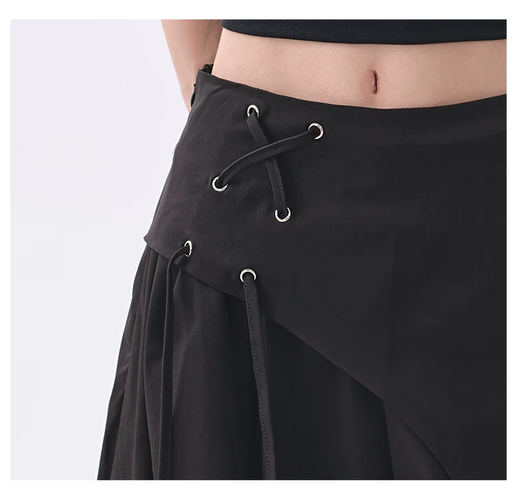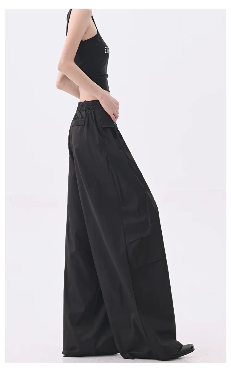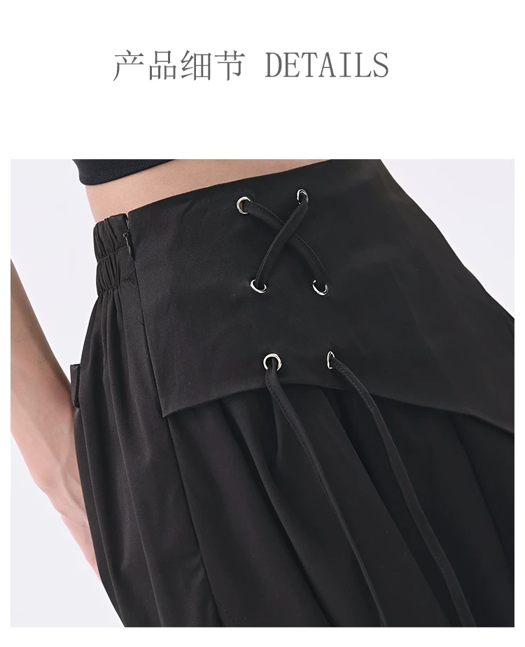 - KEN STUDIO quần âu thiết kế dây ruy băng màu đen dành cho nữ, quần ống rộng lưng cao đa năng mùa hè