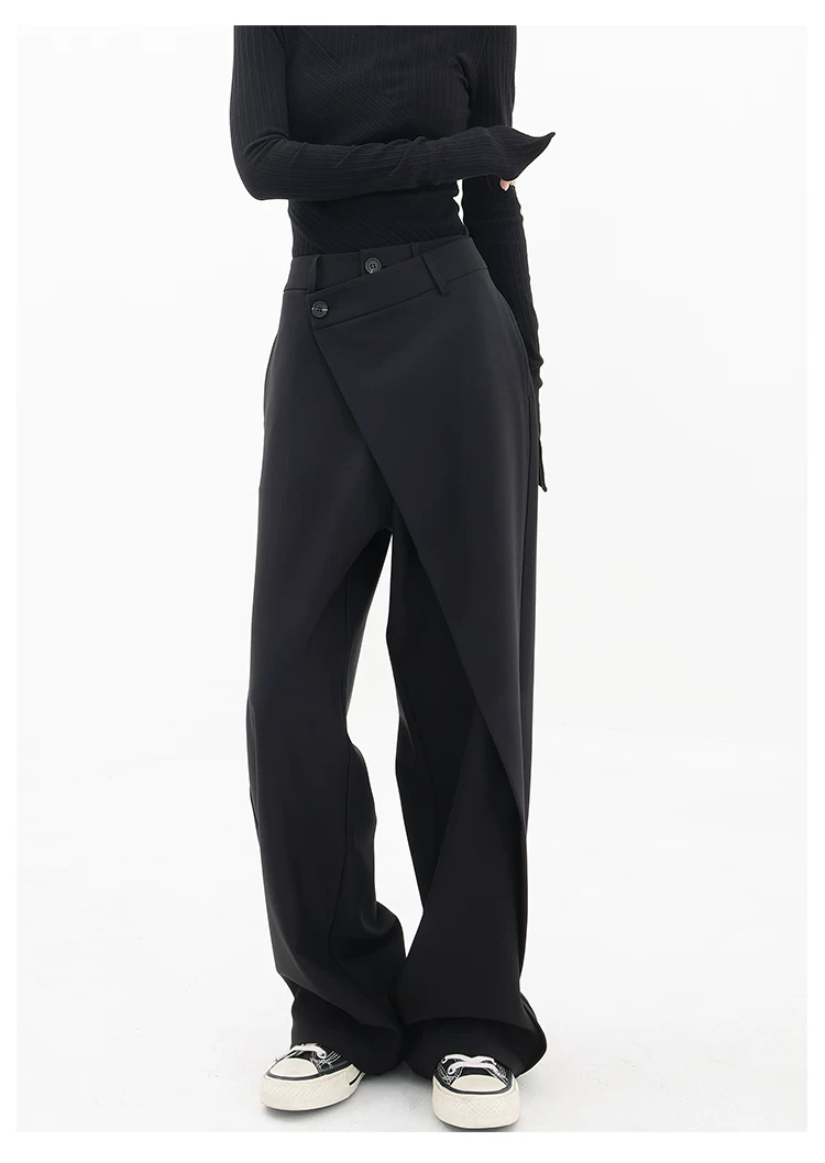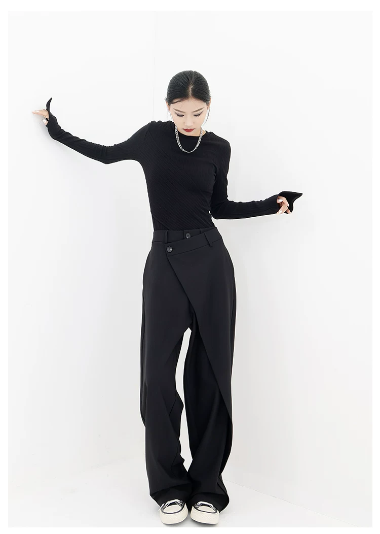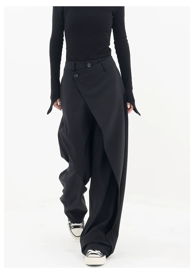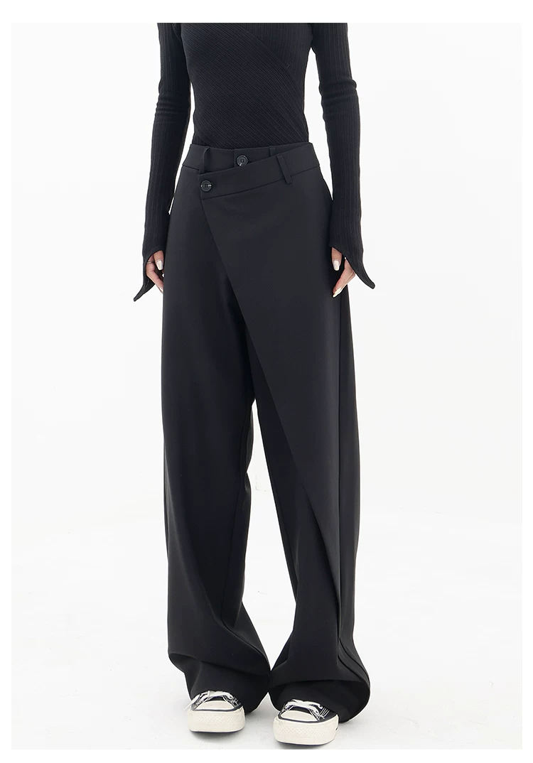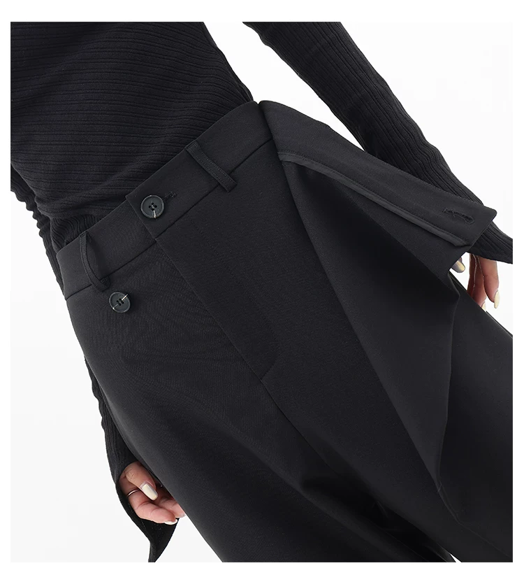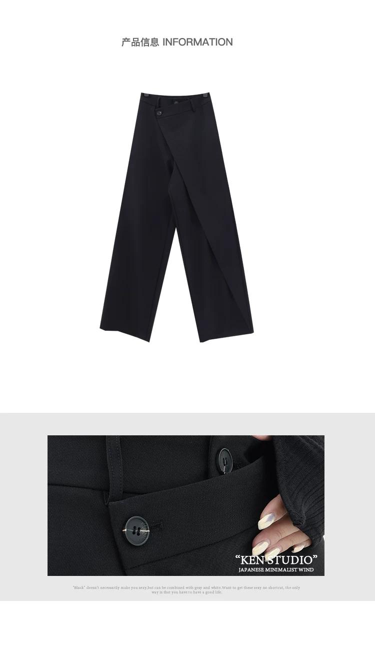 - KEN STUDIO Quần âu thiết kế mới mùa xuân thu dành cho nữ, quần ống rộng dài đến sàn, dáng rộng và xếp nếp.