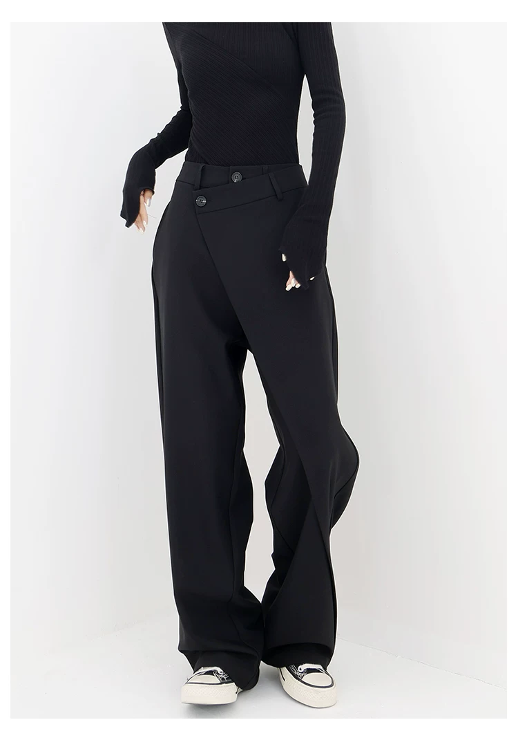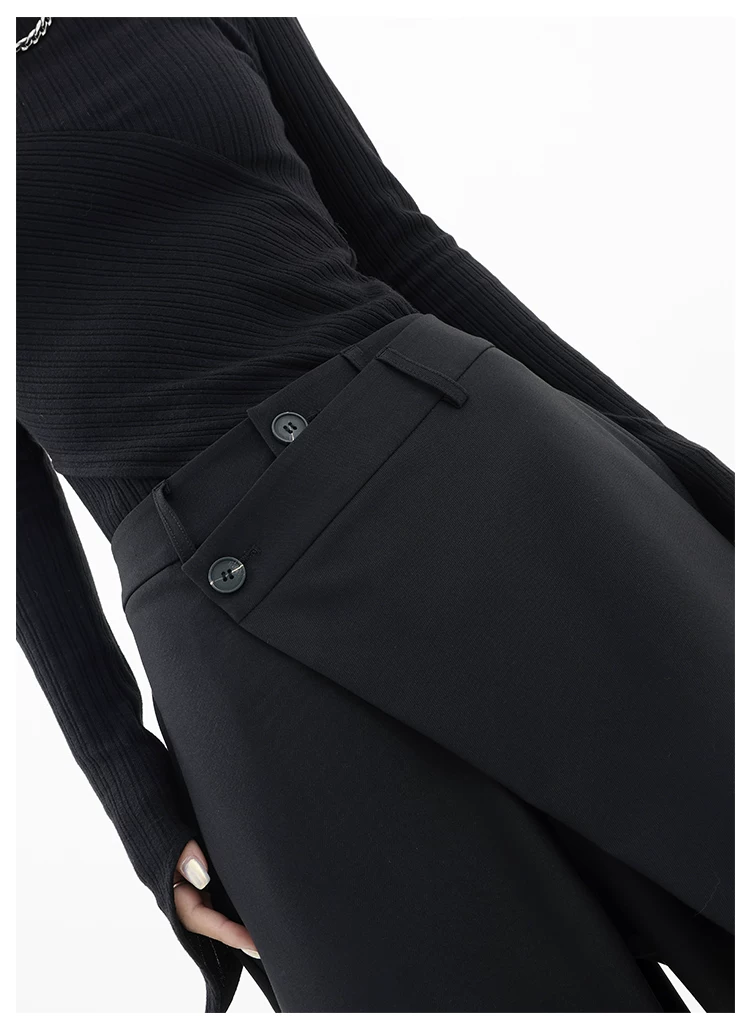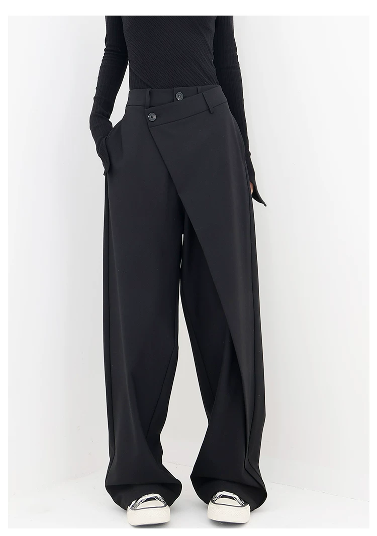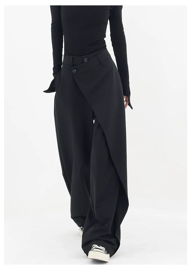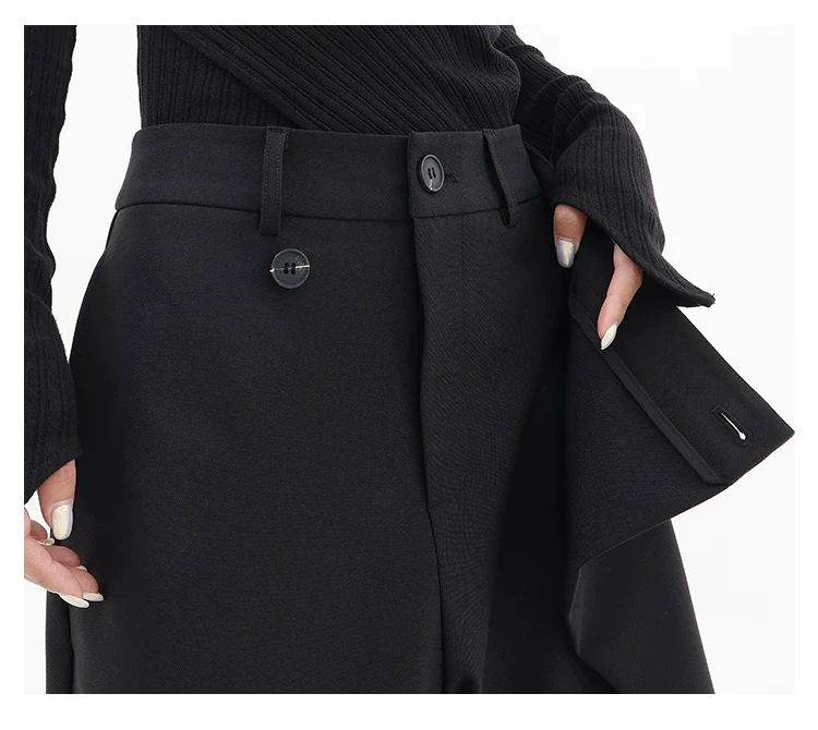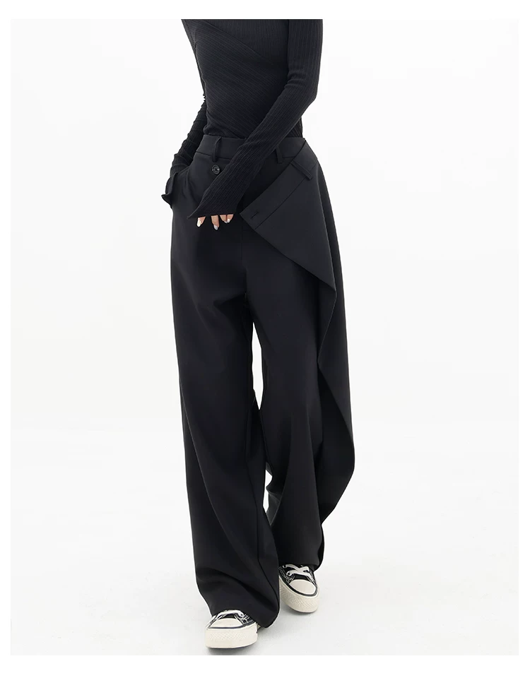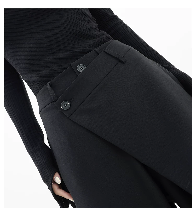 - KEN STUDIO Quần âu thiết kế mới mùa xuân thu dành cho nữ, quần ống rộng dài đến sàn, dáng rộng và xếp nếp.