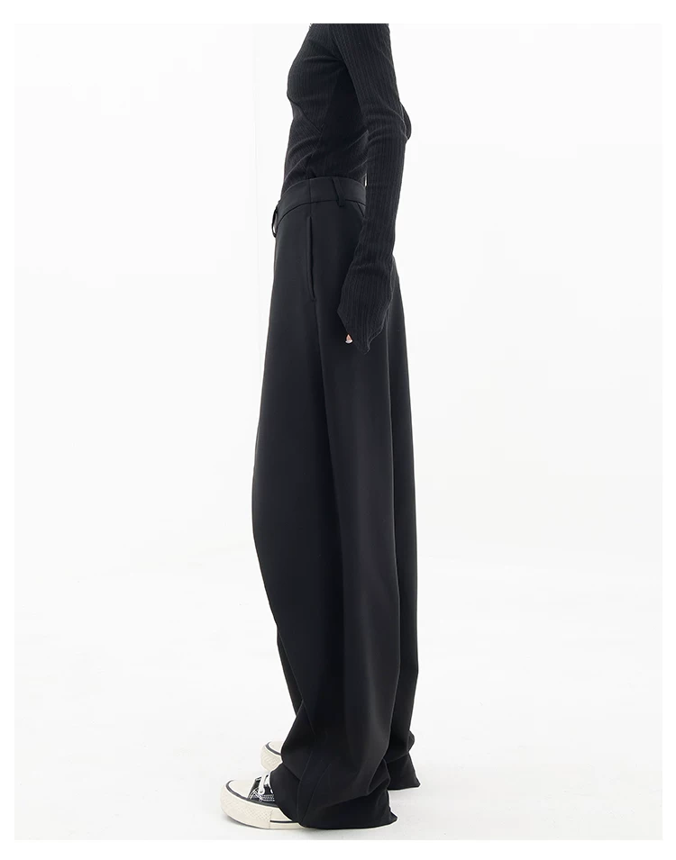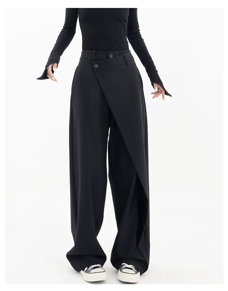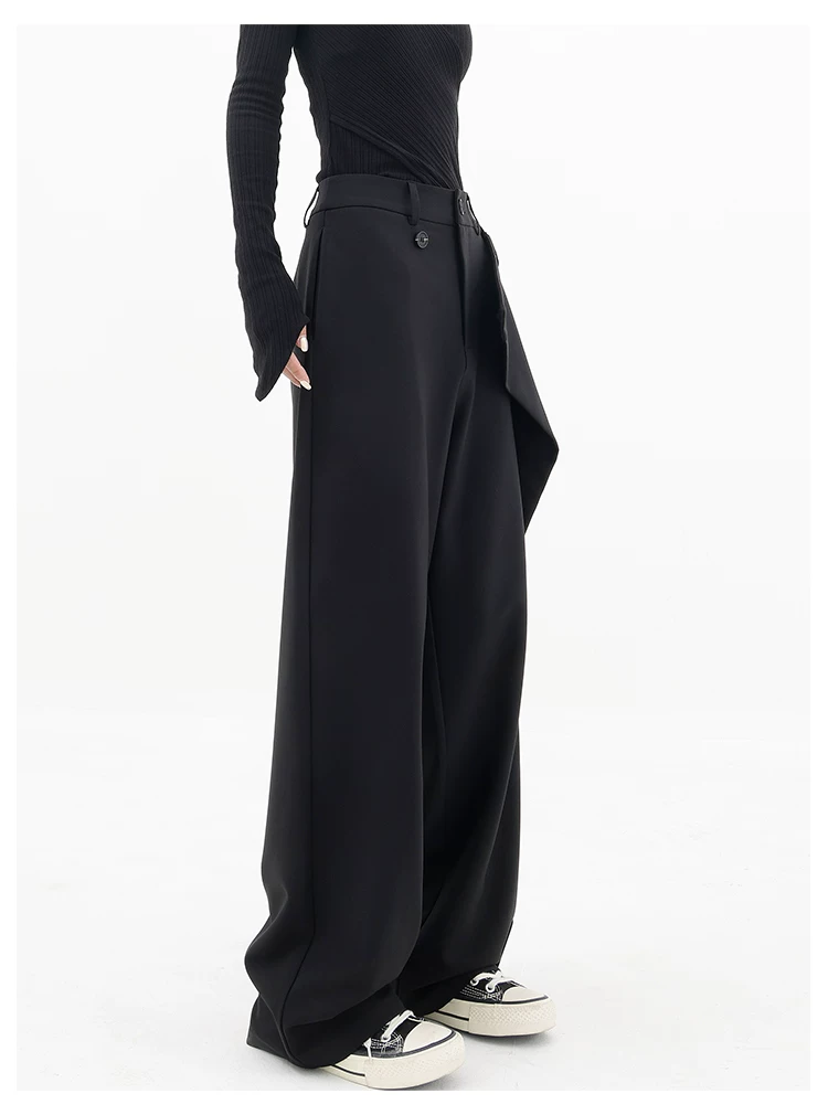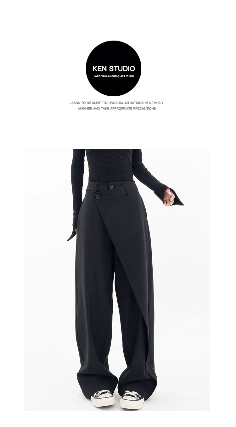 KEN STUDIO Quần âu thiết kế mới mùa xuân thu dành cho nữ, quần ống rộng dài đến sàn, dáng rộng và xếp nếp.