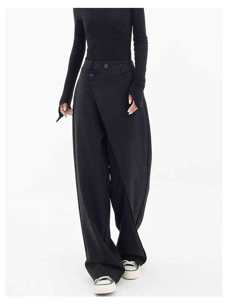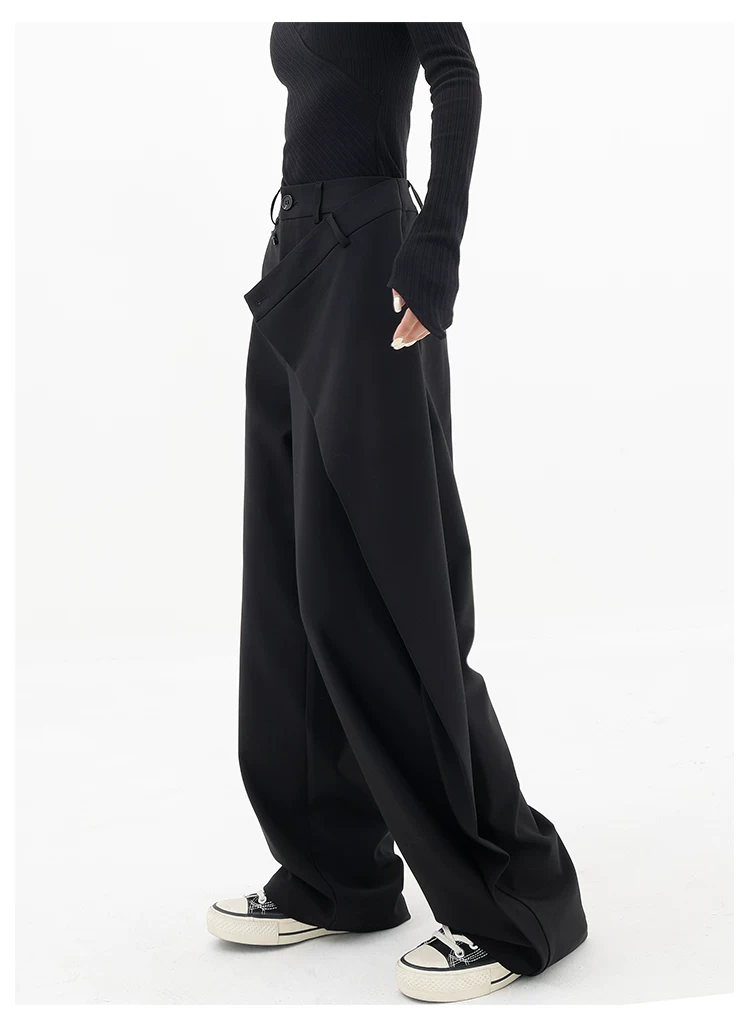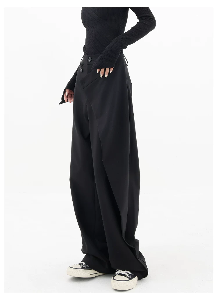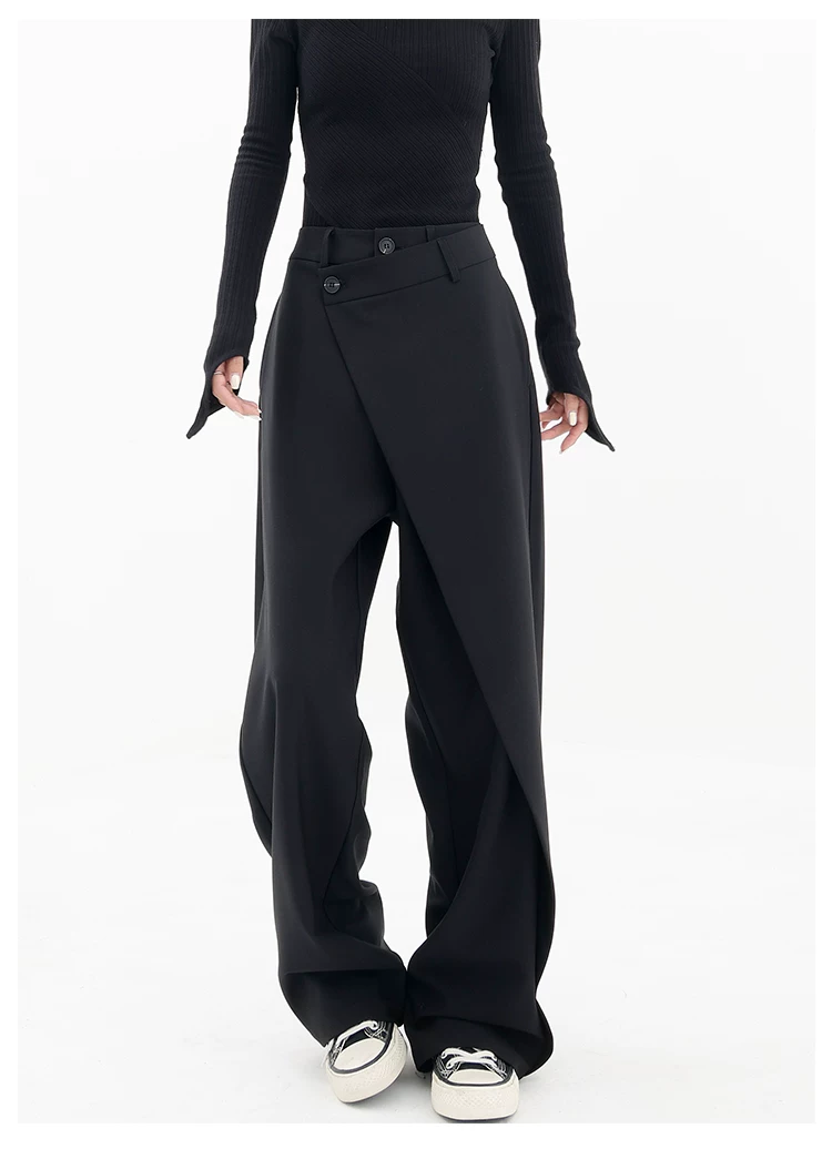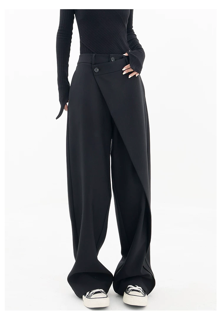 KEN STUDIO Quần âu thiết kế mới mùa xuân thu dành cho nữ, quần ống rộng dài đến sàn, dáng rộng và xếp nếp.