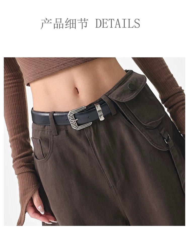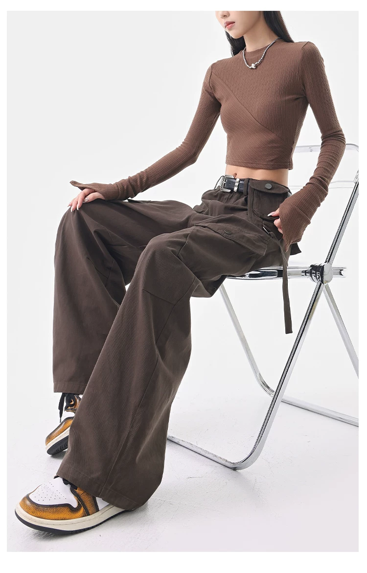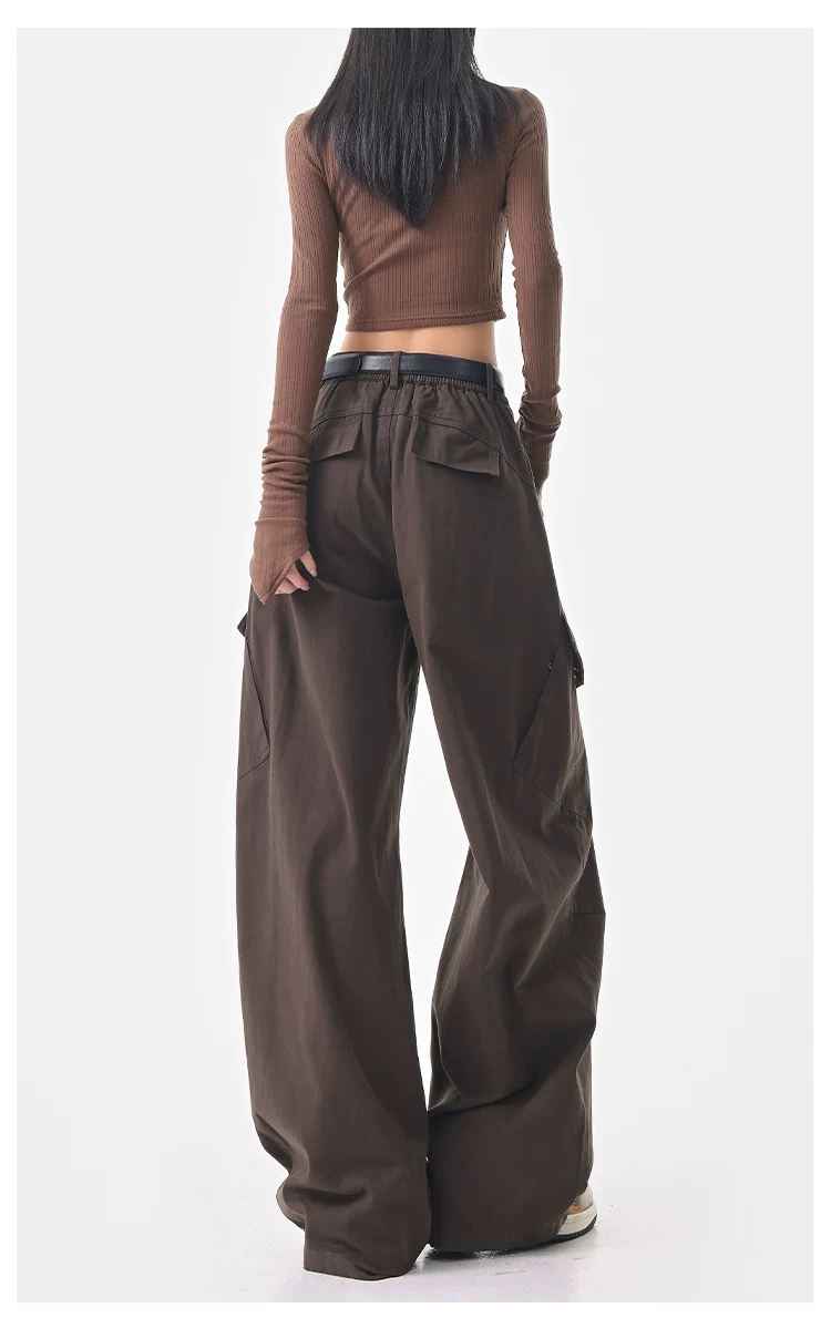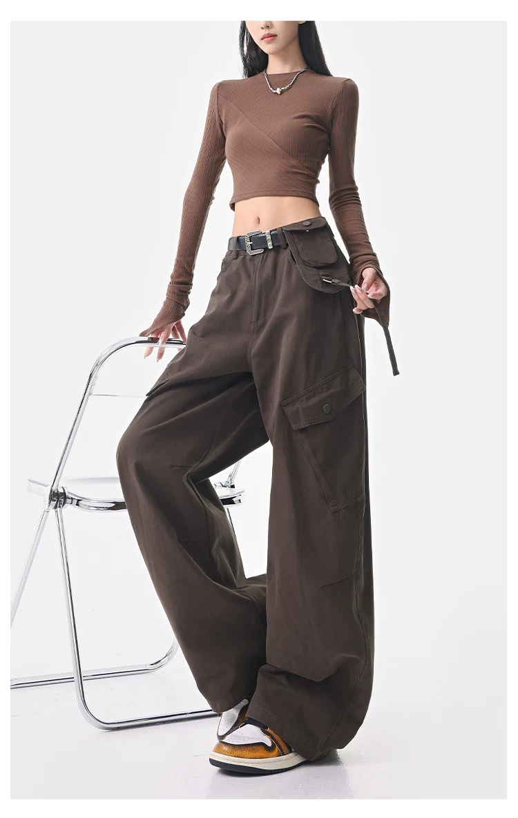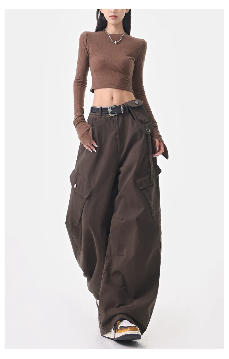 - KEN STUDIO Quần cargo màu xám thu đông mới dành cho nữ với thiết kế túi chéo, quần ống rộng, quần kiểu scimitar