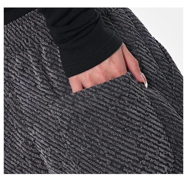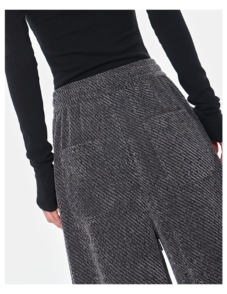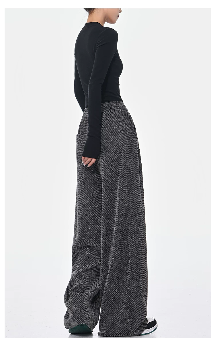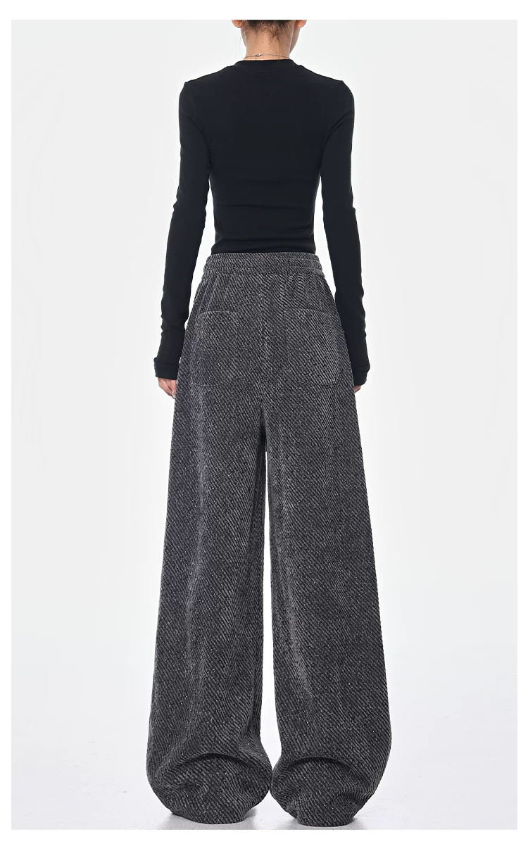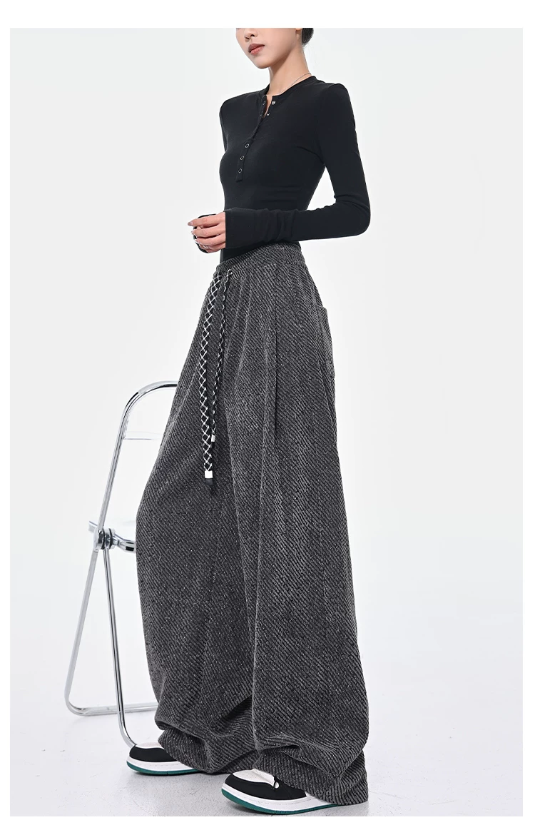 - KEN STUDIO quần dài có dây rút lót lông cừu mùa thu đông màu xám bầu trời đầy sao dành cho nữ, quần ống rộng dáng rộng giảm béo