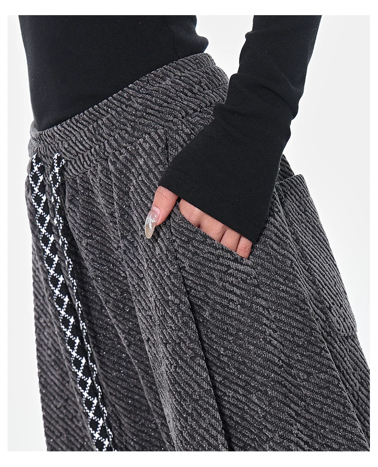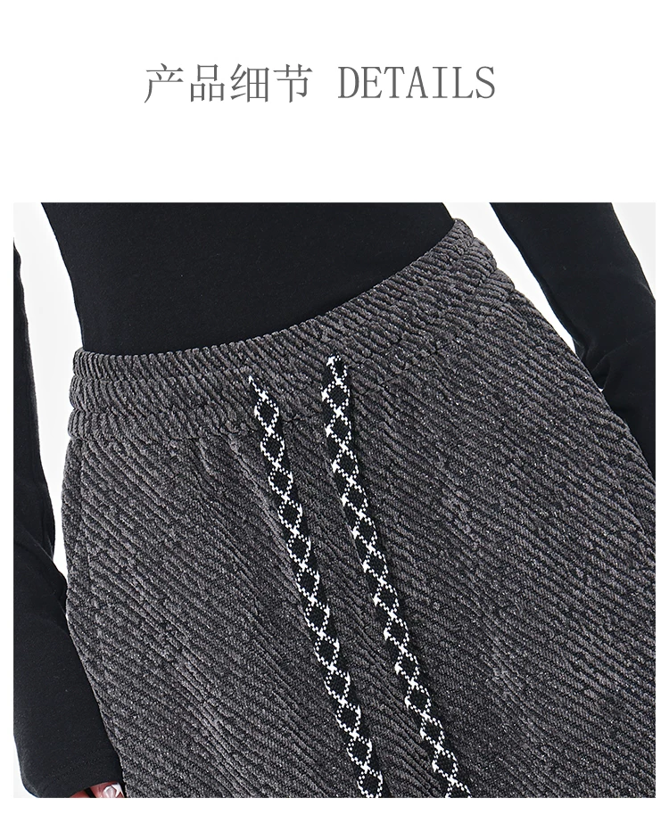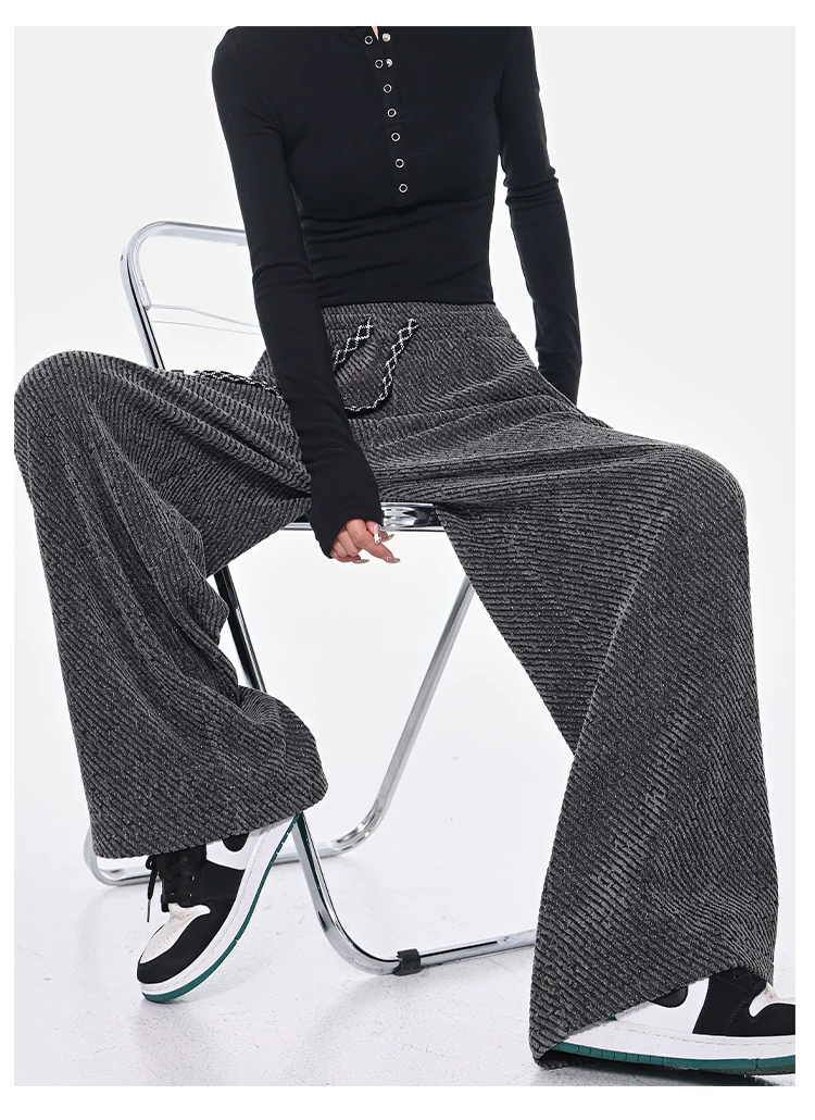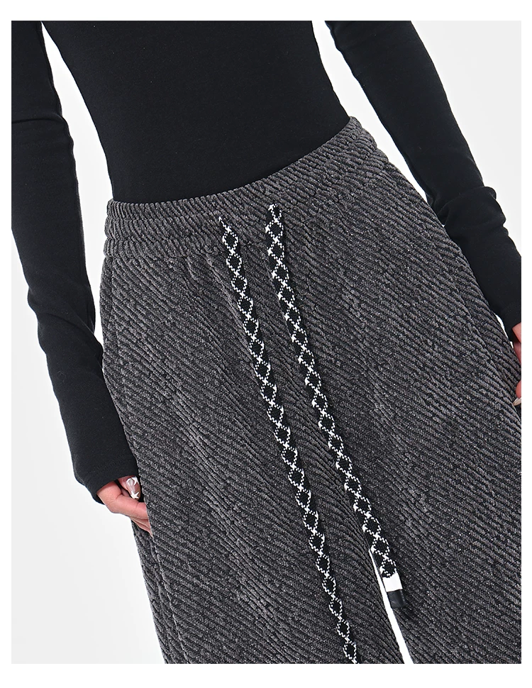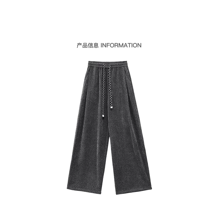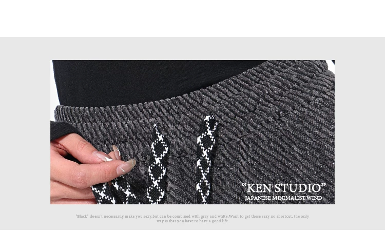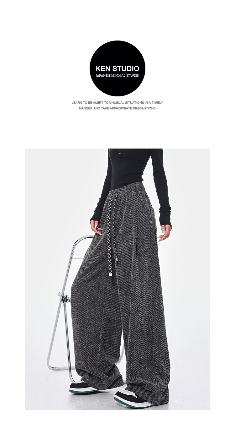 KEN STUDIO quần dài có dây rút lót lông cừu mùa thu đông màu xám bầu trời đầy sao dành cho nữ, quần ống rộng dáng rộng giảm béo