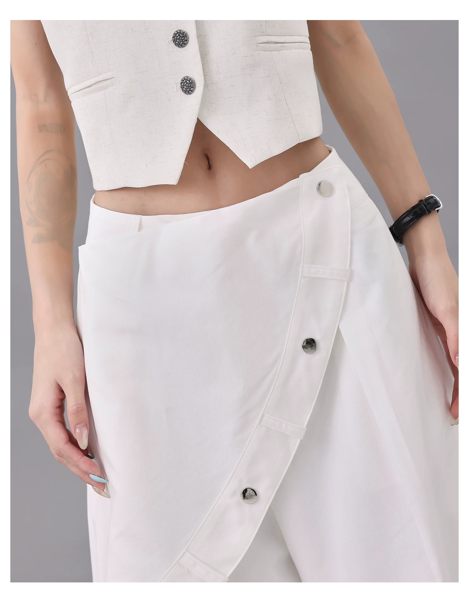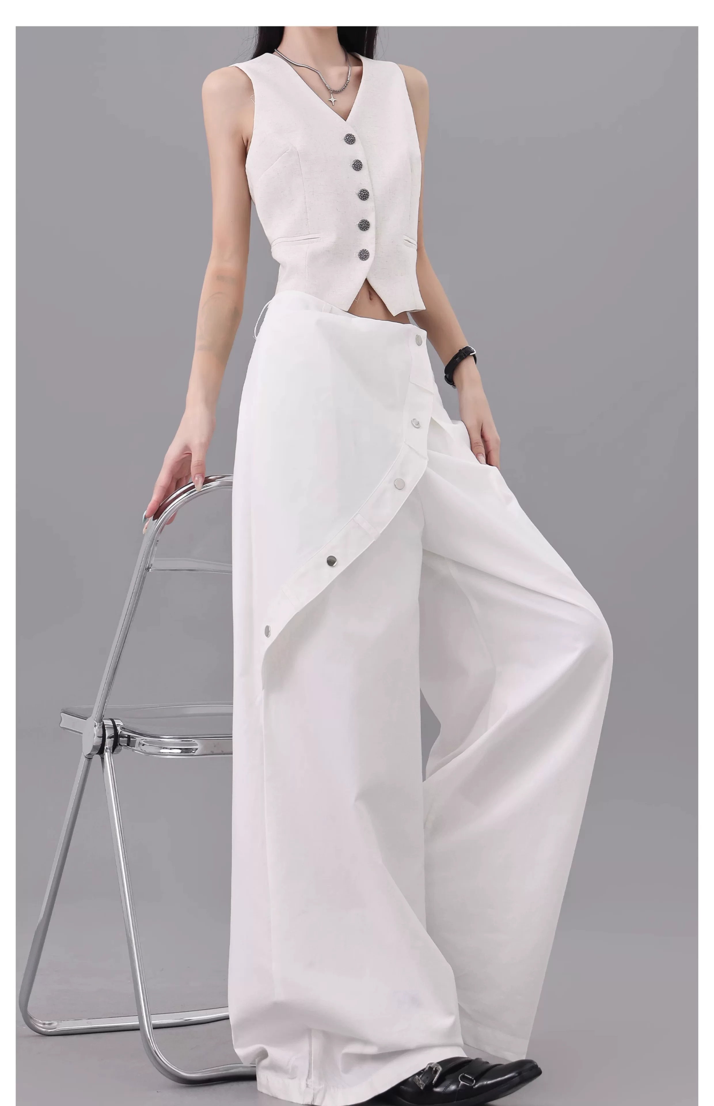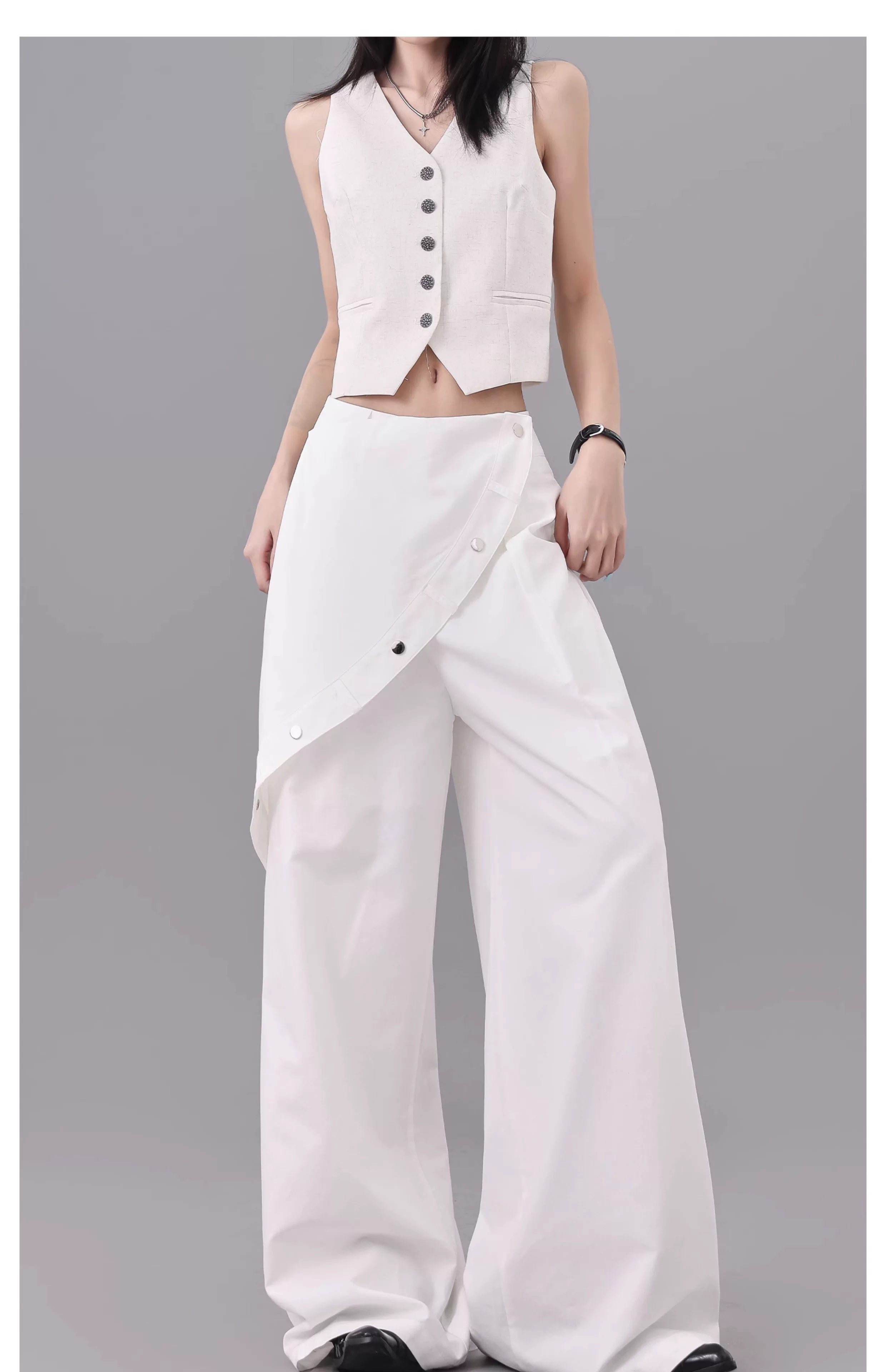 KEN STUDIO Quần dài hai mảnh giả trắng mùa hè mới, dáng rộng, tôn dáng, mềm mại, quần dài đến sàn, kiểu dáng giản dị