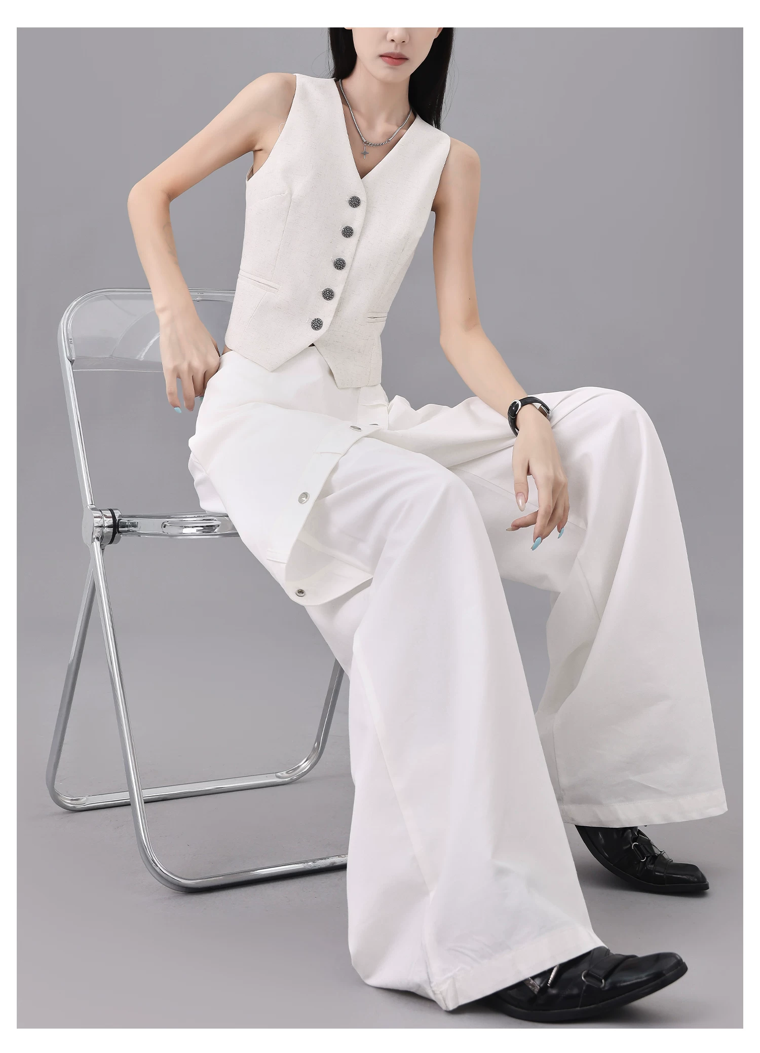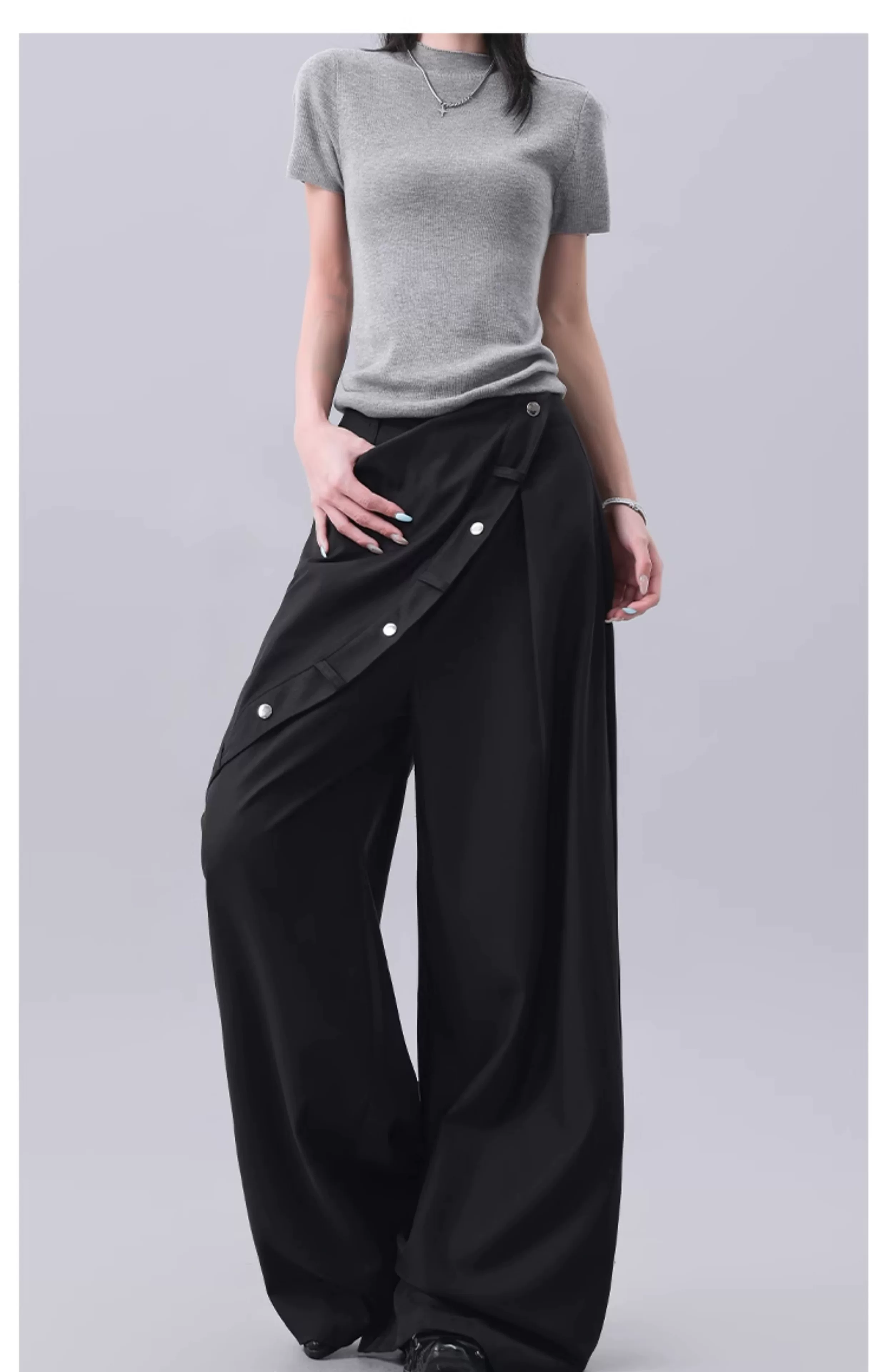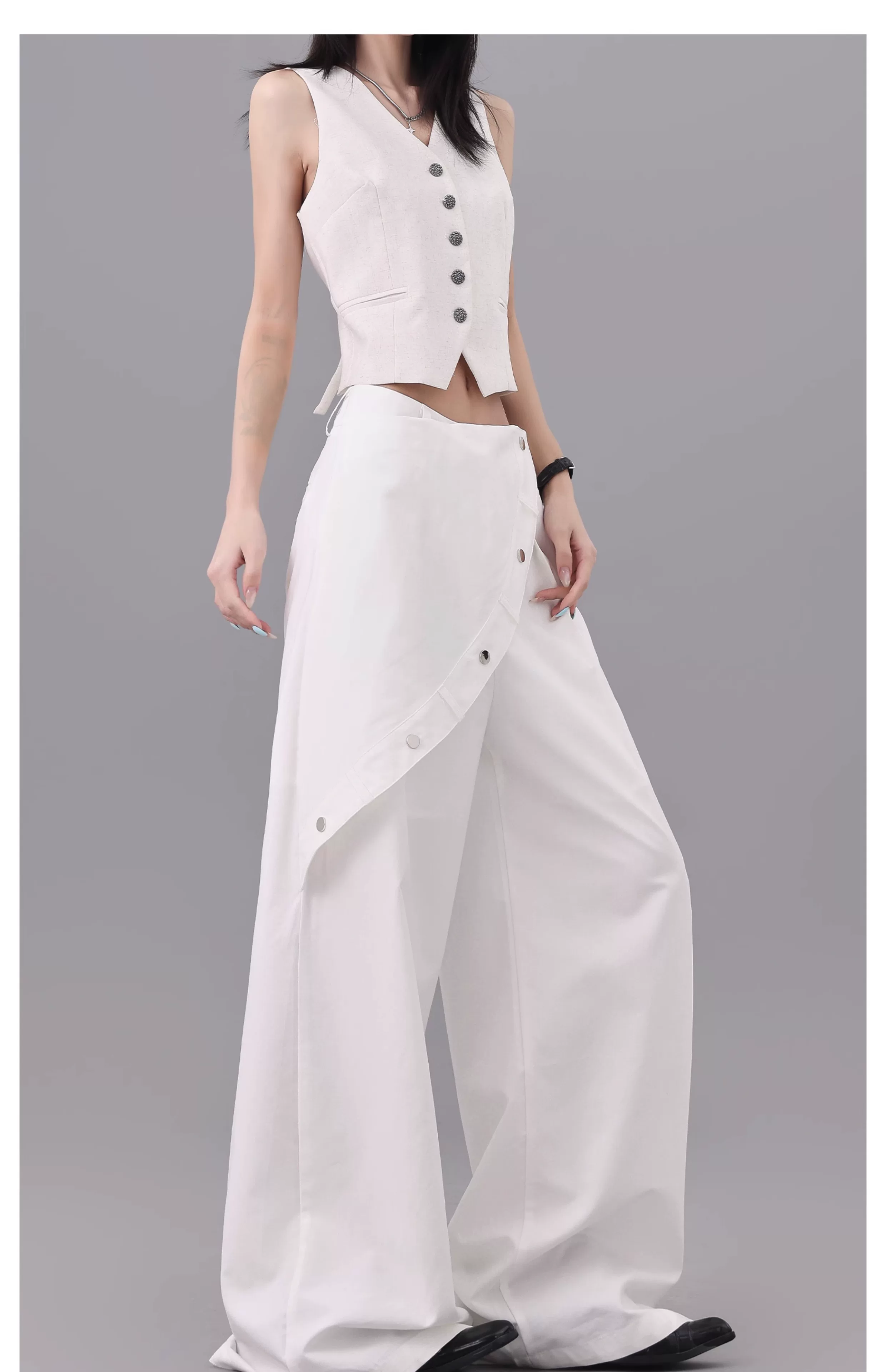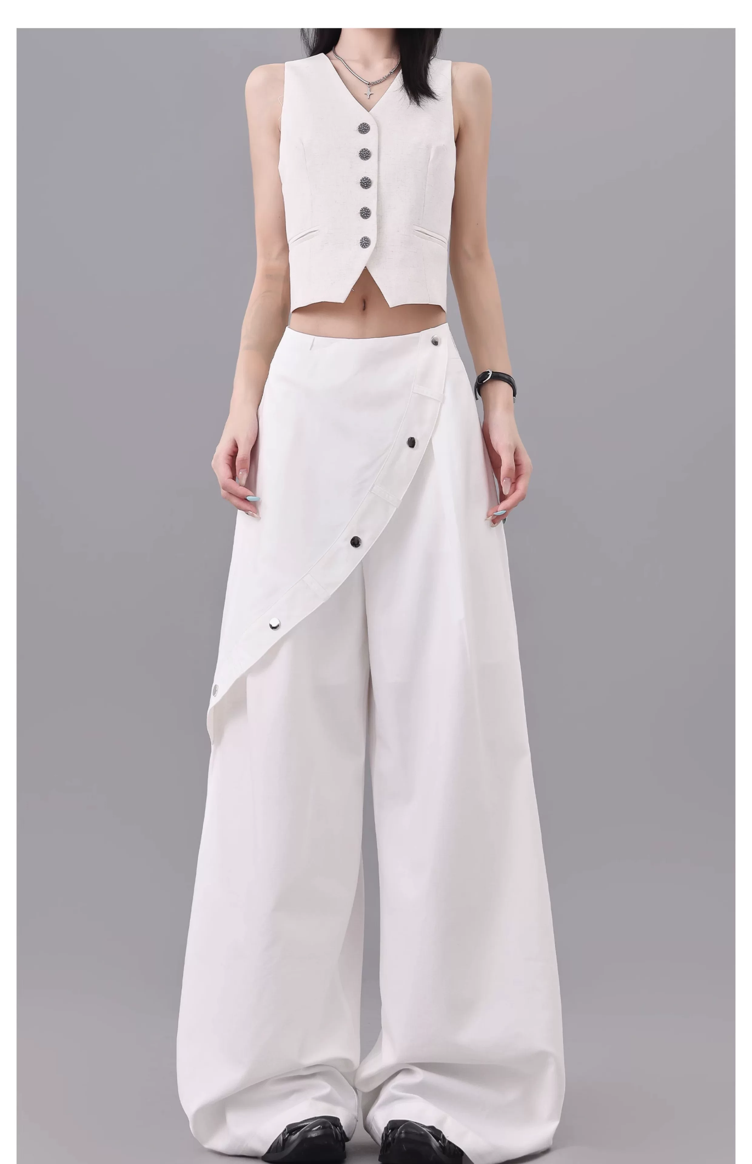 KEN STUDIO Quần dài hai mảnh giả trắng mùa hè mới, dáng rộng, tôn dáng, mềm mại, quần dài đến sàn, kiểu dáng giản dị