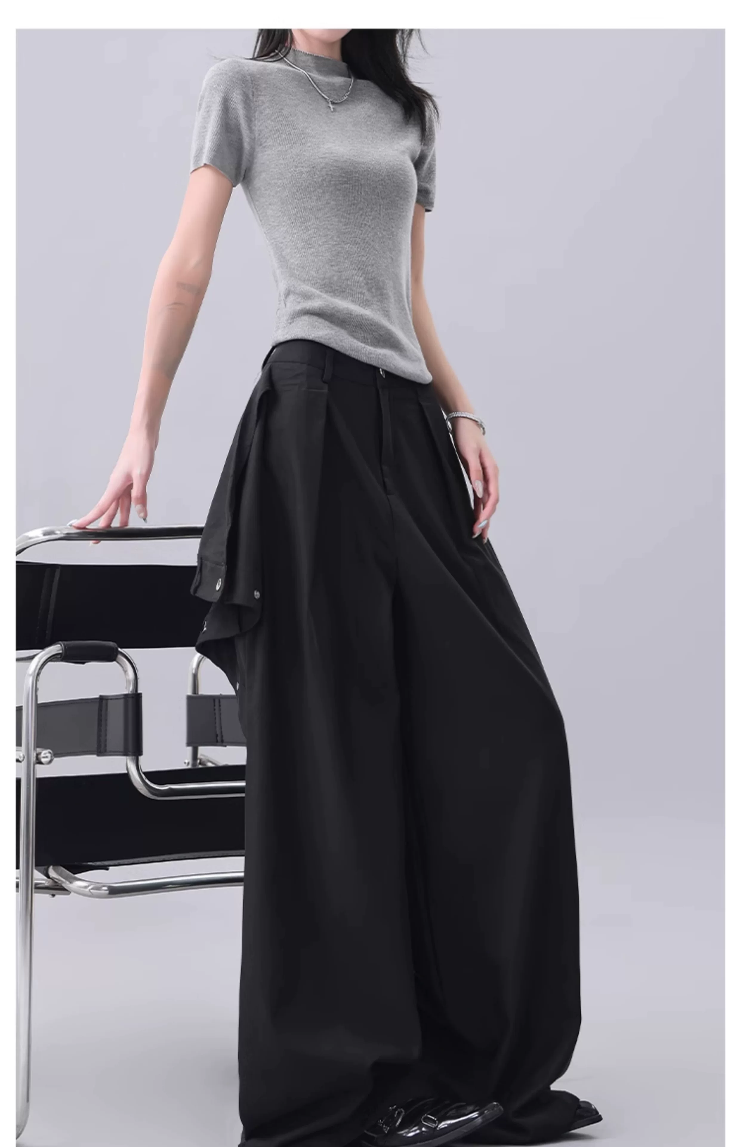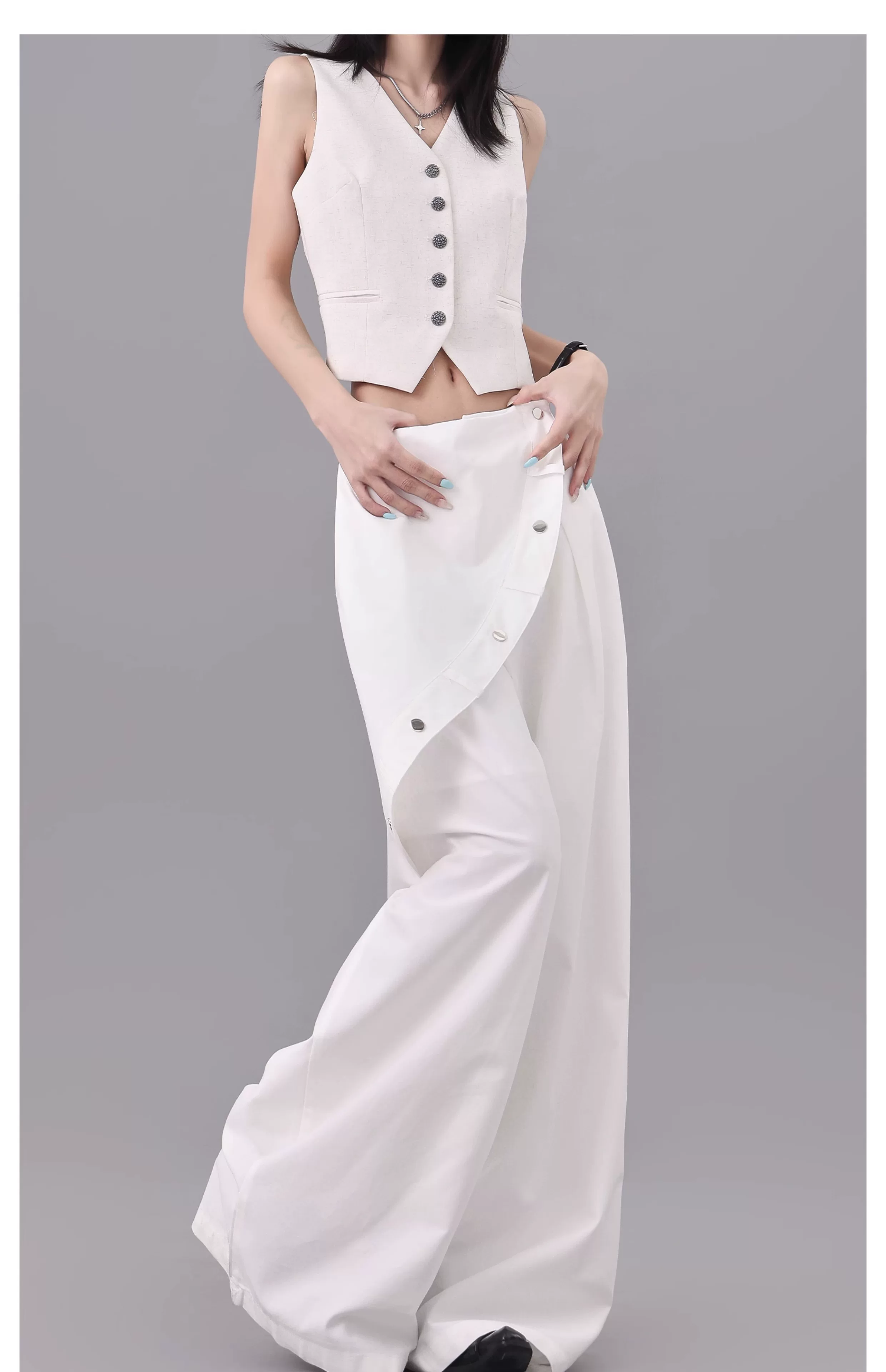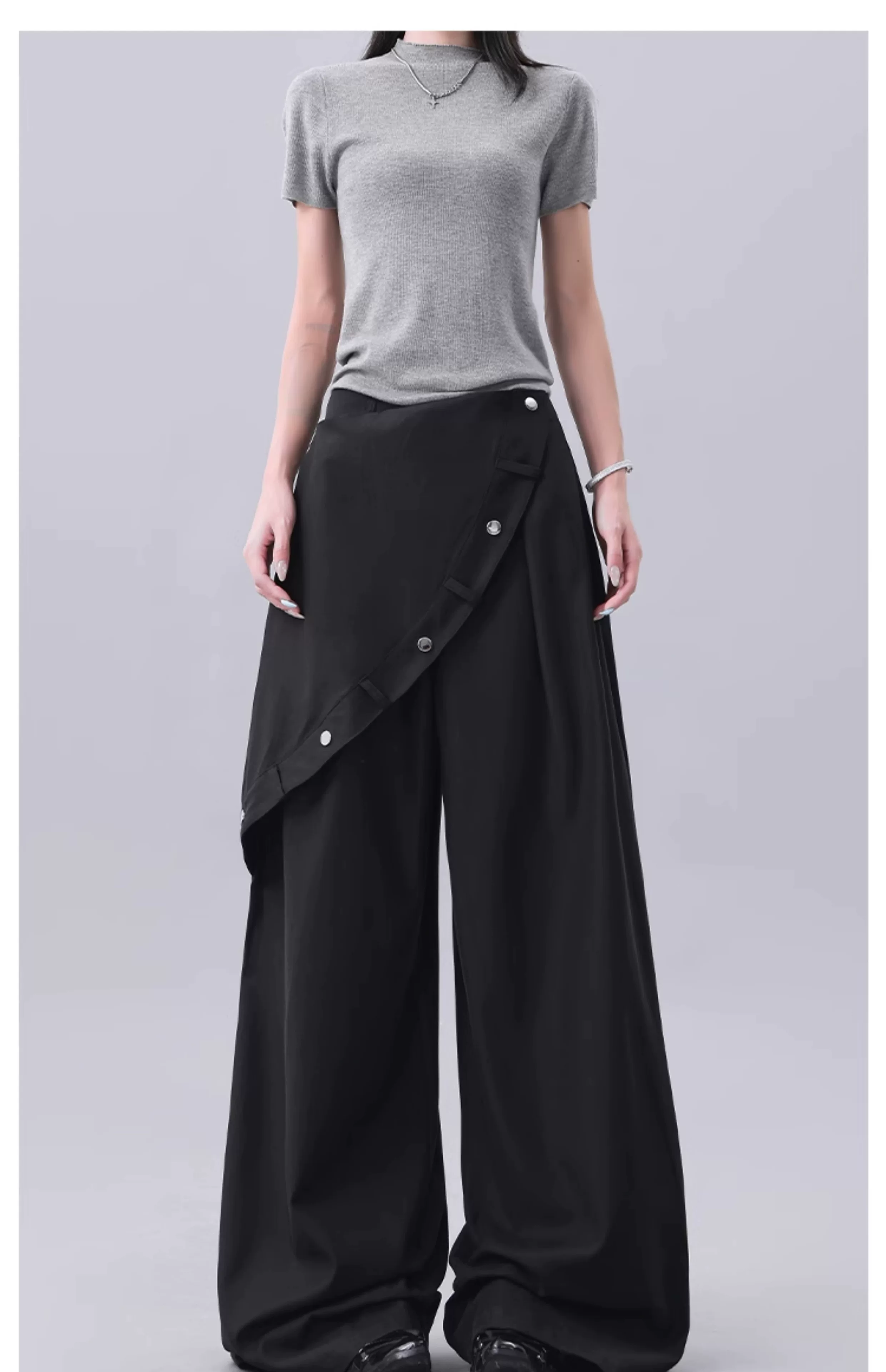 - KEN STUDIO Quần dài hai mảnh giả trắng mùa hè mới, dáng rộng, tôn dáng, mềm mại, quần dài đến sàn, kiểu dáng giản dị