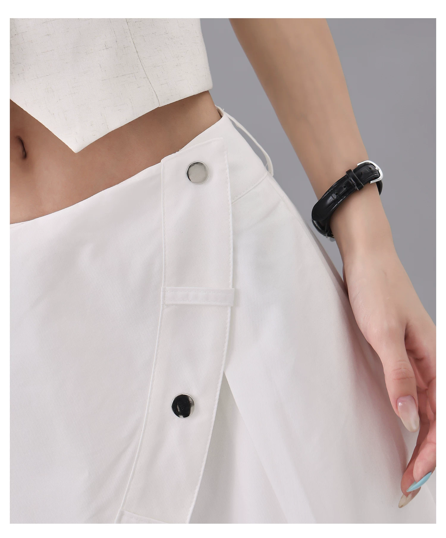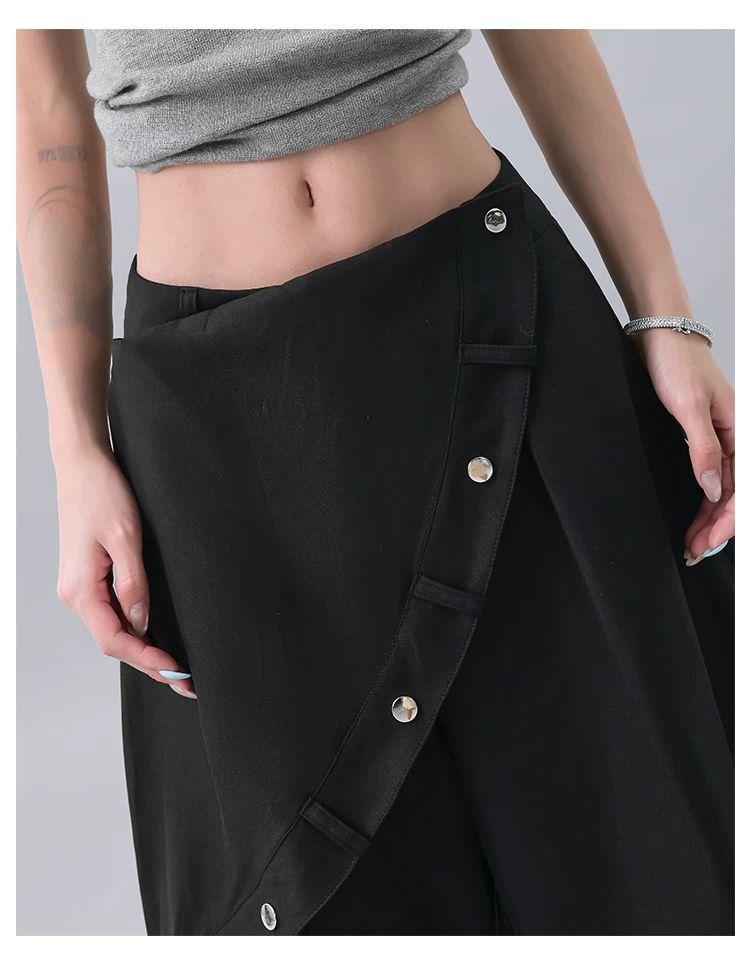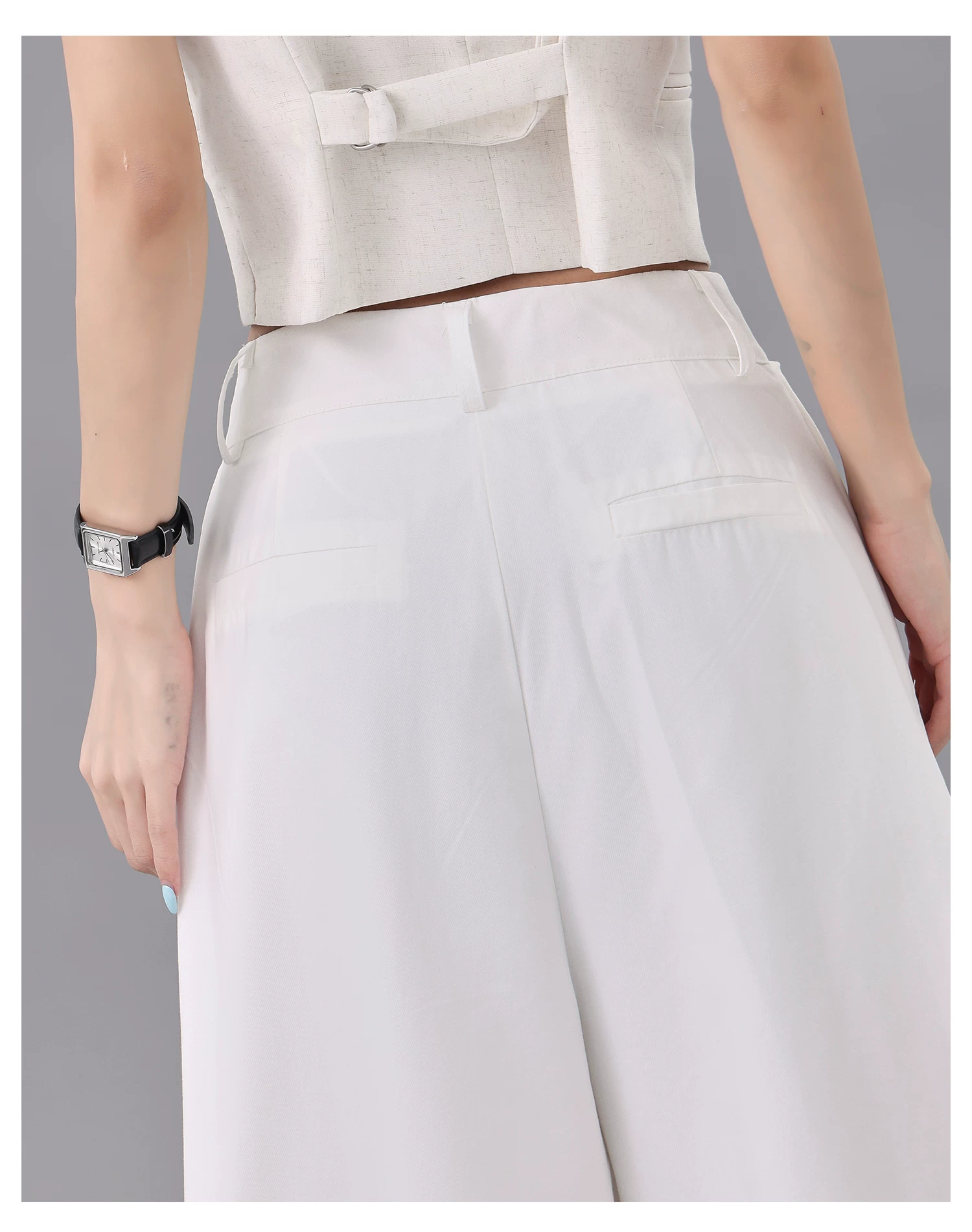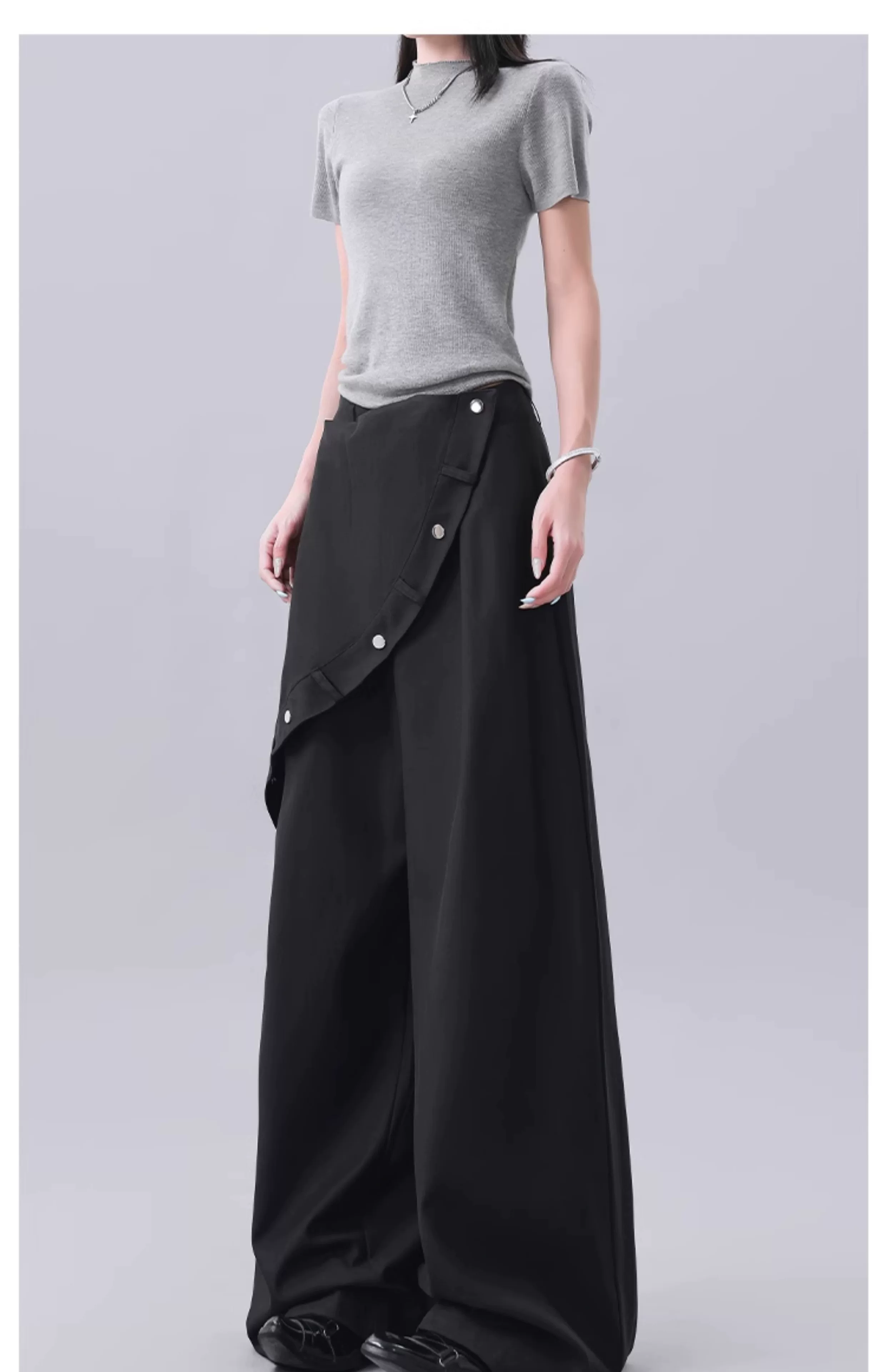 - KEN STUDIO Quần dài hai mảnh giả trắng mùa hè mới, dáng rộng, tôn dáng, mềm mại, quần dài đến sàn, kiểu dáng giản dị