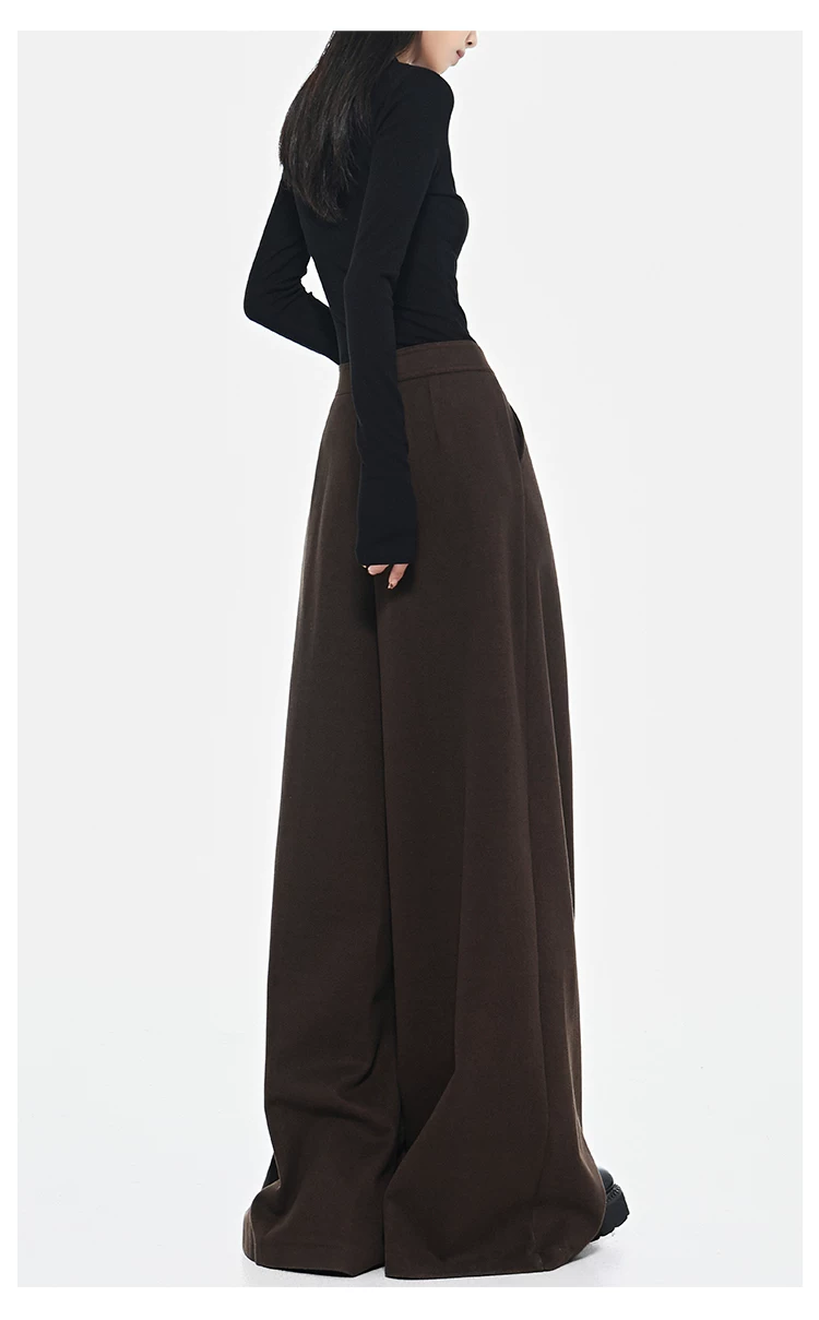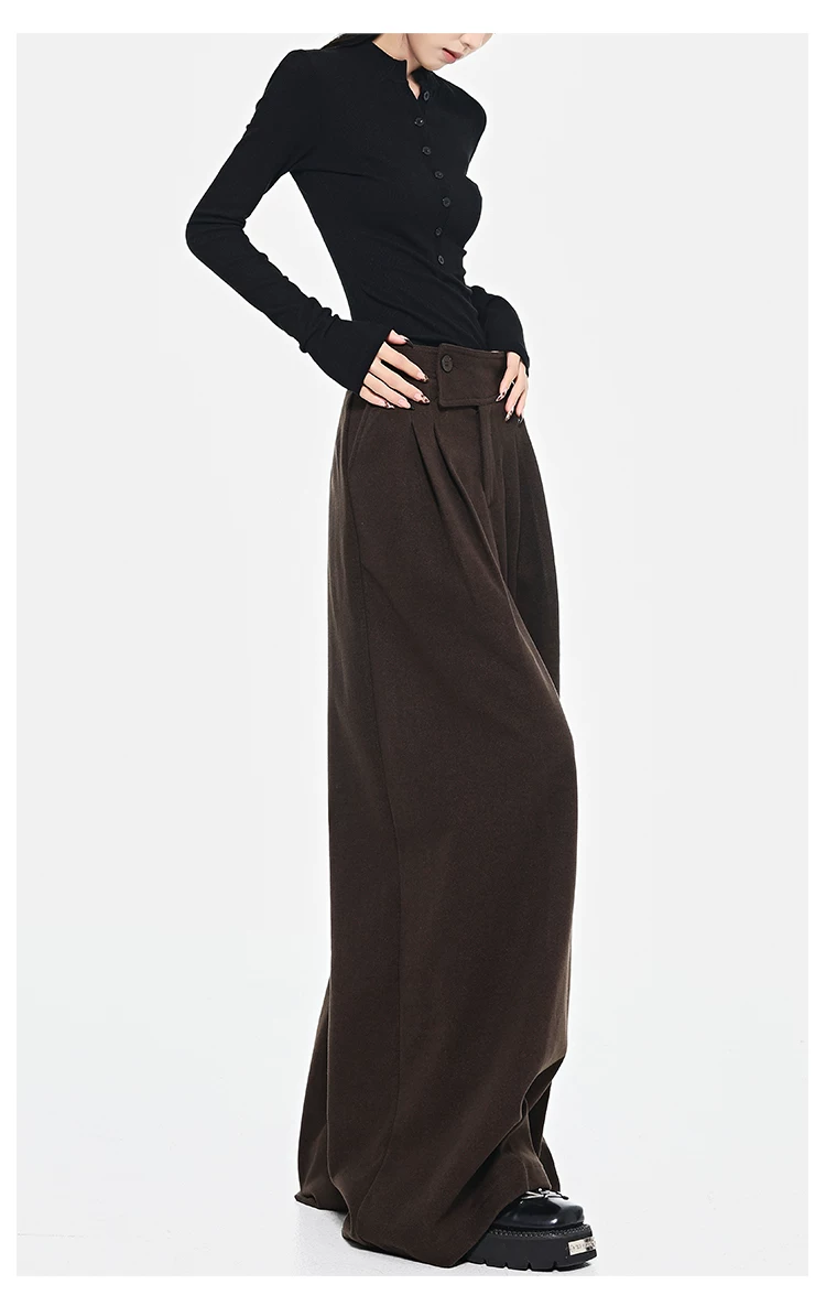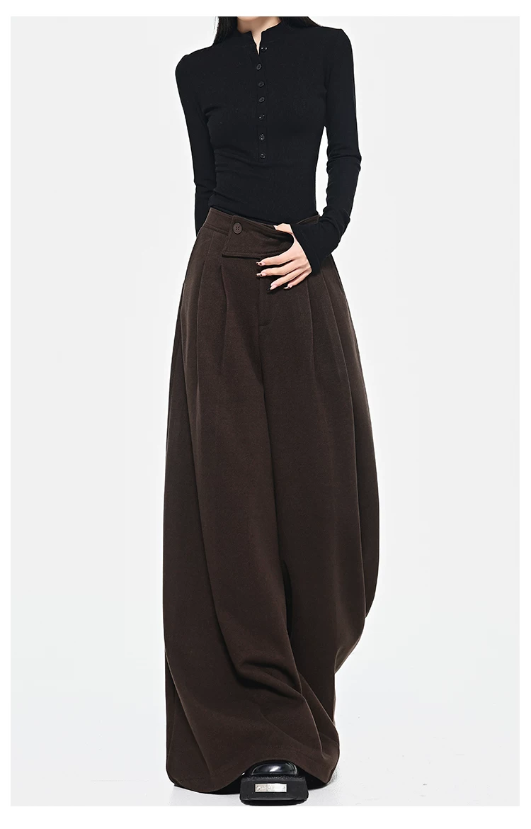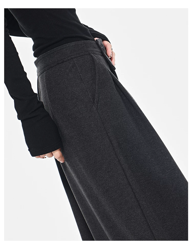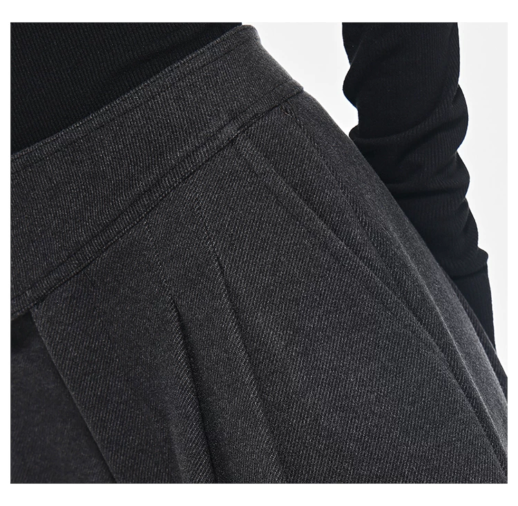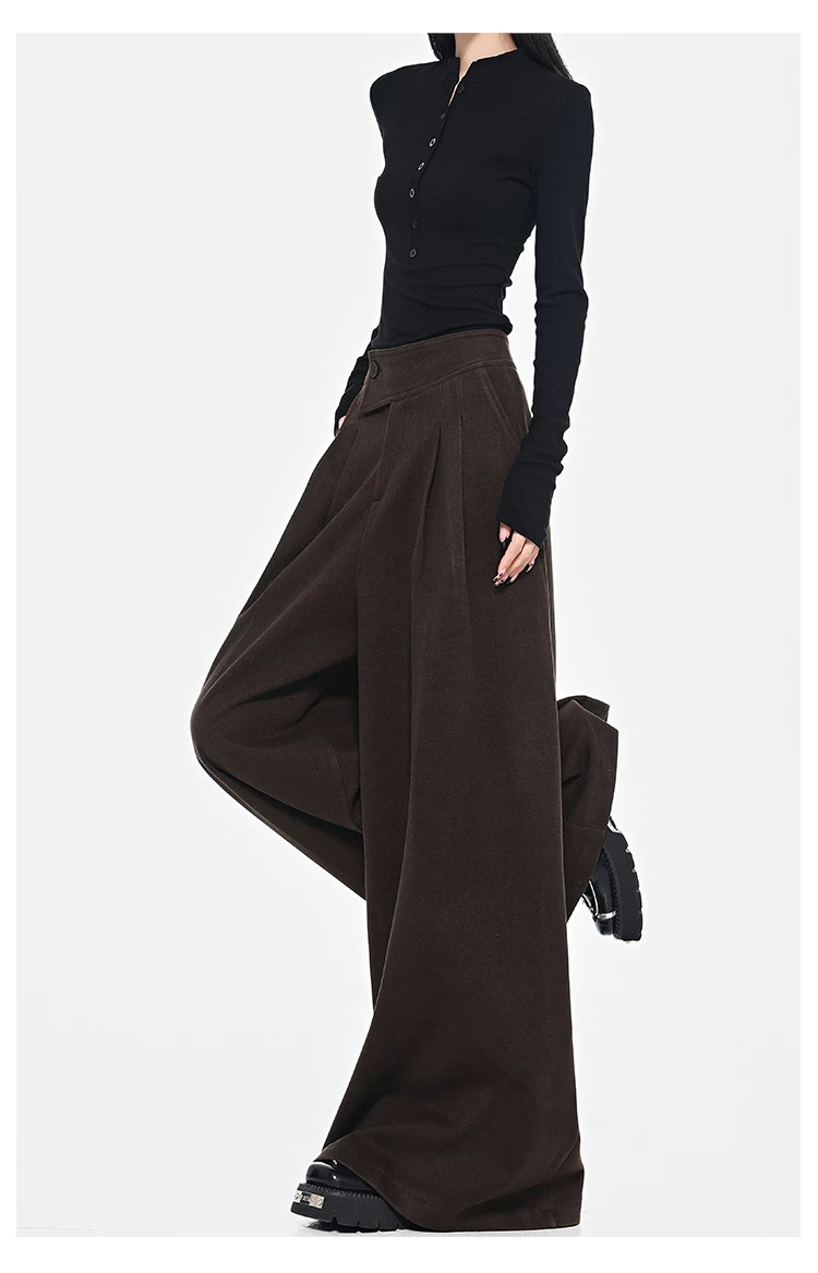 - KEN STUDIO Quần dài ống rộng màu xám thu đông mới dành cho nữ, quần dài dáng rộng đa năng lưng cao