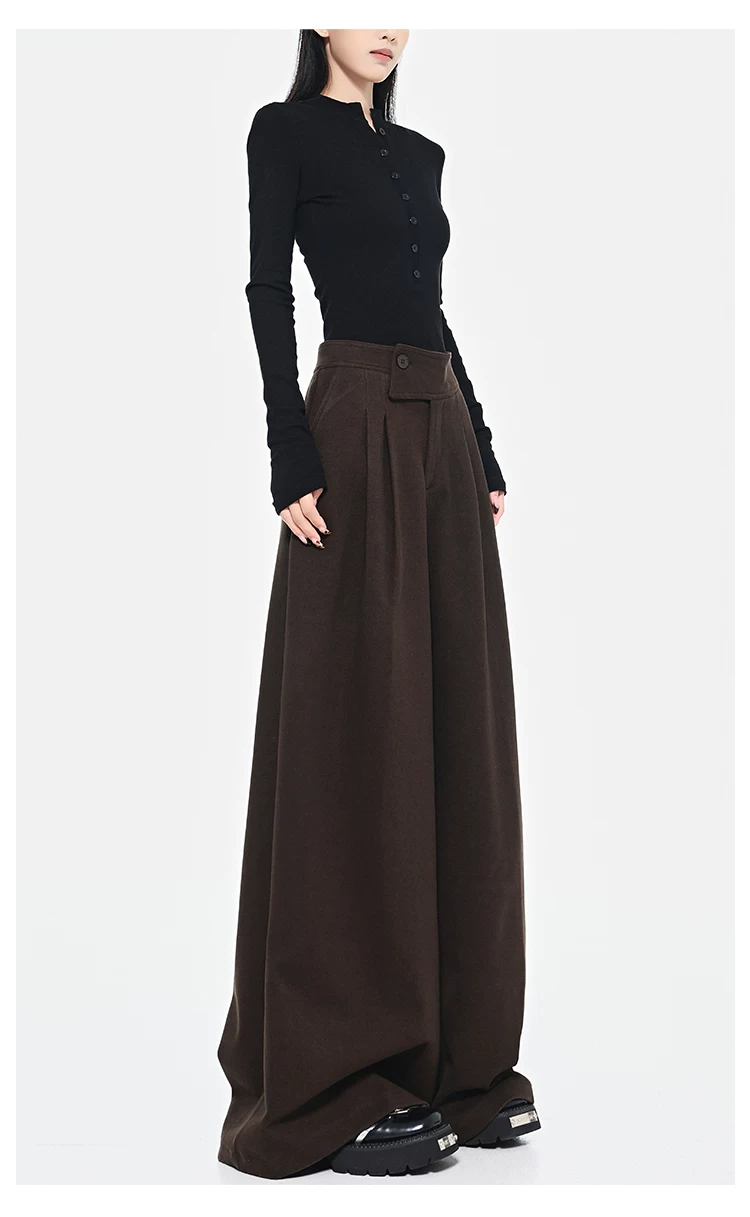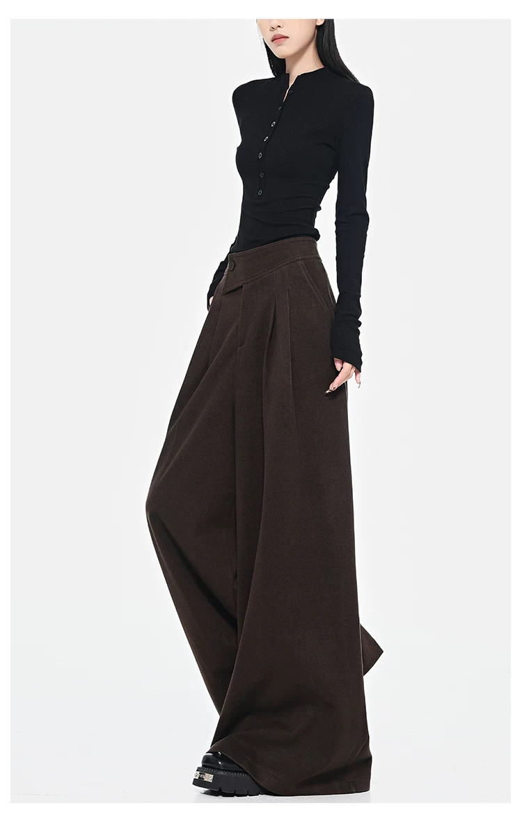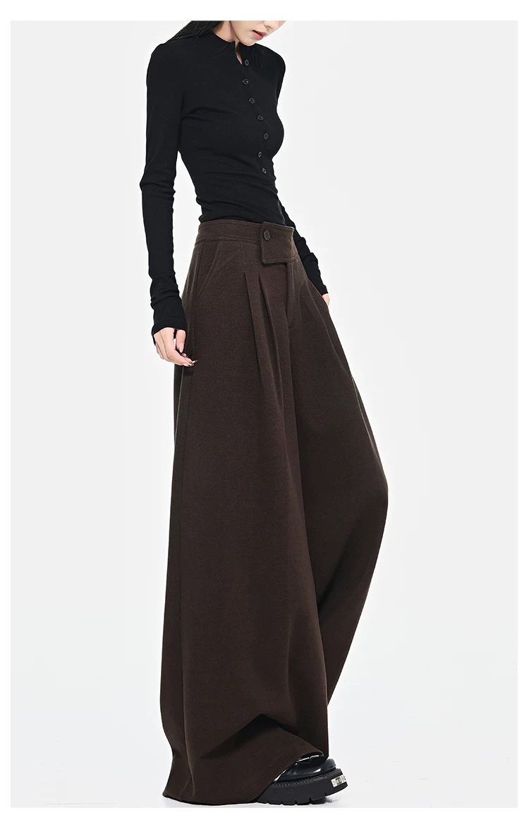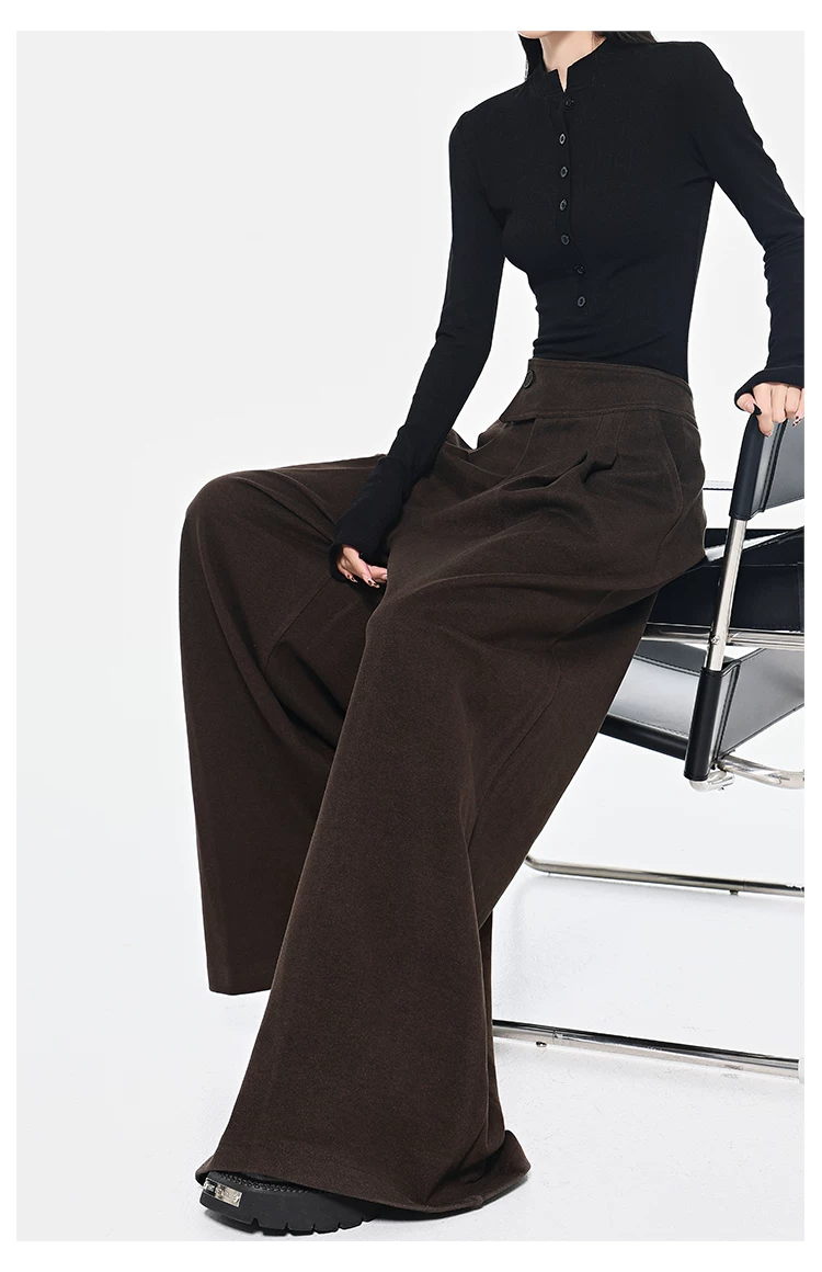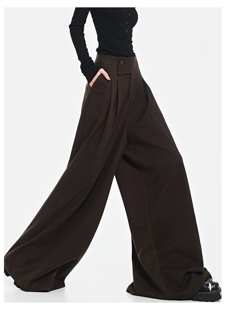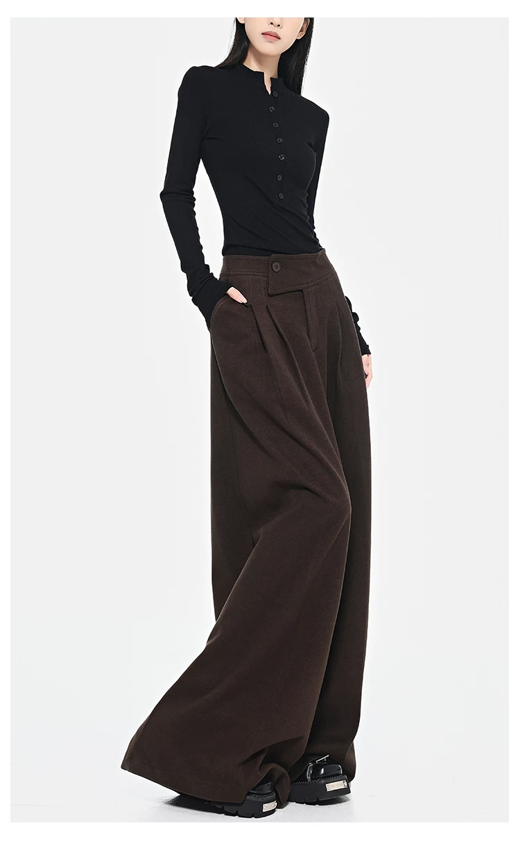 - KEN STUDIO Quần dài ống rộng màu xám thu đông mới dành cho nữ, quần dài dáng rộng đa năng lưng cao