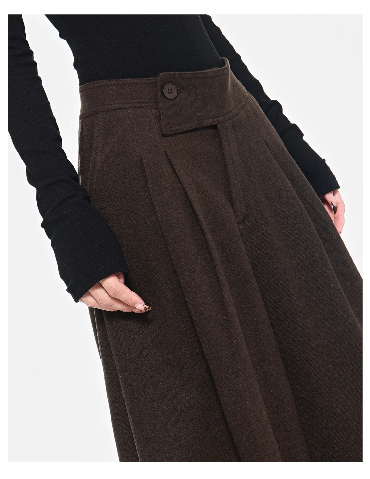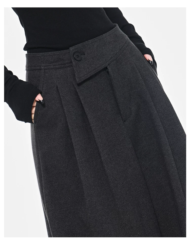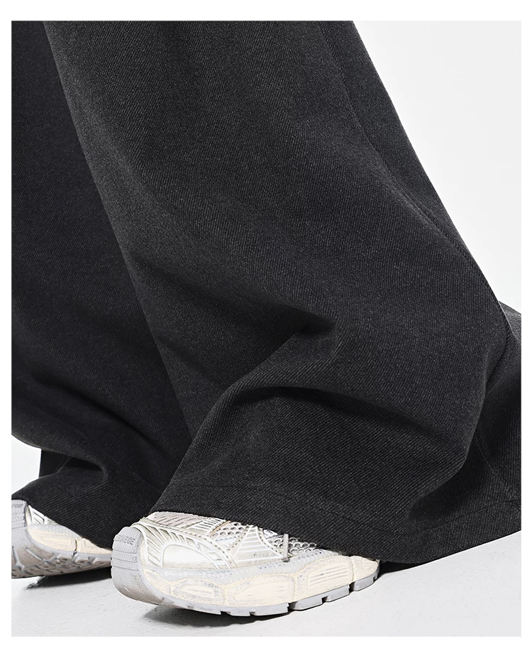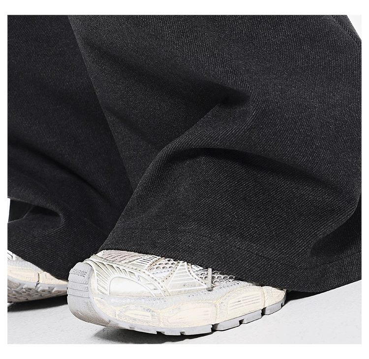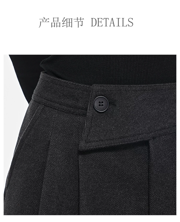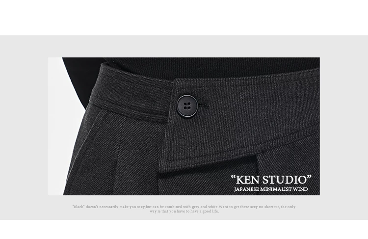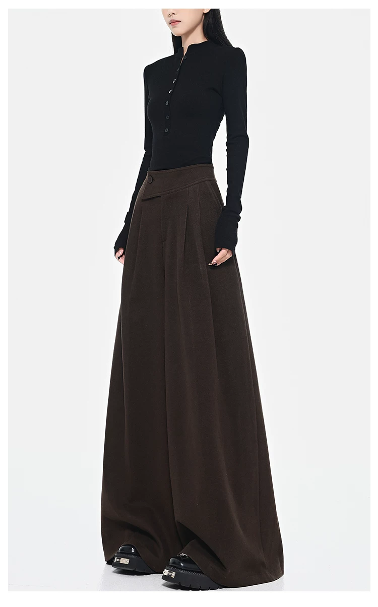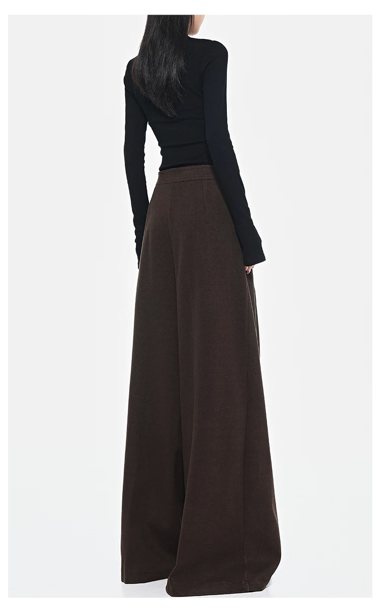 - KEN STUDIO Quần dài ống rộng màu xám thu đông mới dành cho nữ, quần dài dáng rộng đa năng lưng cao