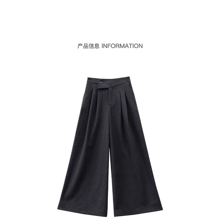KEN STUDIO Quần dài ống rộng màu xám thu đông mới dành cho nữ, quần dài dáng rộng đa năng lưng cao
