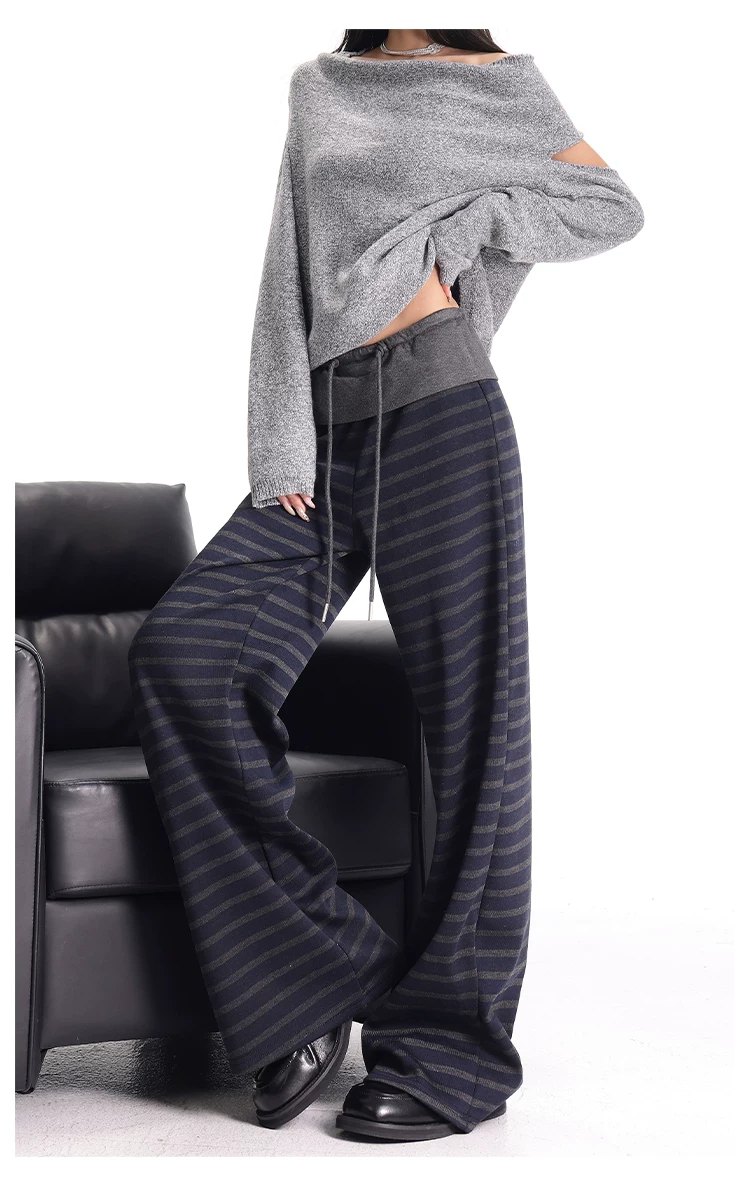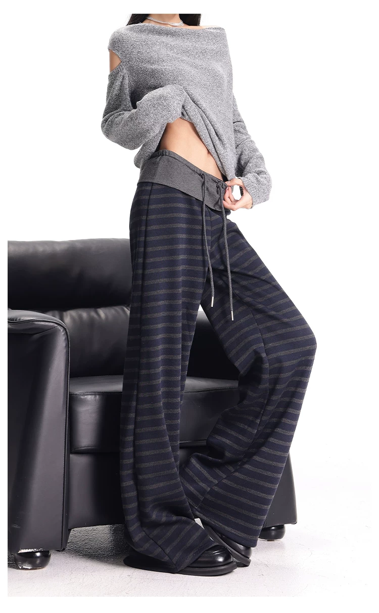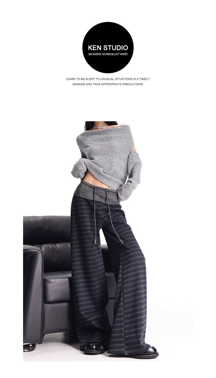 - KEN STUDIO quần dài sọc giản dị phong cách thu đông mới có lót lông cừu, quần ống rộng đa năng, dáng dài, ống rộng, dài đến sàn