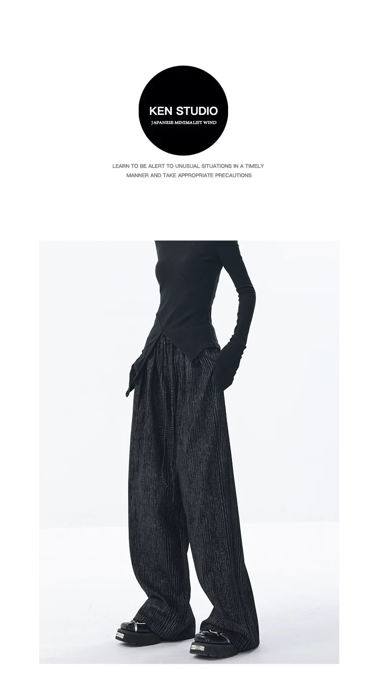 - KEN STUDIO quần dài thường ngày mới thu đông dành cho nữ, dáng rộng, thon gọn eo, quần dài thiết kế họa tiết.