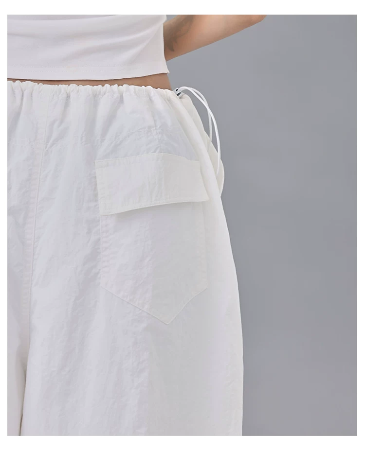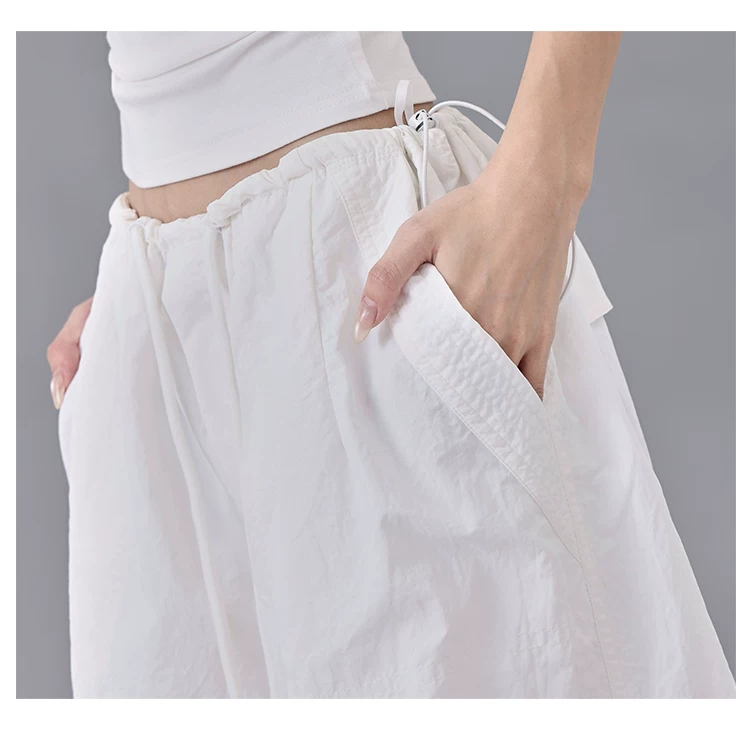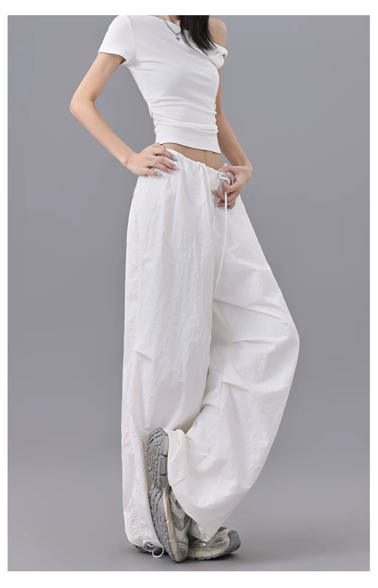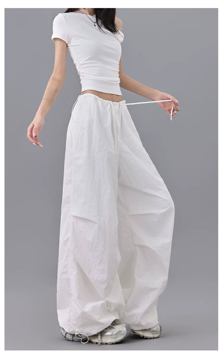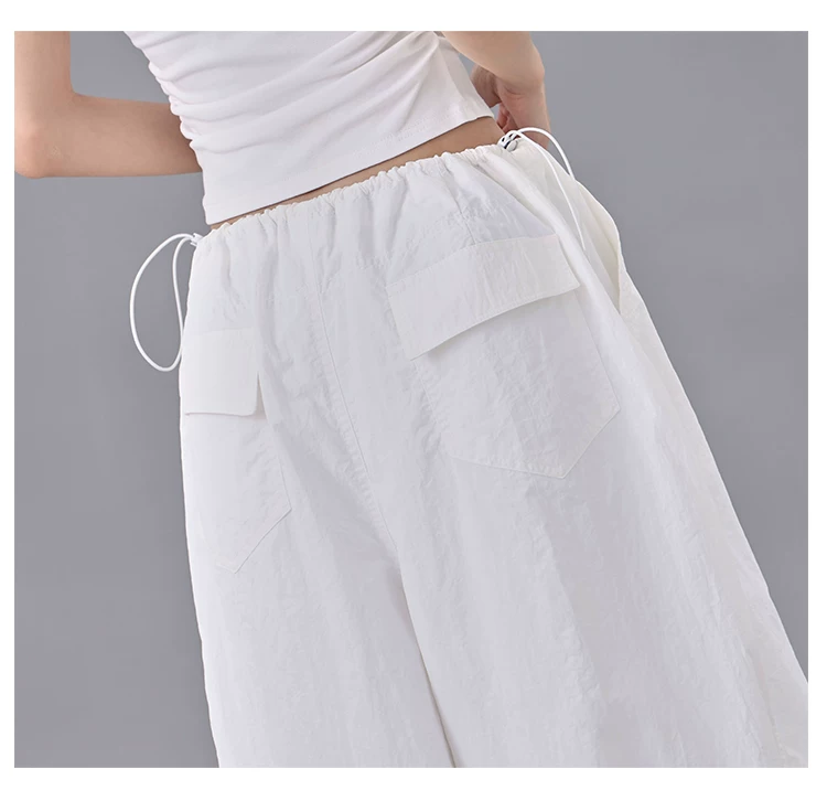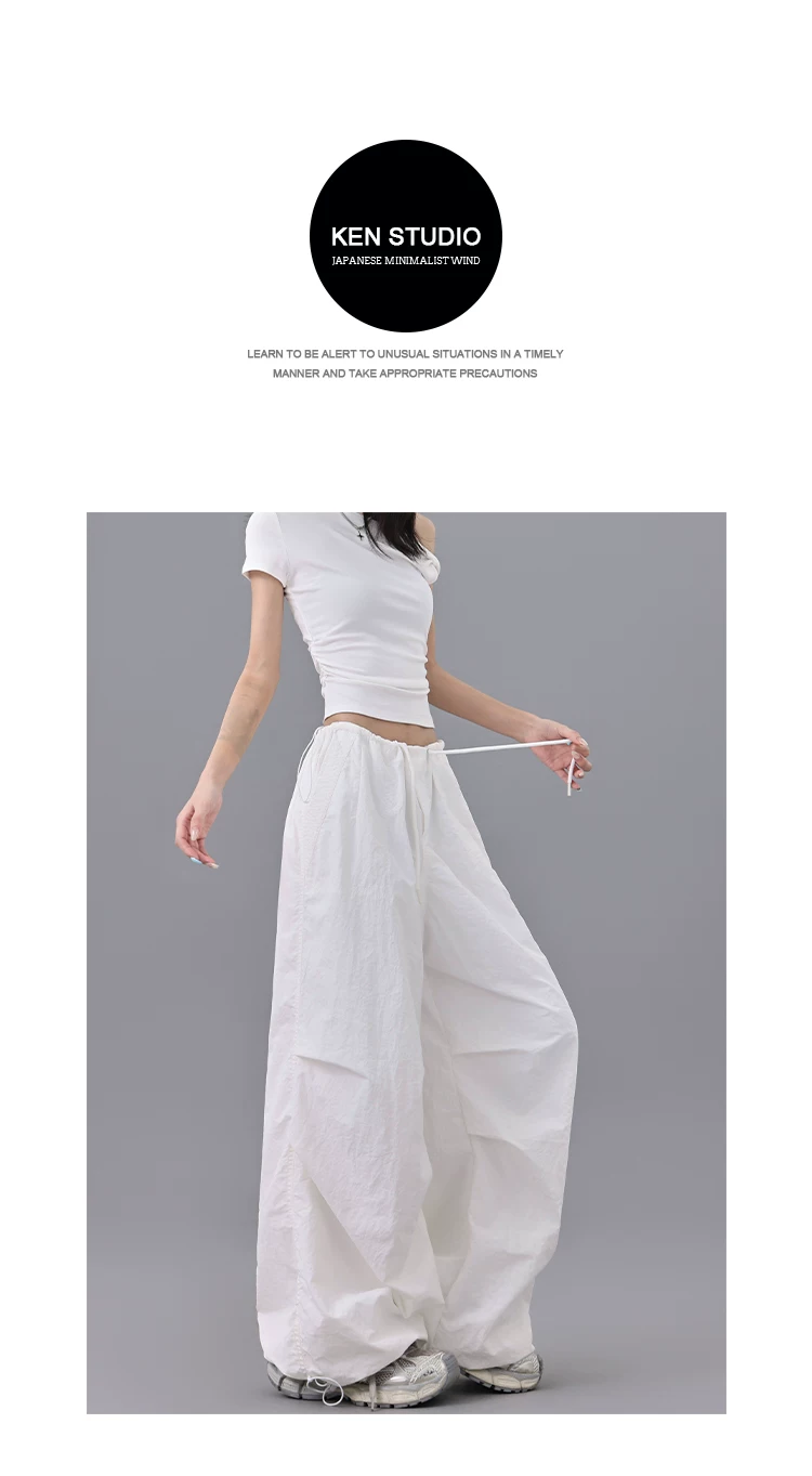 - KEN STUDIO quần dài xếp ly dây rút phong cách đường phố mùa hè của Mỹ dành cho nữ, quần jogger ống rộng thoáng khí lưng cao dành cho nữ