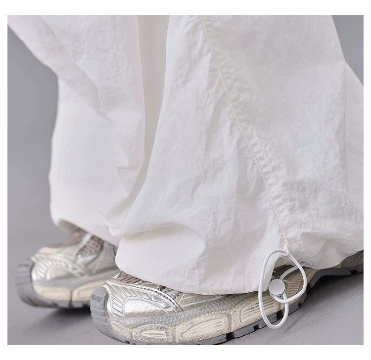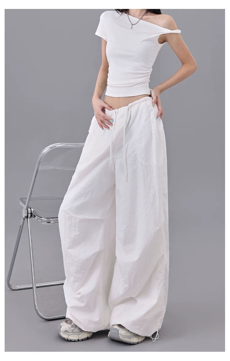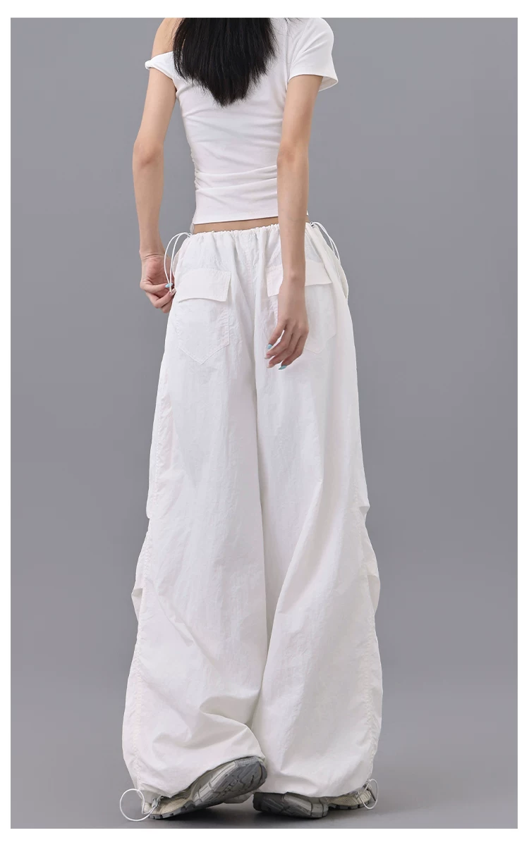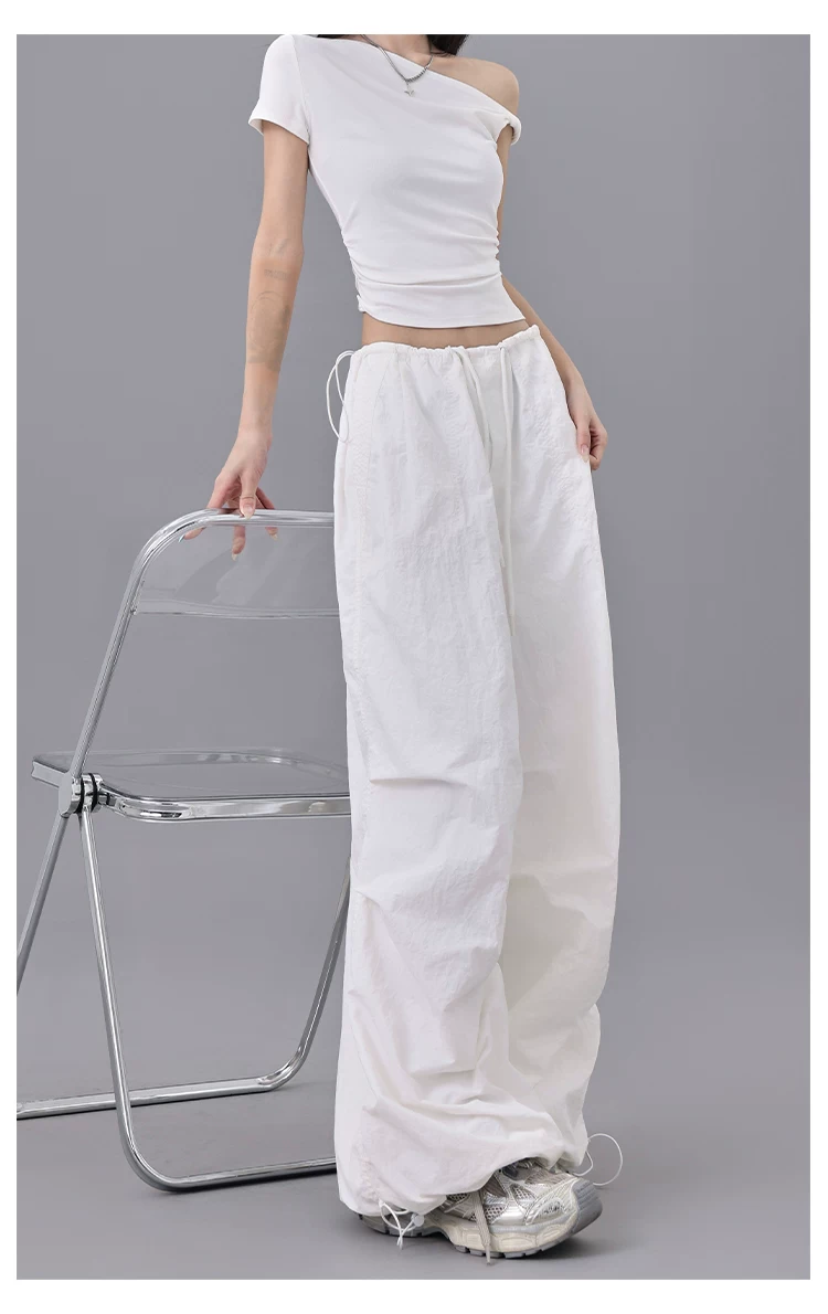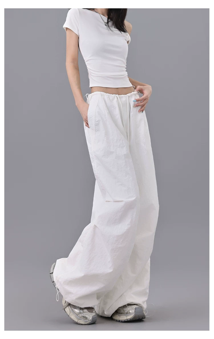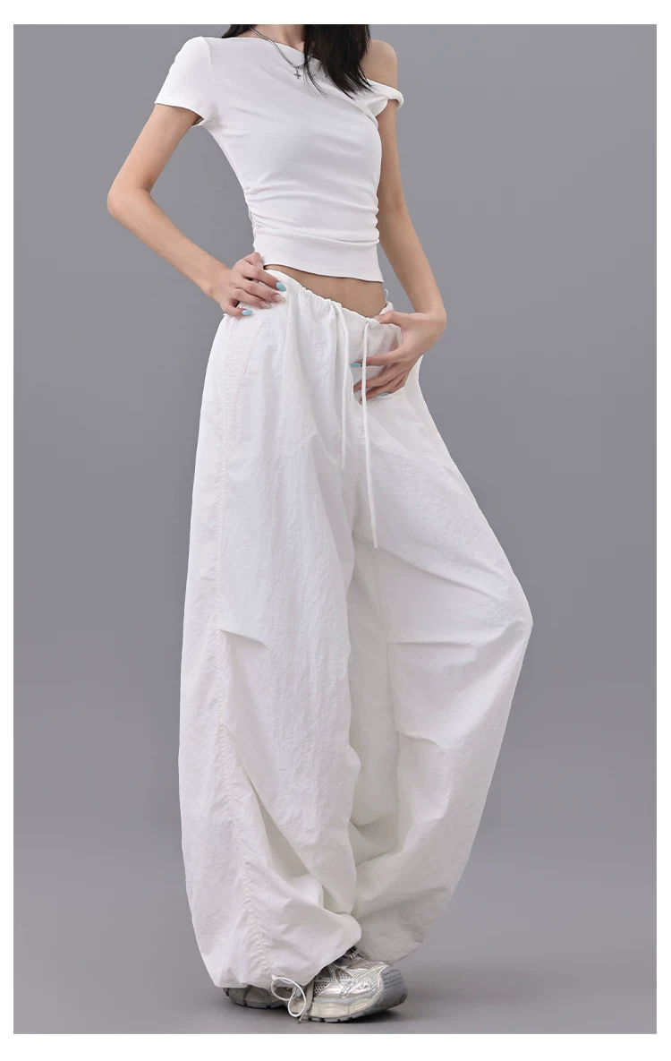 - KEN STUDIO quần dài xếp ly dây rút phong cách đường phố mùa hè của Mỹ dành cho nữ, quần jogger ống rộng thoáng khí lưng cao dành cho nữ