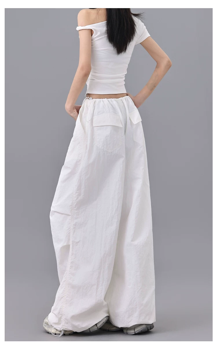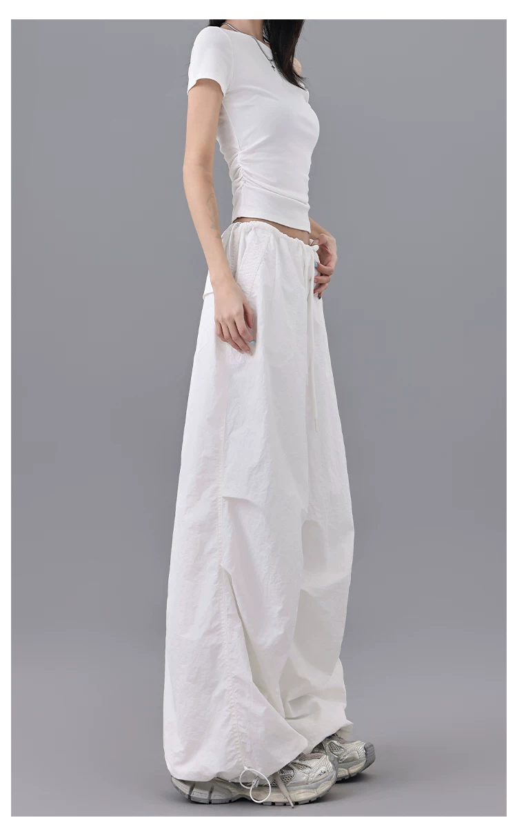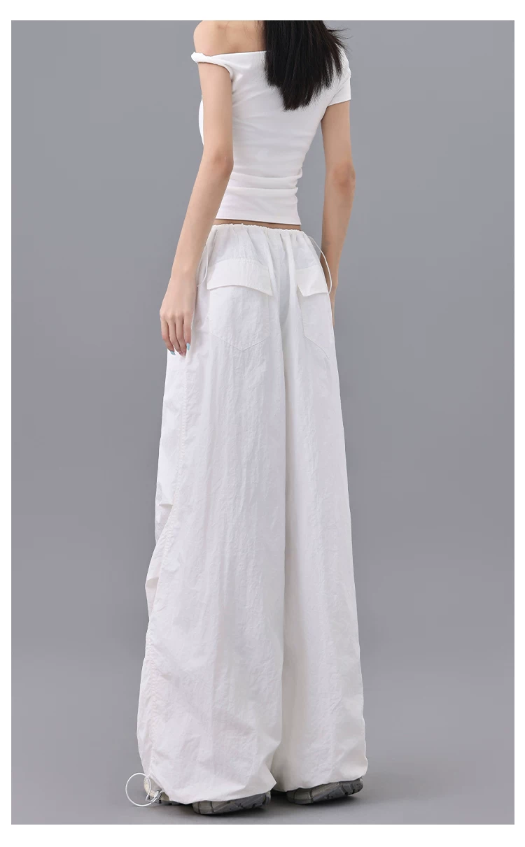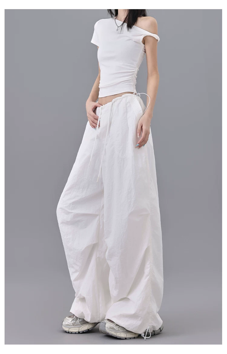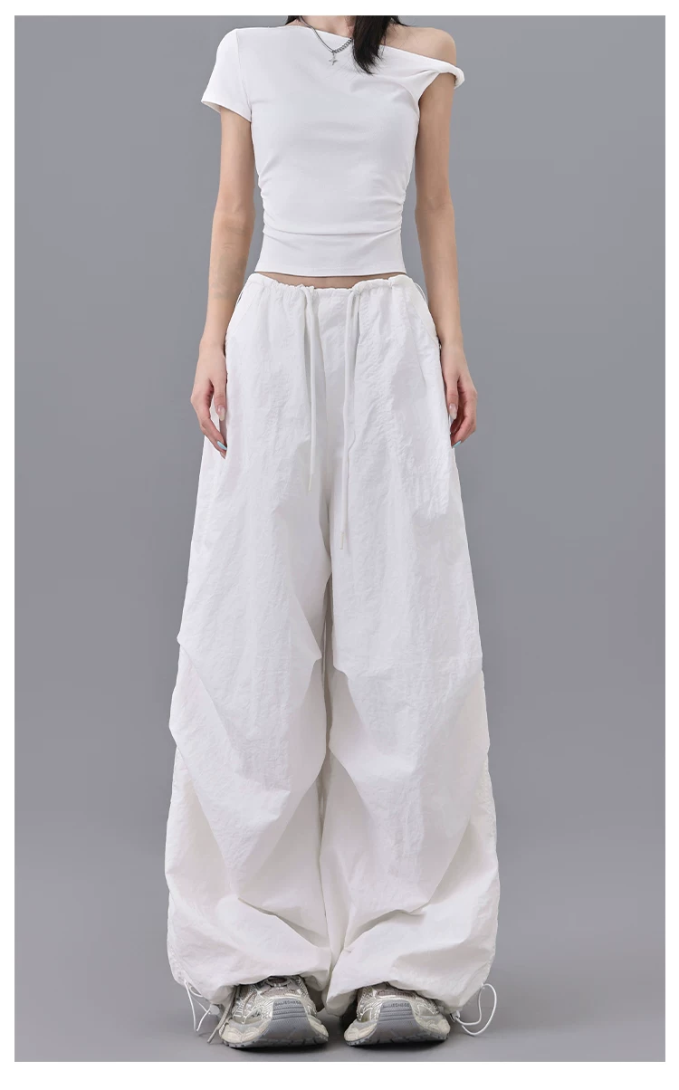 - KEN STUDIO quần dài xếp ly dây rút phong cách đường phố mùa hè của Mỹ dành cho nữ, quần jogger ống rộng thoáng khí lưng cao dành cho nữ