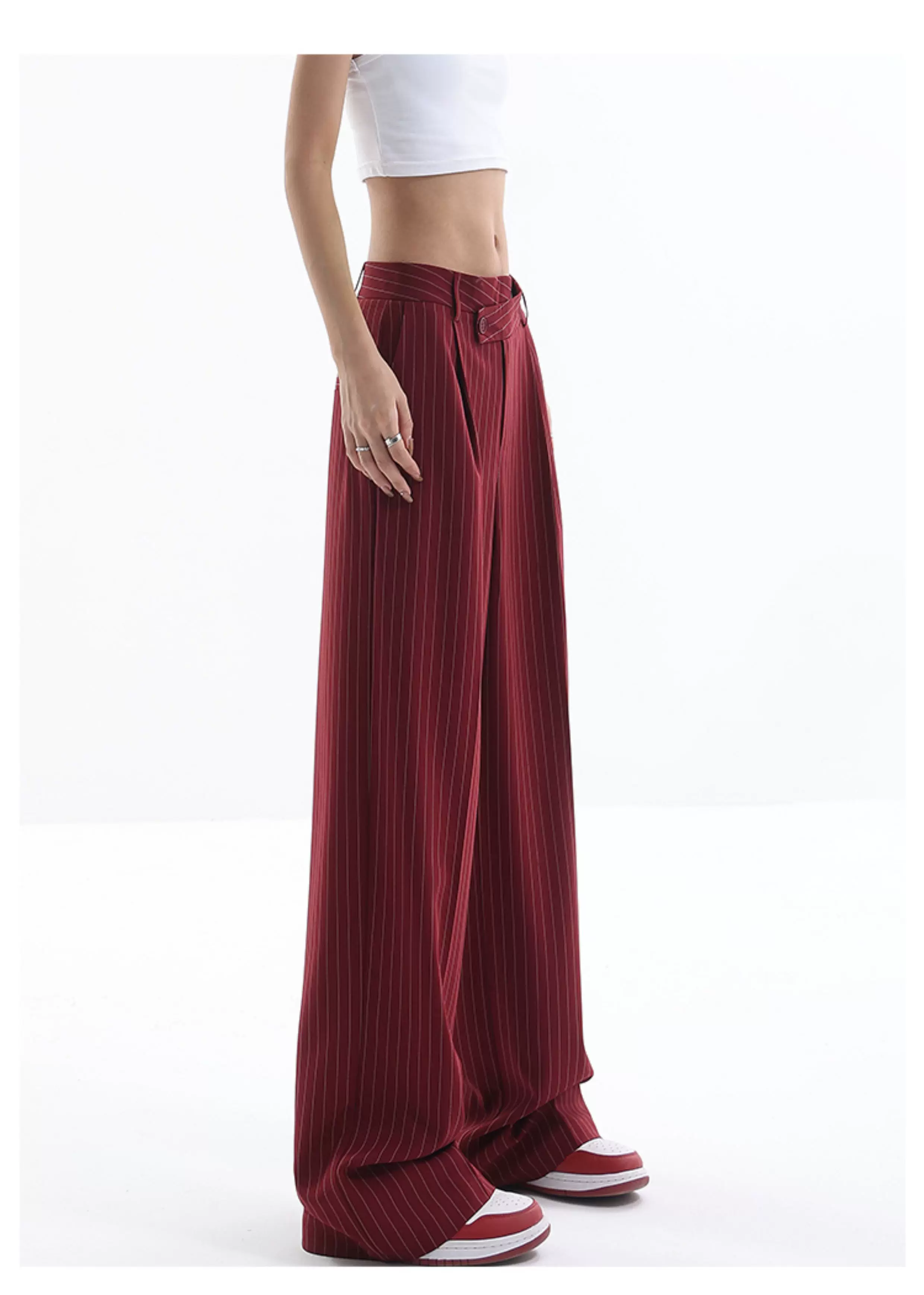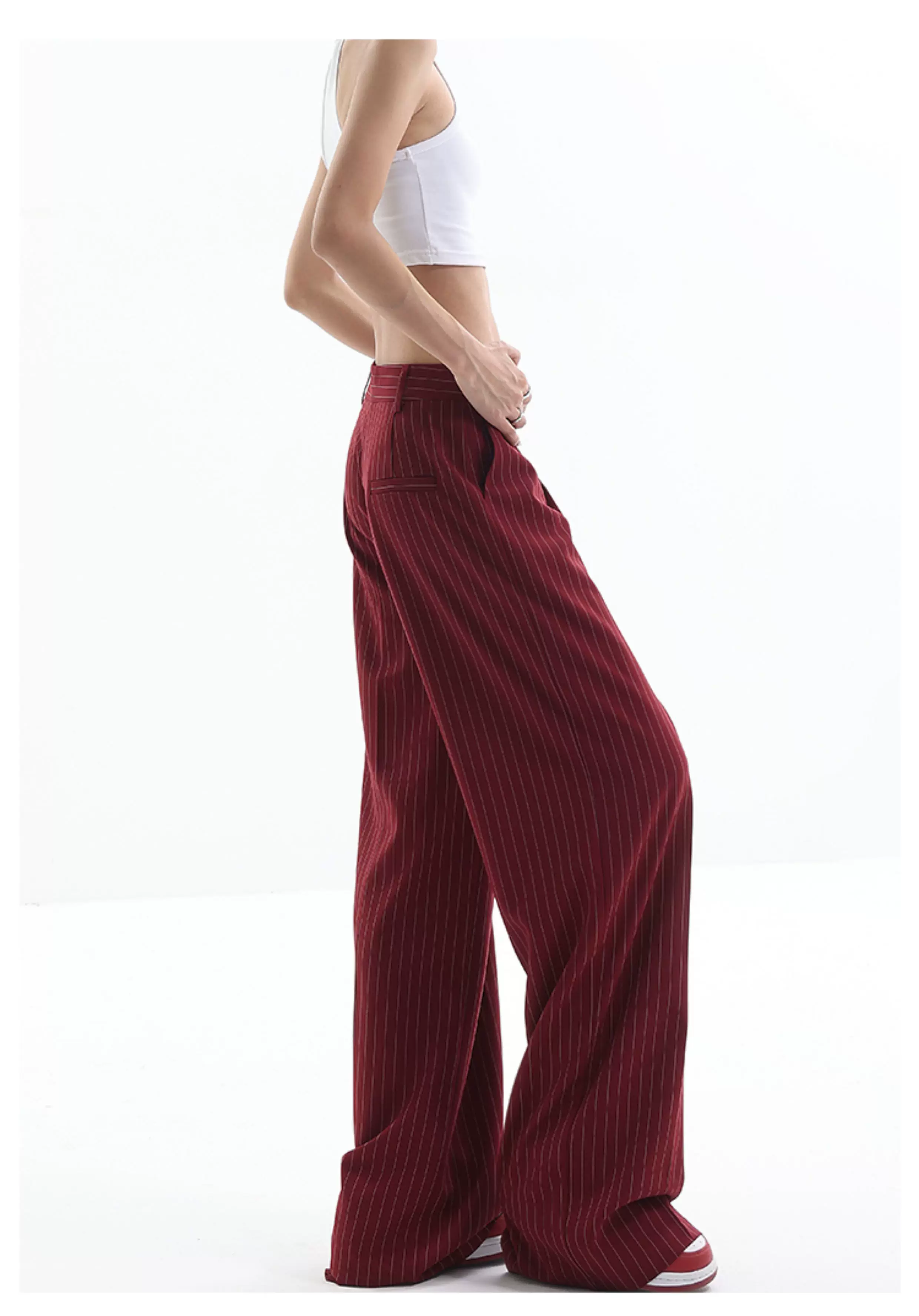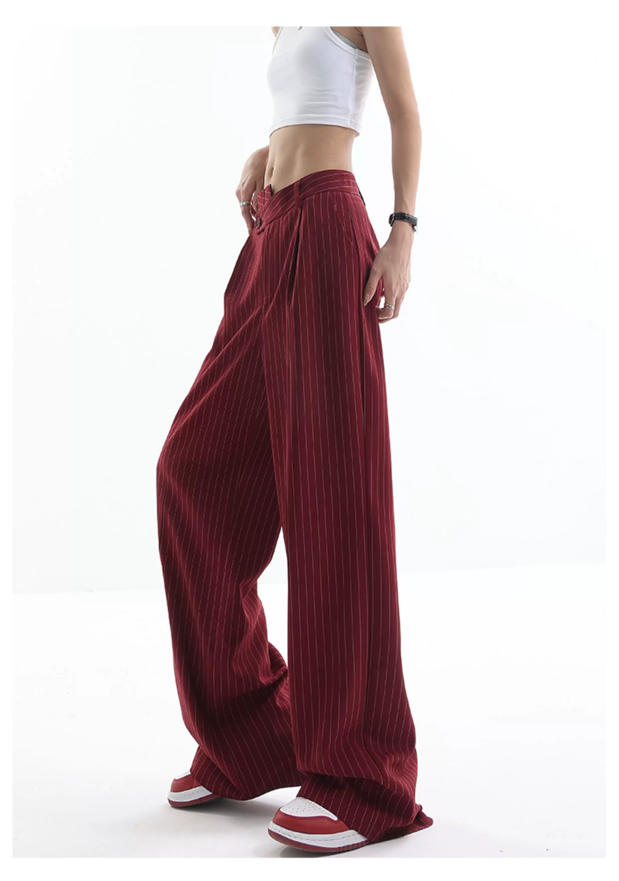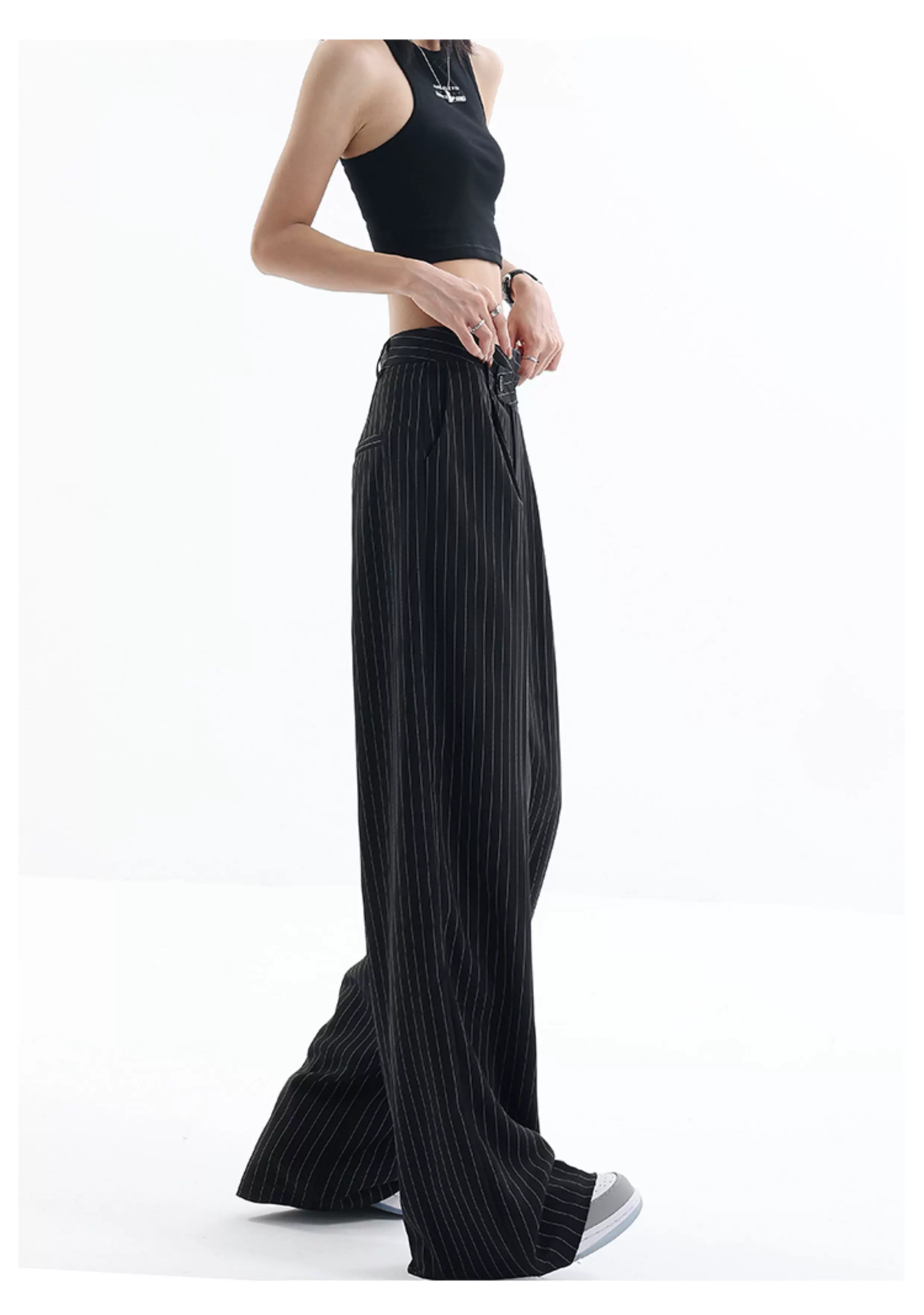 - KEN STUDIO quần dài xếp nếp sọc mới mùa hè dành cho nữ, quần ống rộng thiết kế xếp nếp, quần công sở