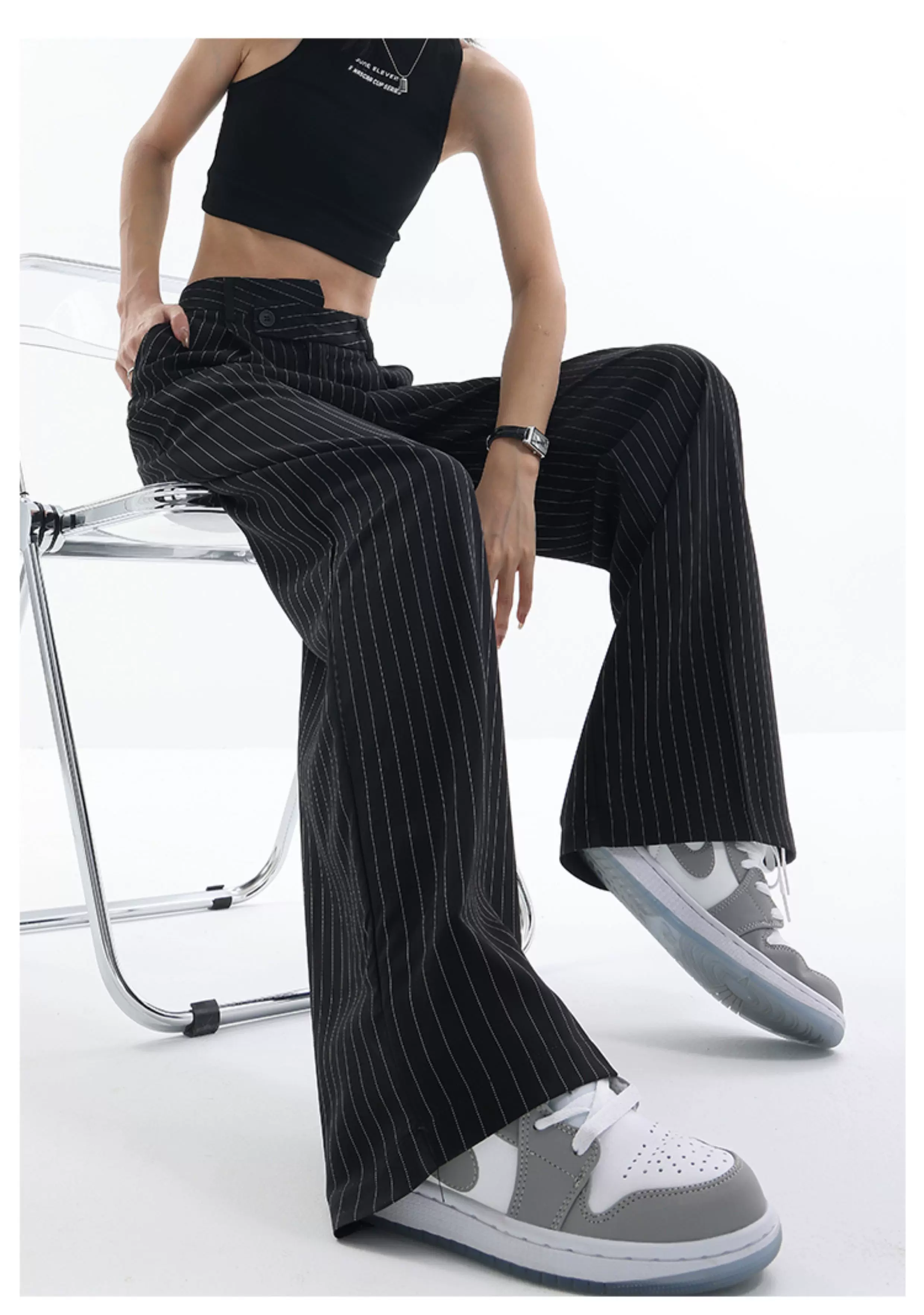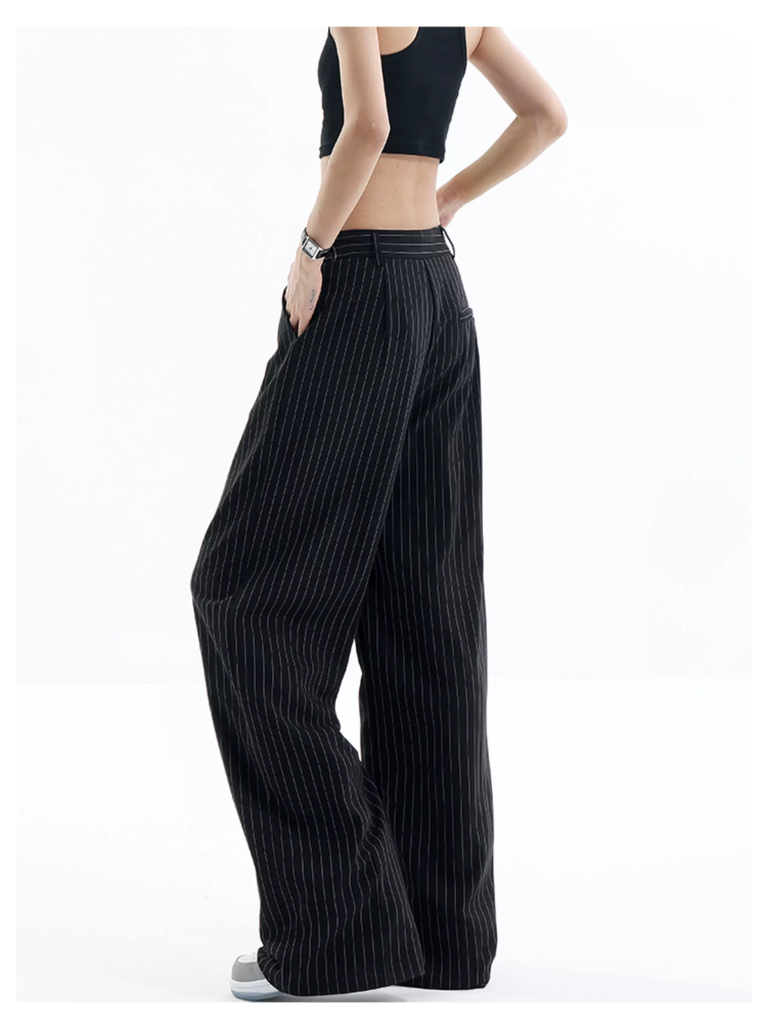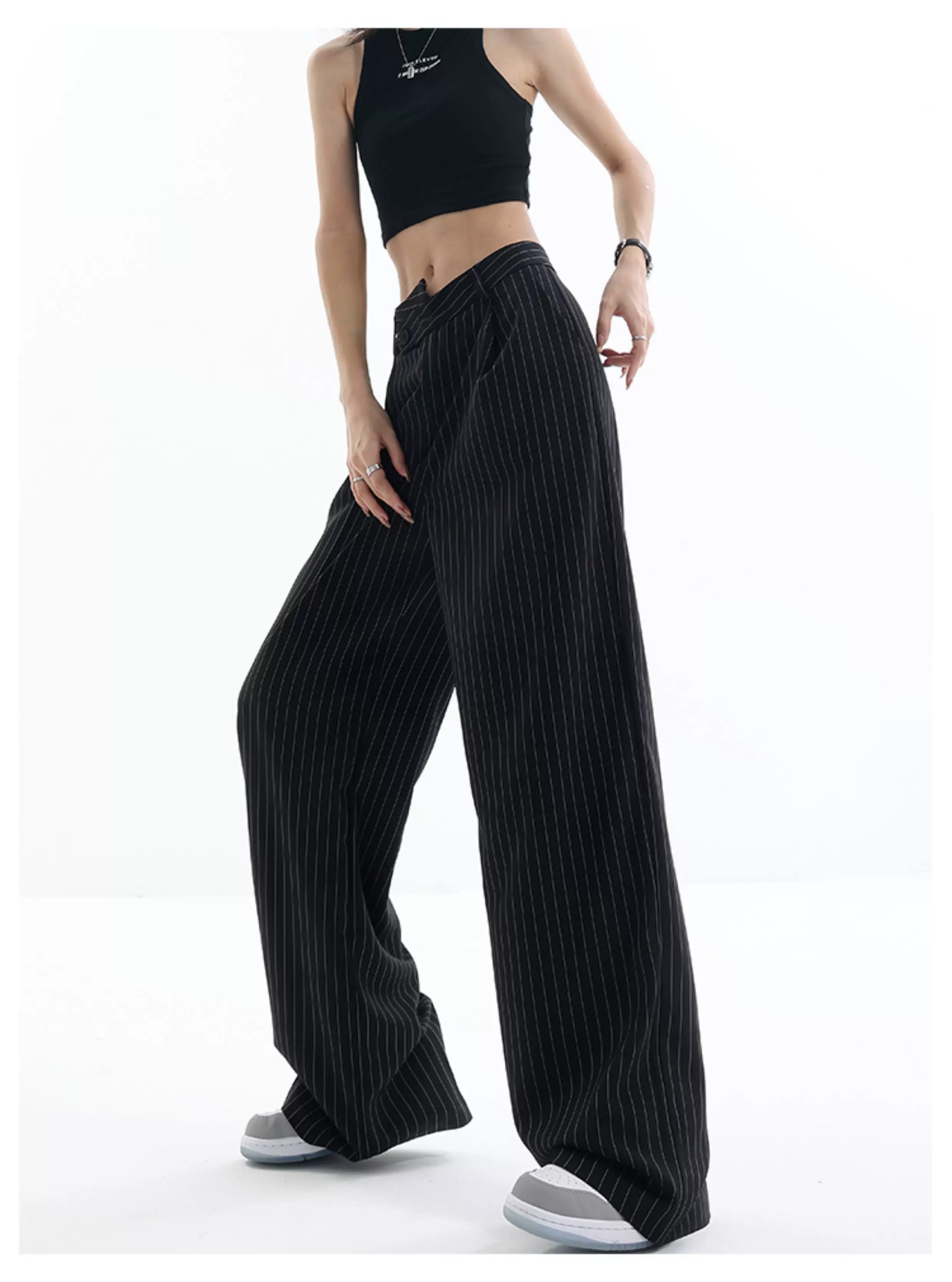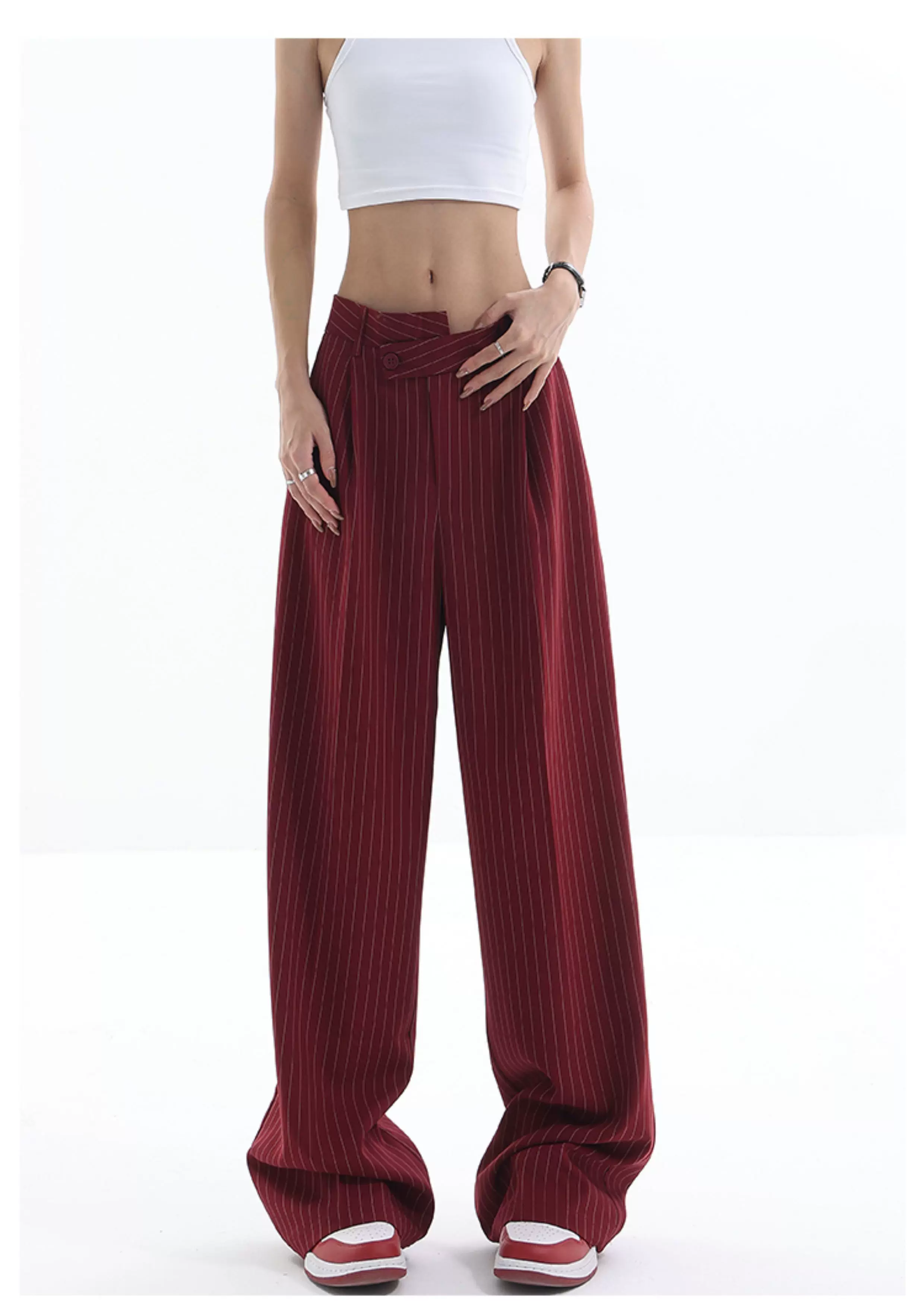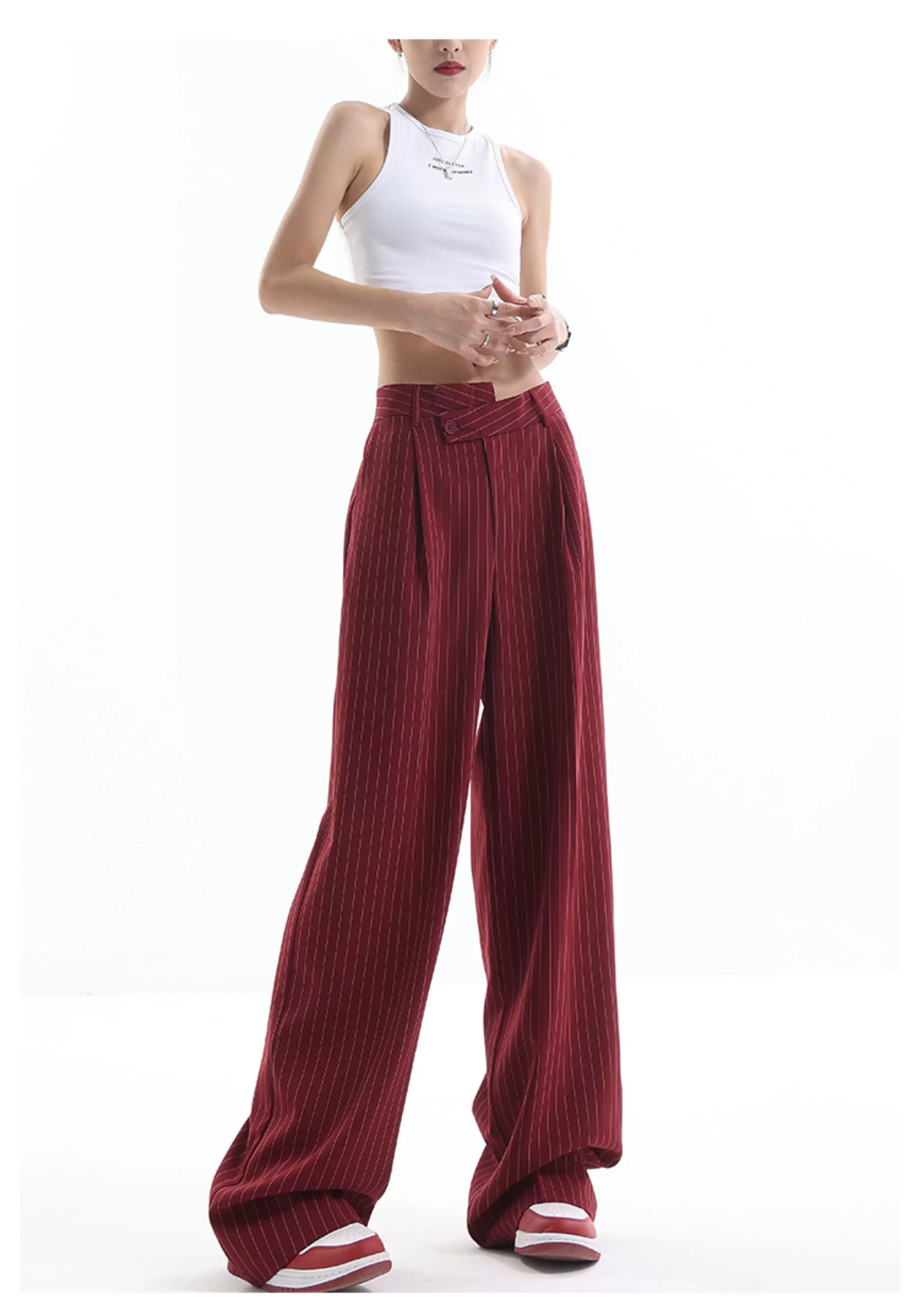 - KEN STUDIO quần dài xếp nếp sọc mới mùa hè dành cho nữ, quần ống rộng thiết kế xếp nếp, quần công sở