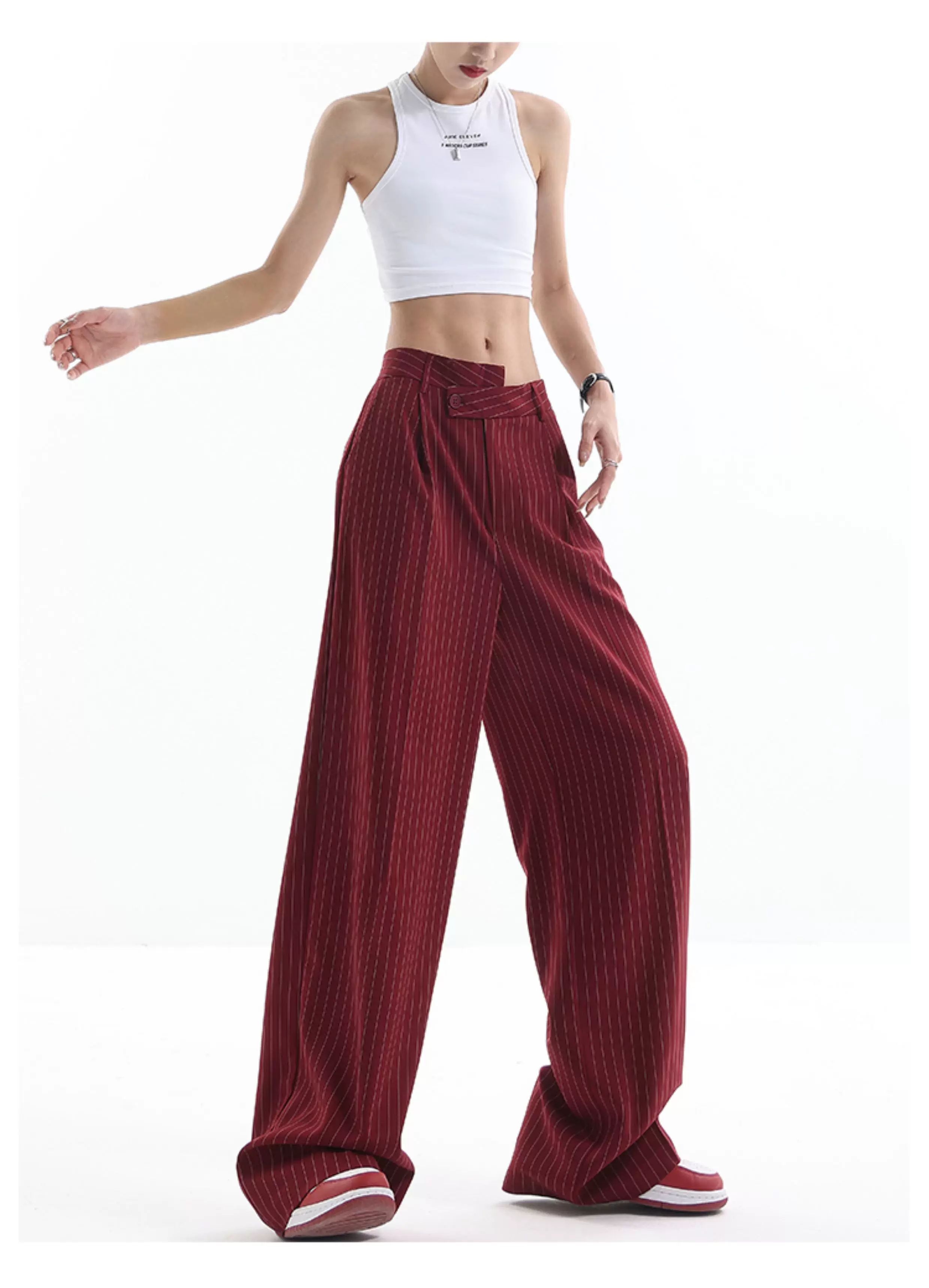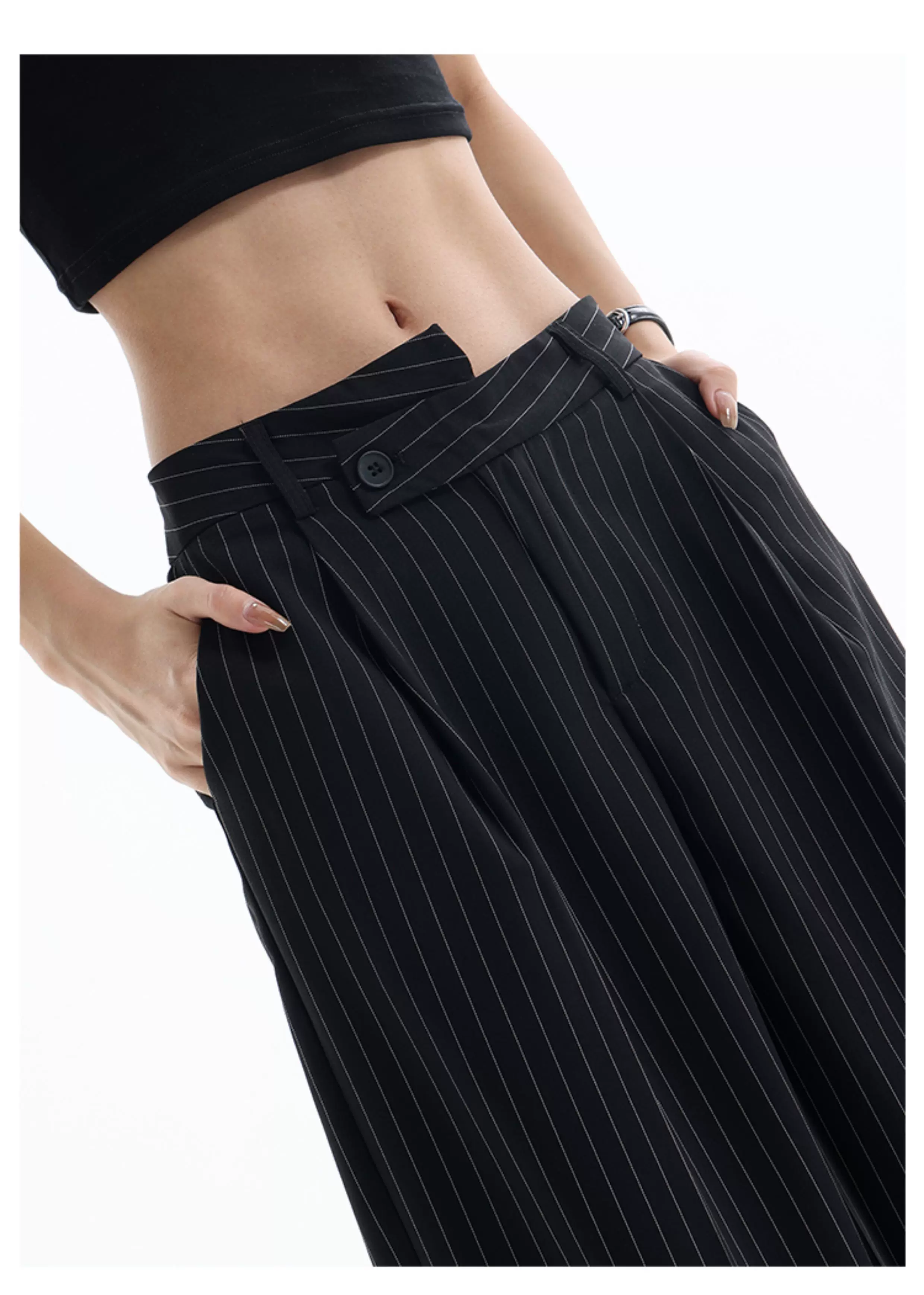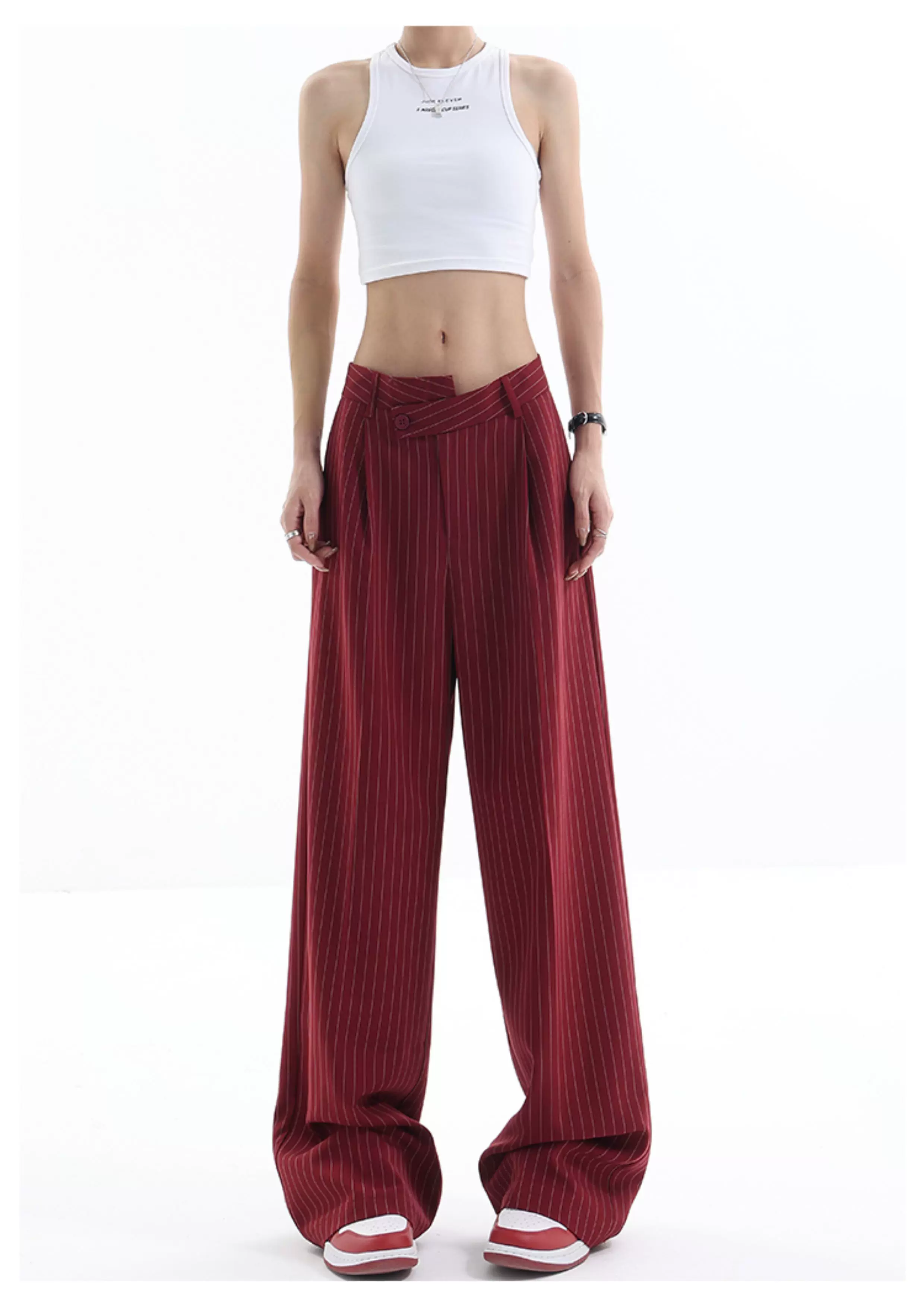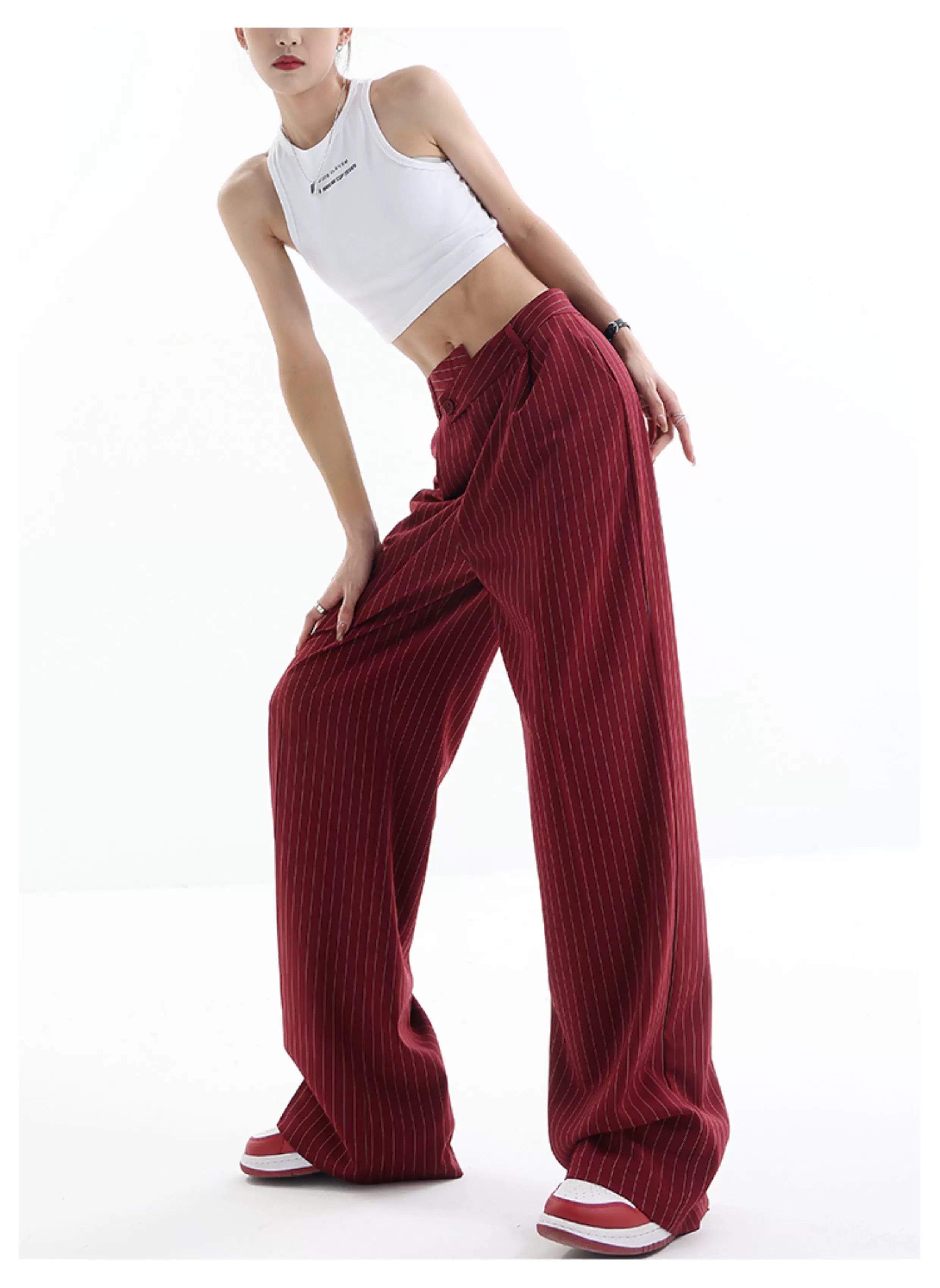 - KEN STUDIO quần dài xếp nếp sọc mới mùa hè dành cho nữ, quần ống rộng thiết kế xếp nếp, quần công sở