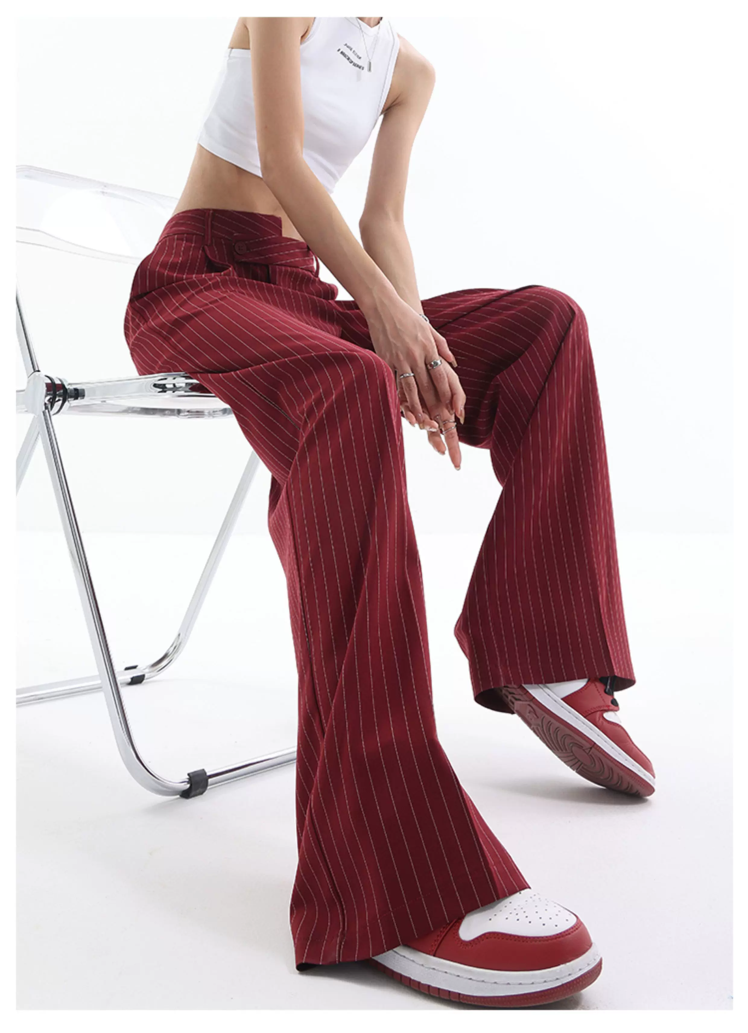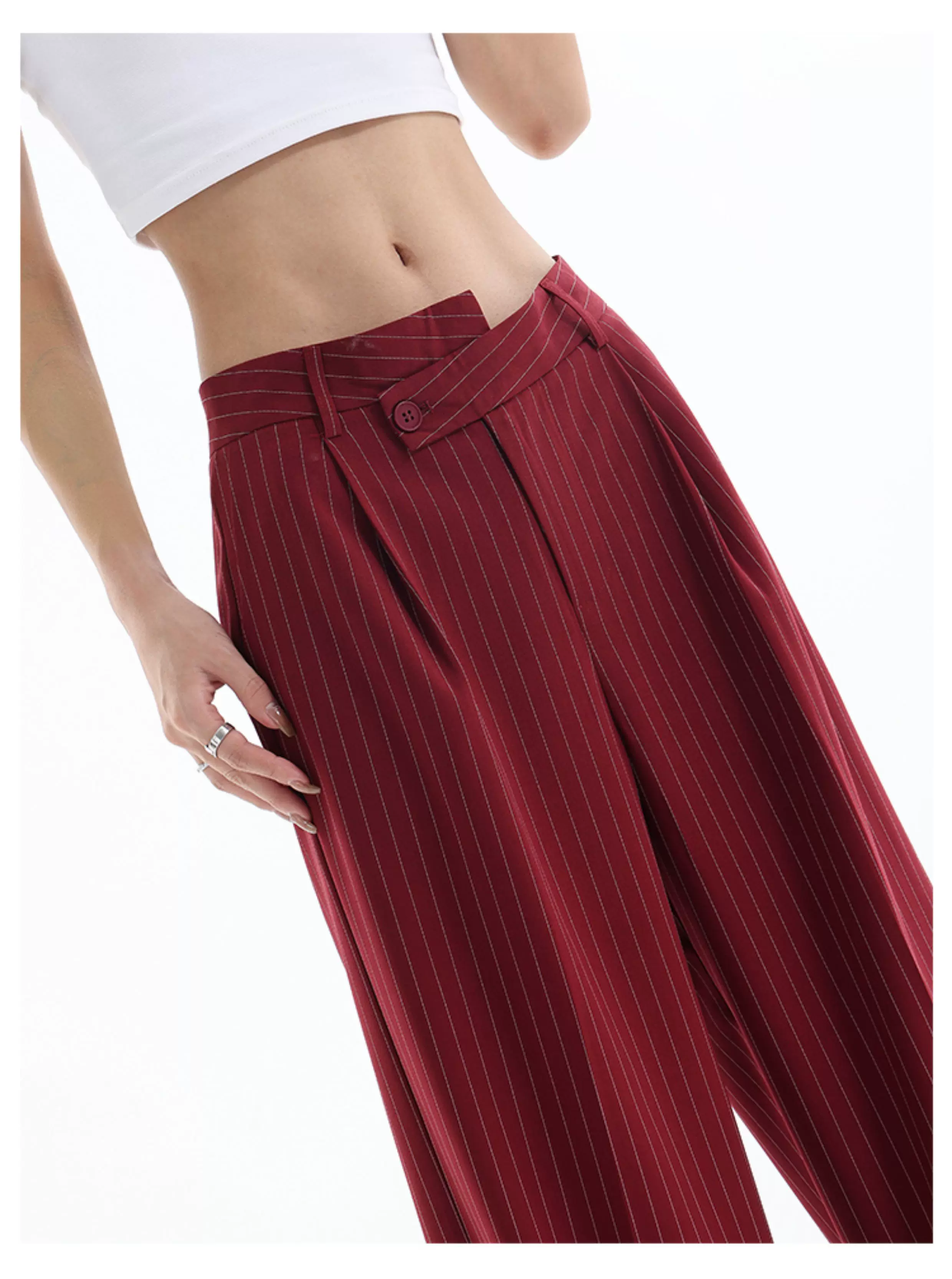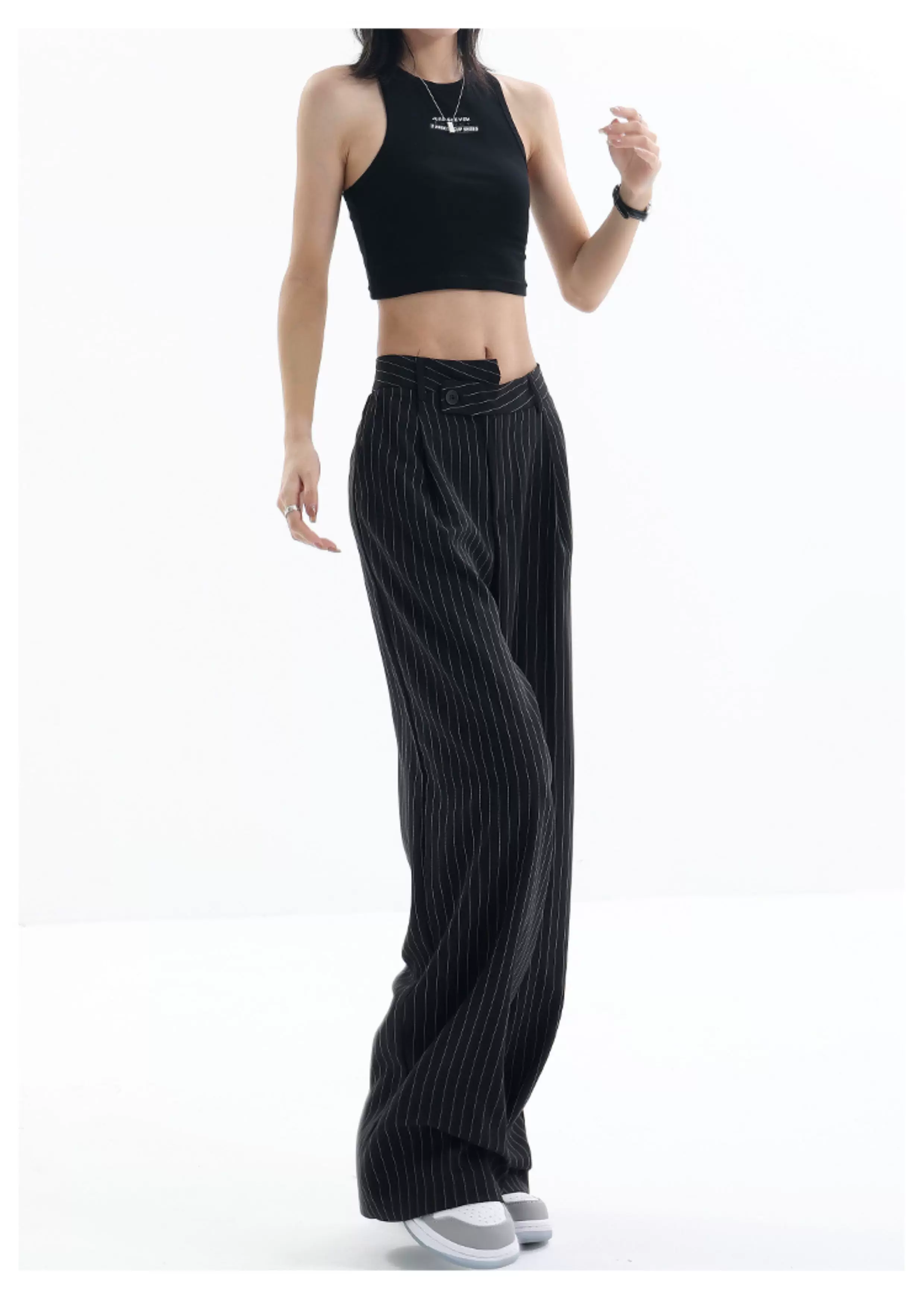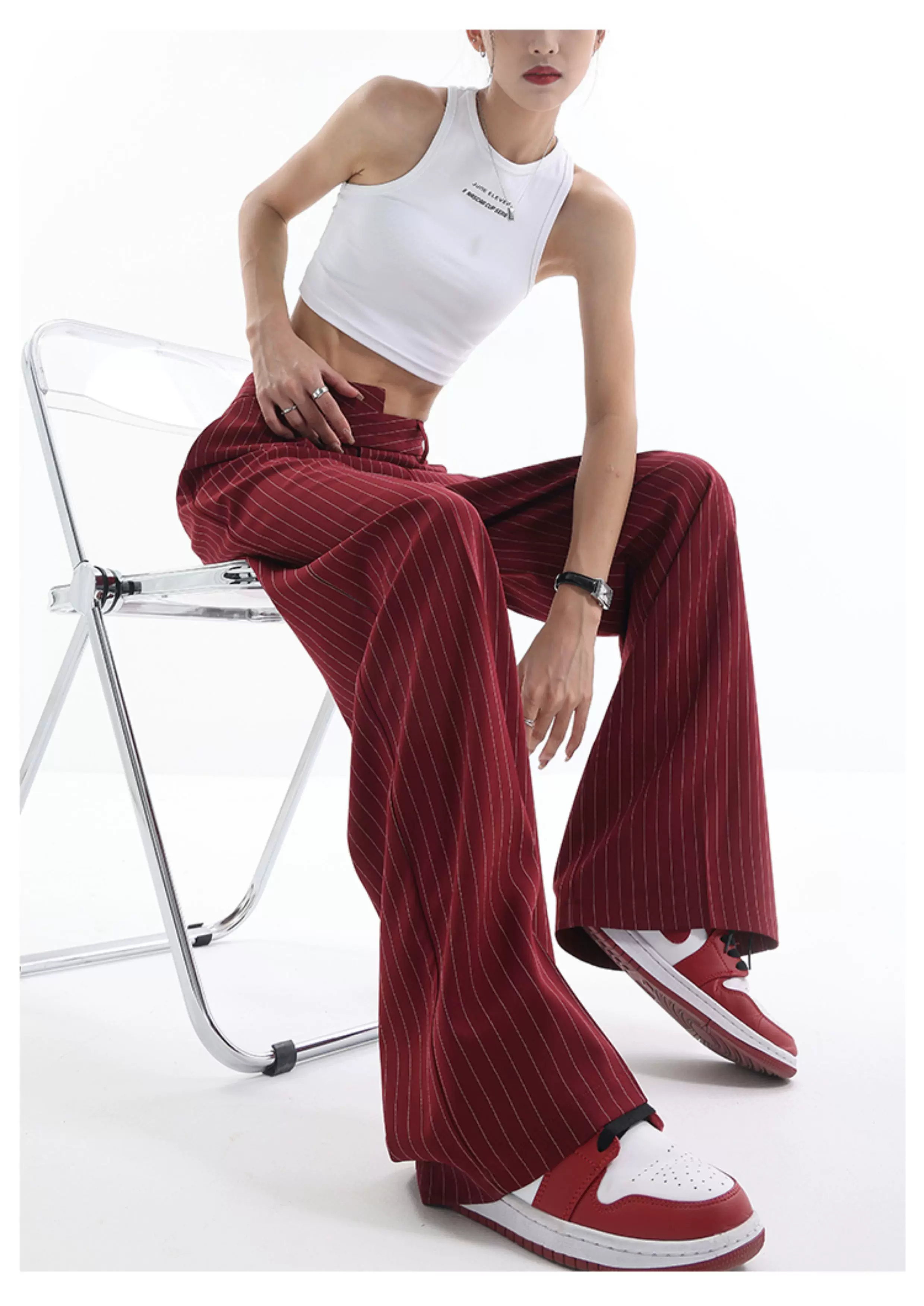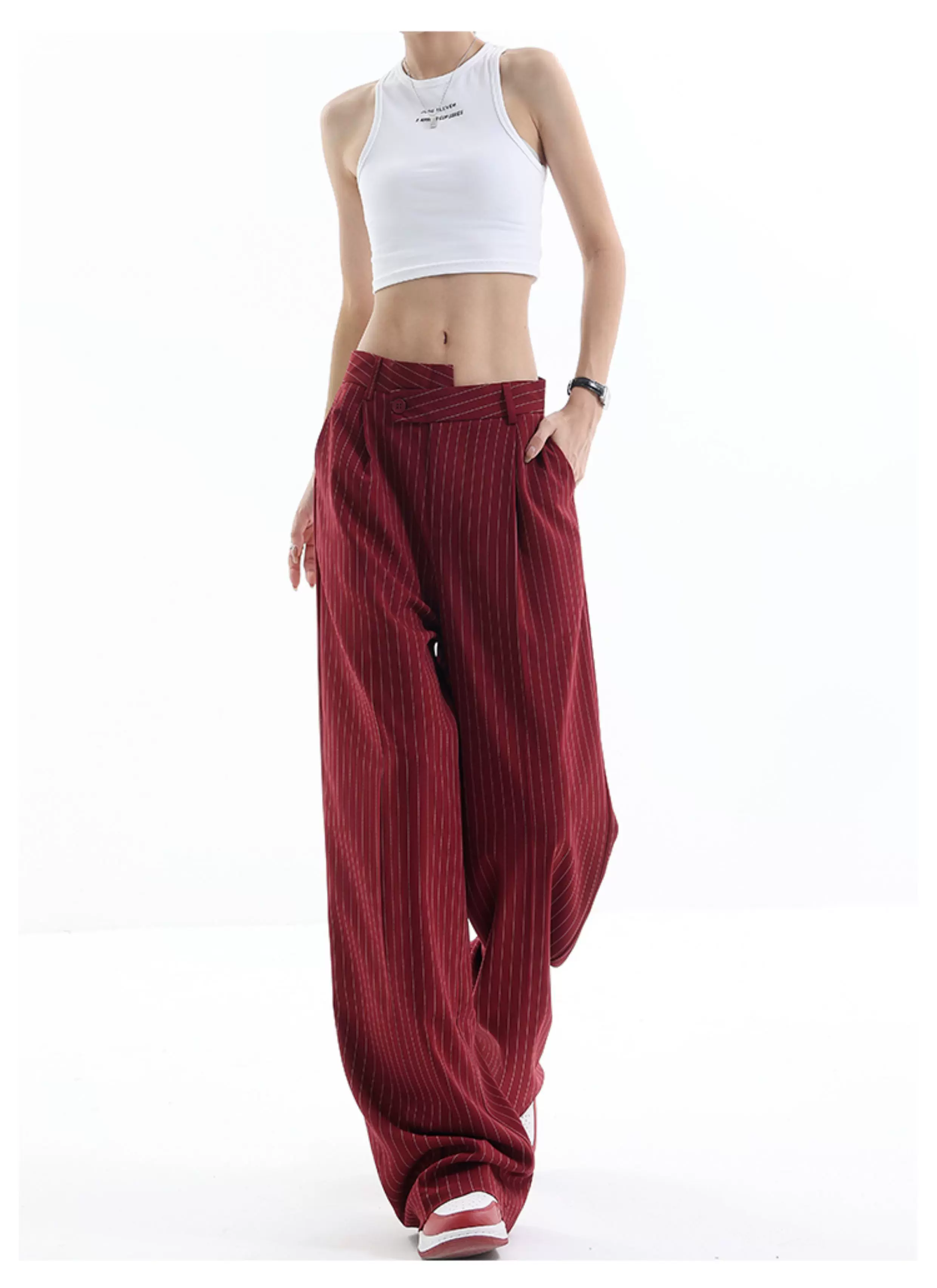 - KEN STUDIO quần dài xếp nếp sọc mới mùa hè dành cho nữ, quần ống rộng thiết kế xếp nếp, quần công sở