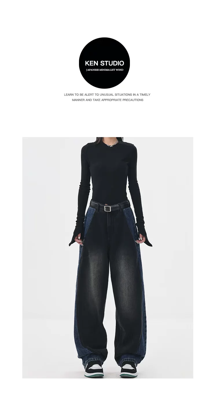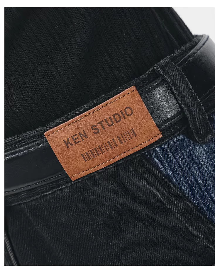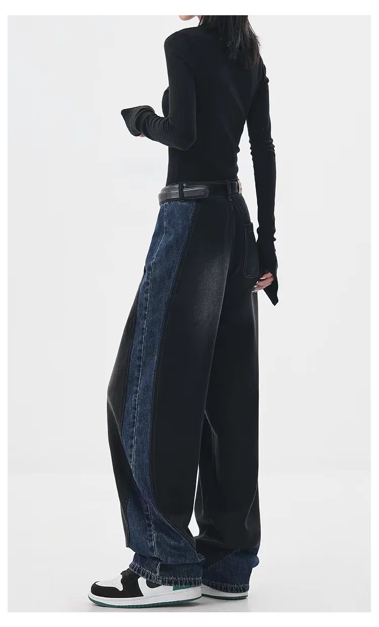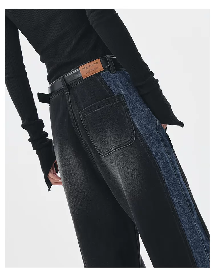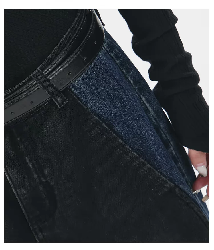 - KEN STUDIO quần jean chắp vá màu sắc cổ điển mới mùa thu đông dành cho nữ, quần ống rộng cạp cao giúp thon gọn.